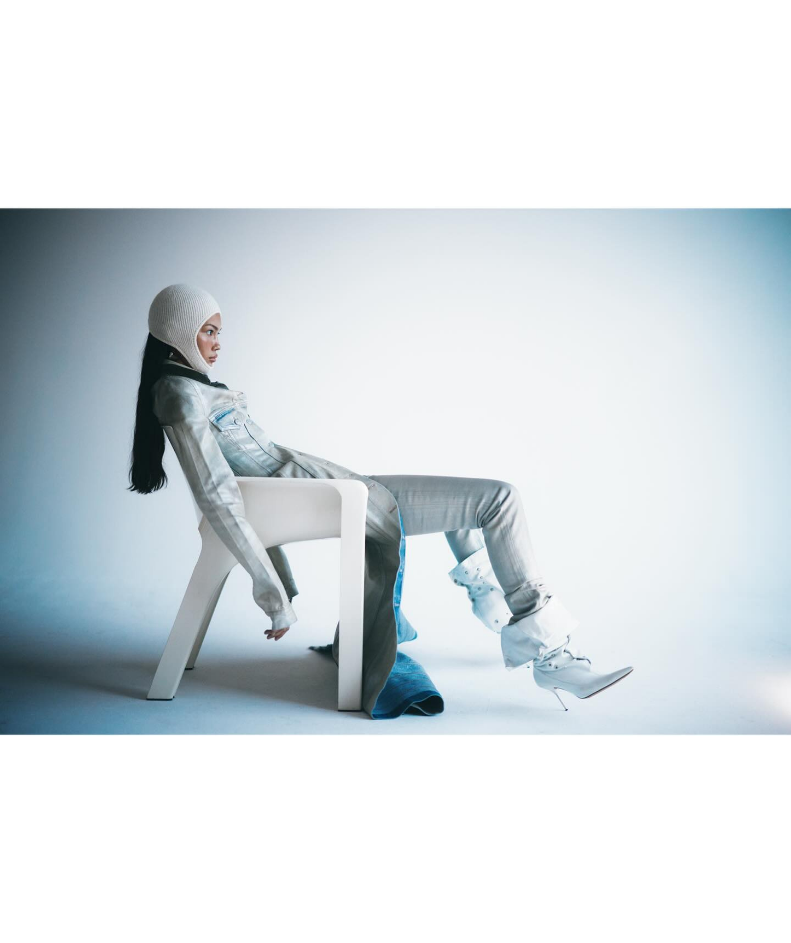 Set design for Elle Canada's October 2024 issue featuring the Sofa by Shiro Kuramata for Cappellini and Gaudi Armchair by Vico Magistretti for Artemide.