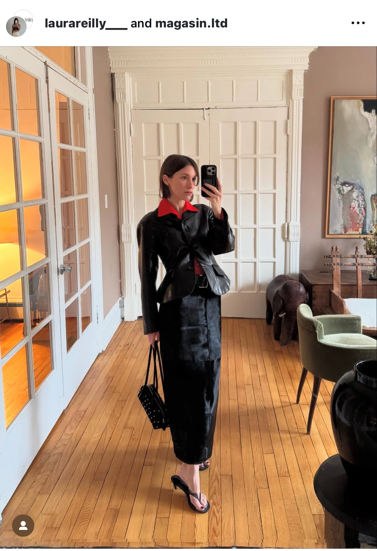 Laura Reilly of Magasin shares an outfit and, with it, a glimpse of the room she lives in.