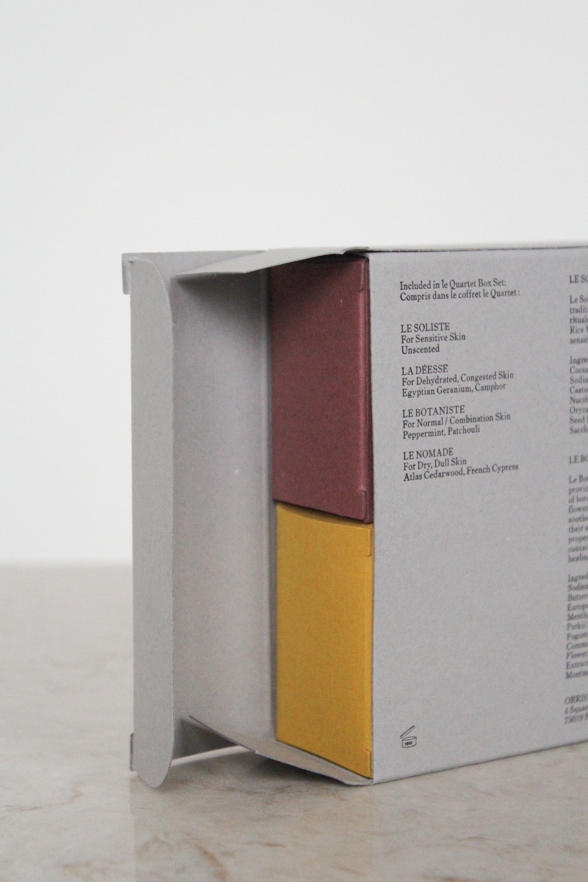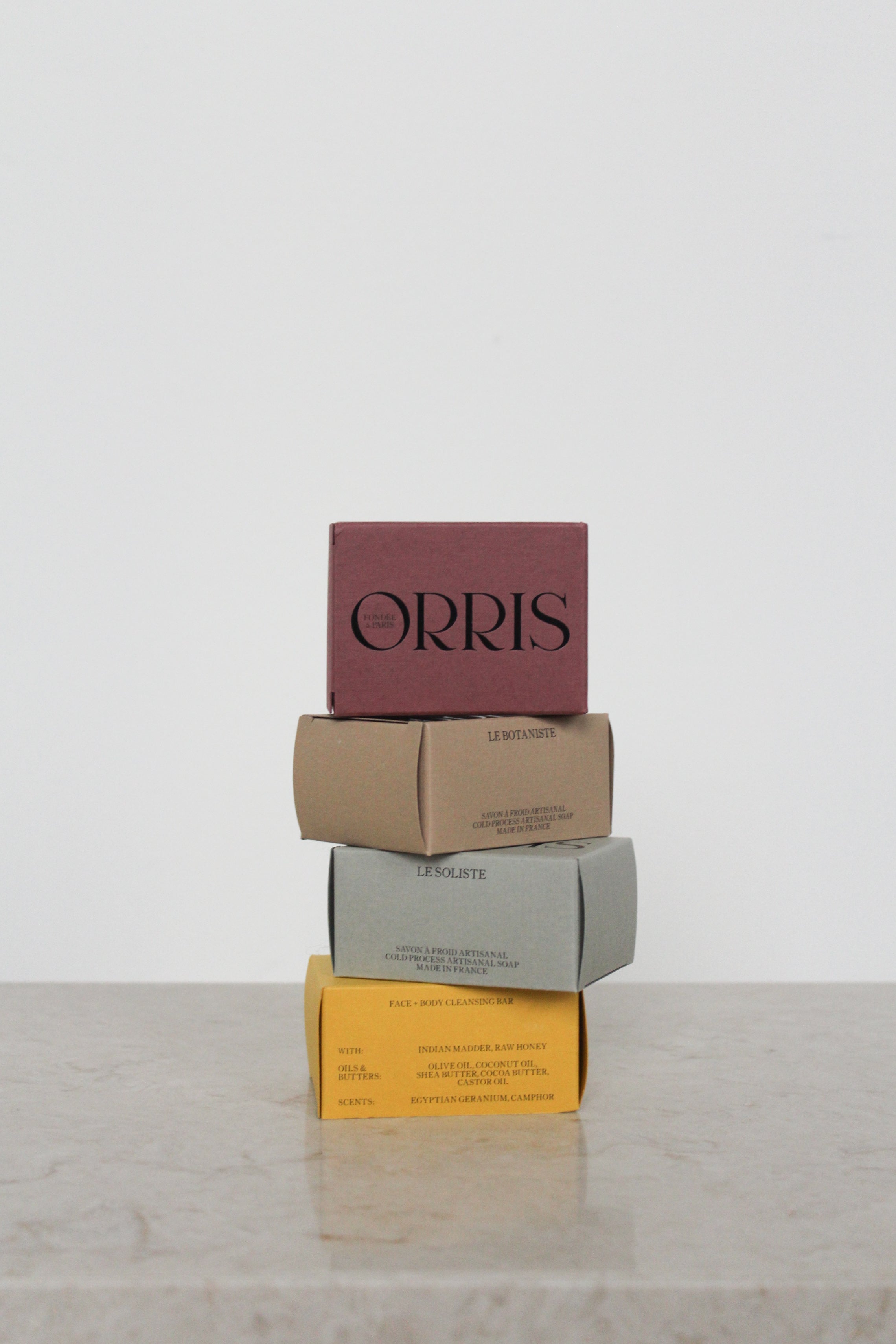 Cleansing bars by Orris Paris. Made in the South of France, their botanical cleansing bars are super-fatted to deposit nourishing plant lipids onto the surface of the skin. Their soaps are fabricated by hand using ancestral cold process methods and are cured for over 6 weeks to obtain the optimal gentle creamy lather.