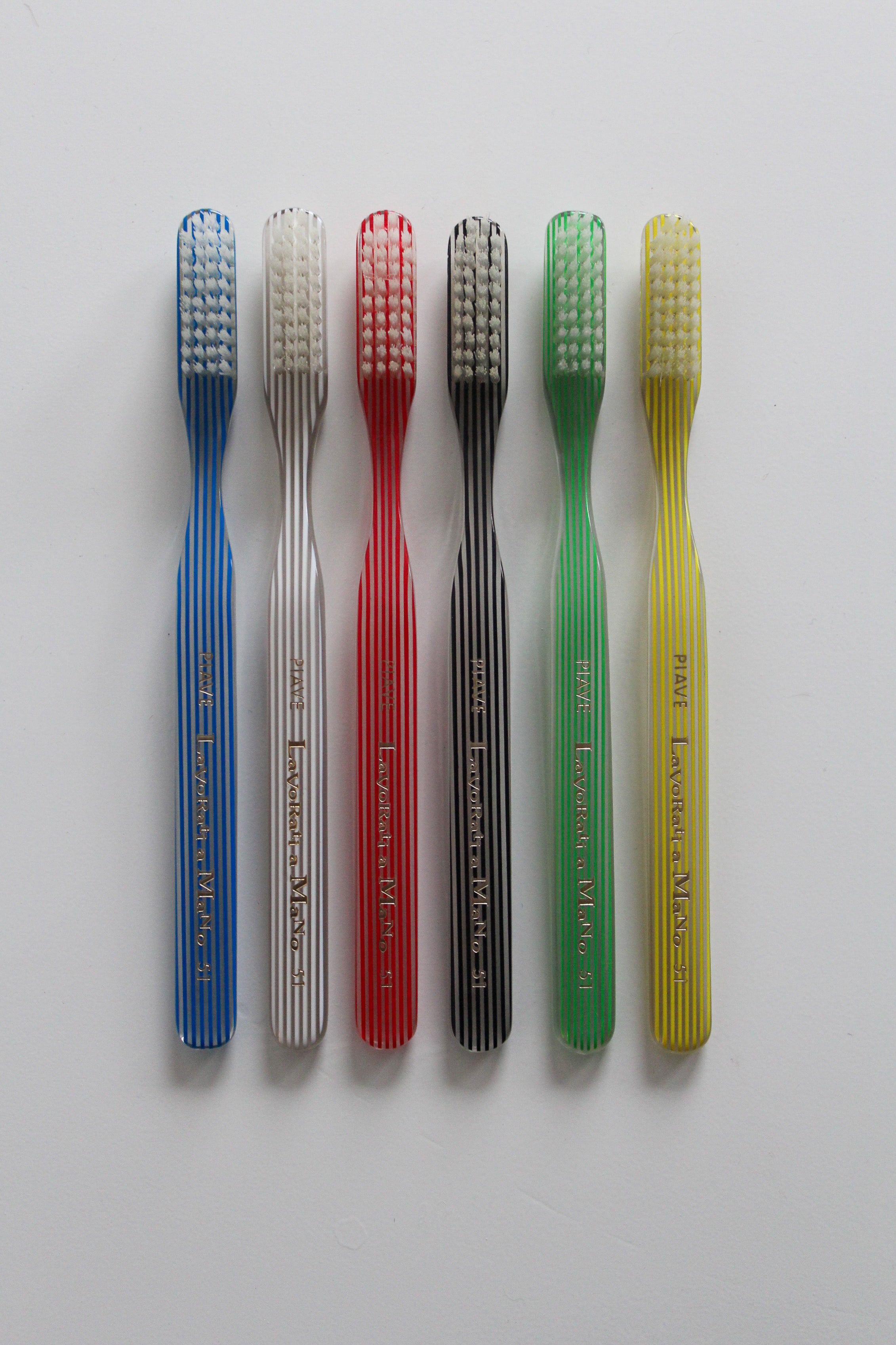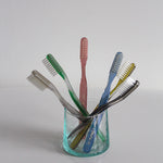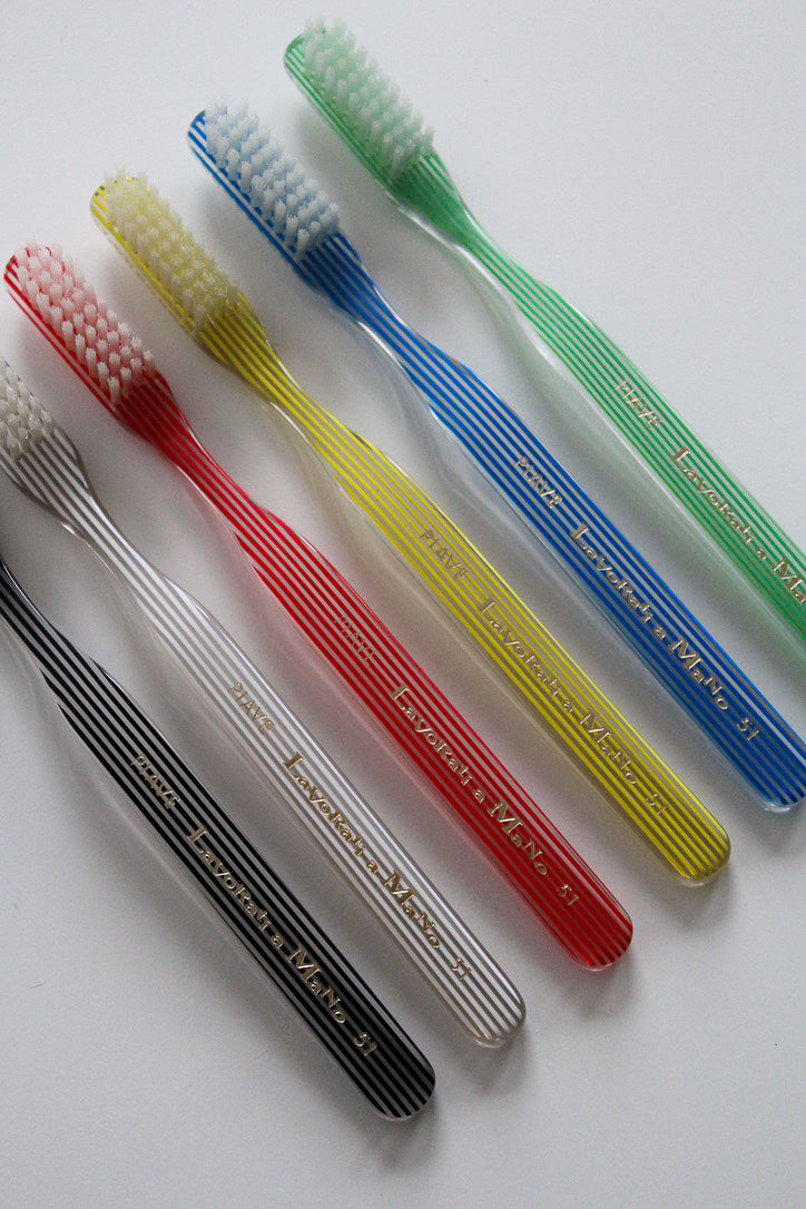 Nylon Silk toothbrush features vertical coloured stripes on translucent base. Made of High Quality Acetate to fit perfectly in the hand.