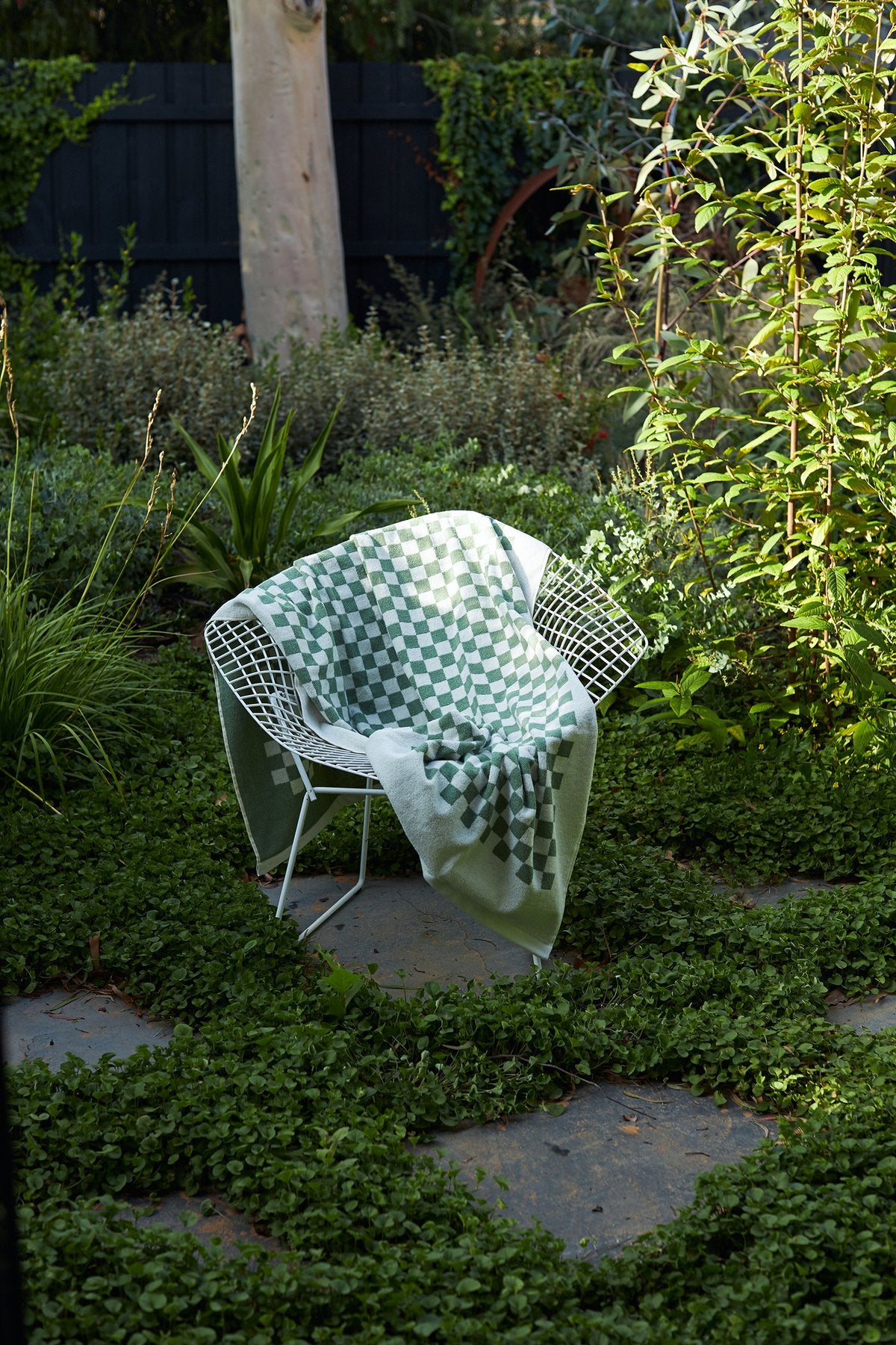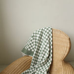 Checkerboard print, synonymous with the Baina brand features a reversible colourway. The soft sage checkerboard contrasting against the white makes a subtle statement in any bathroom or on any beach.