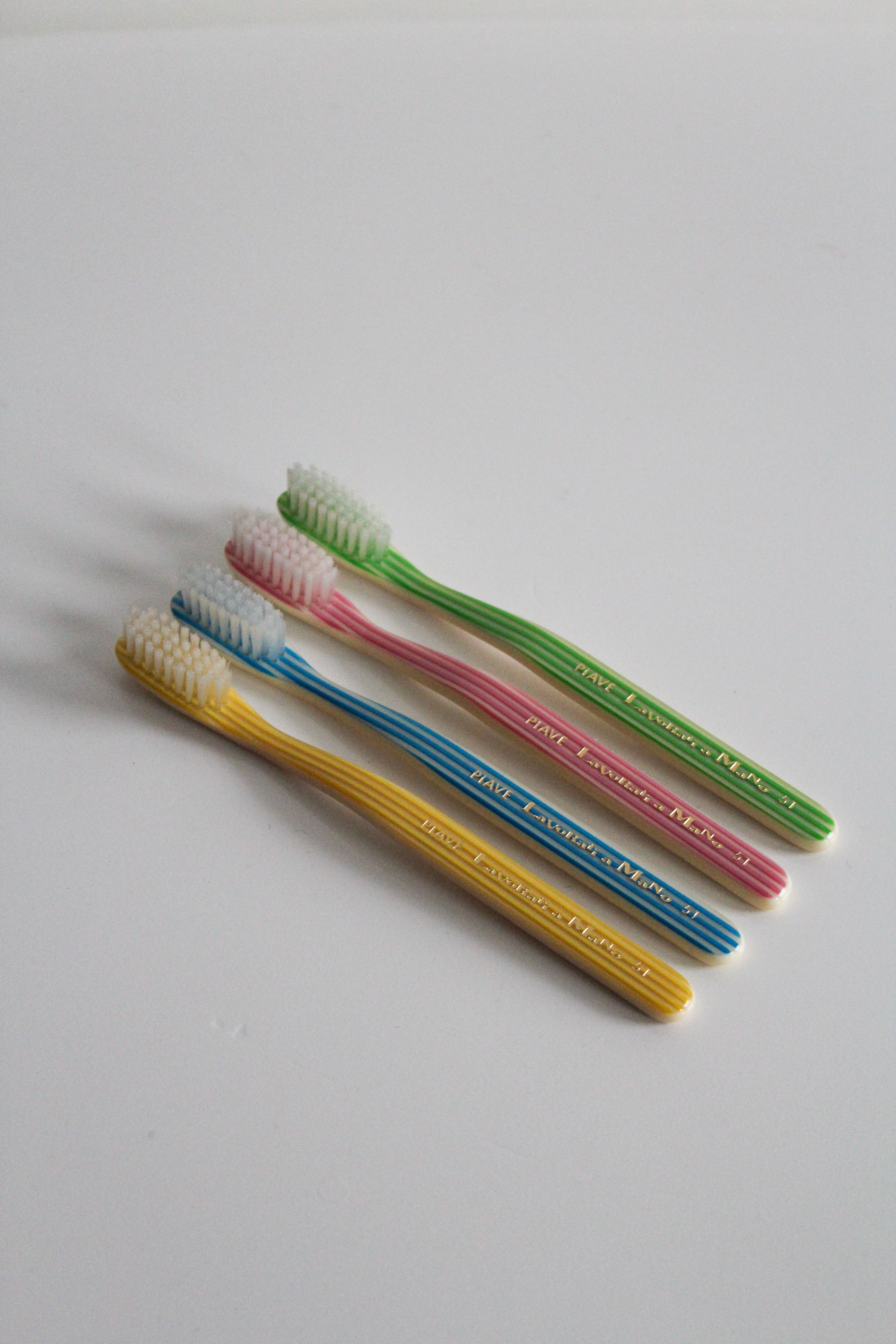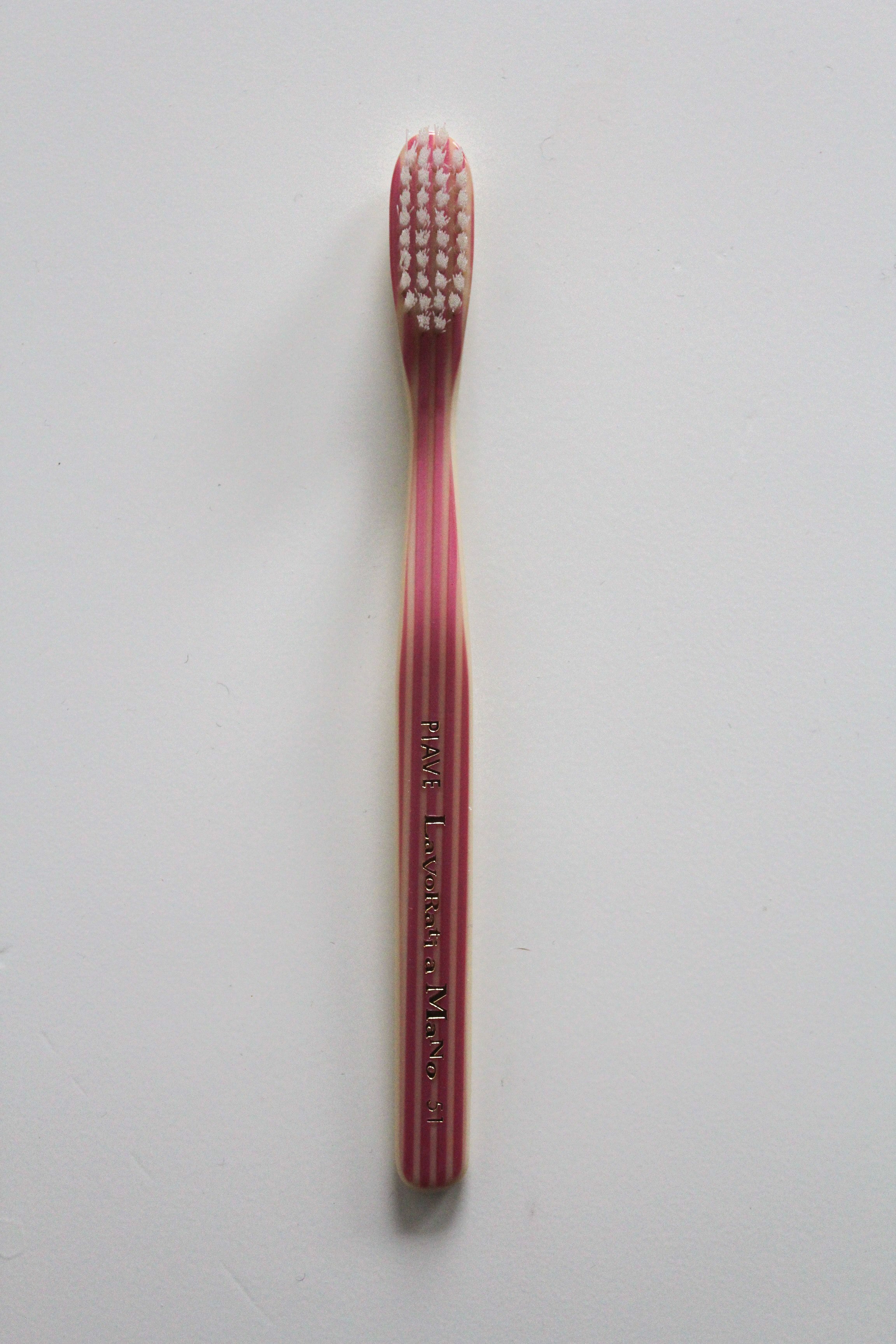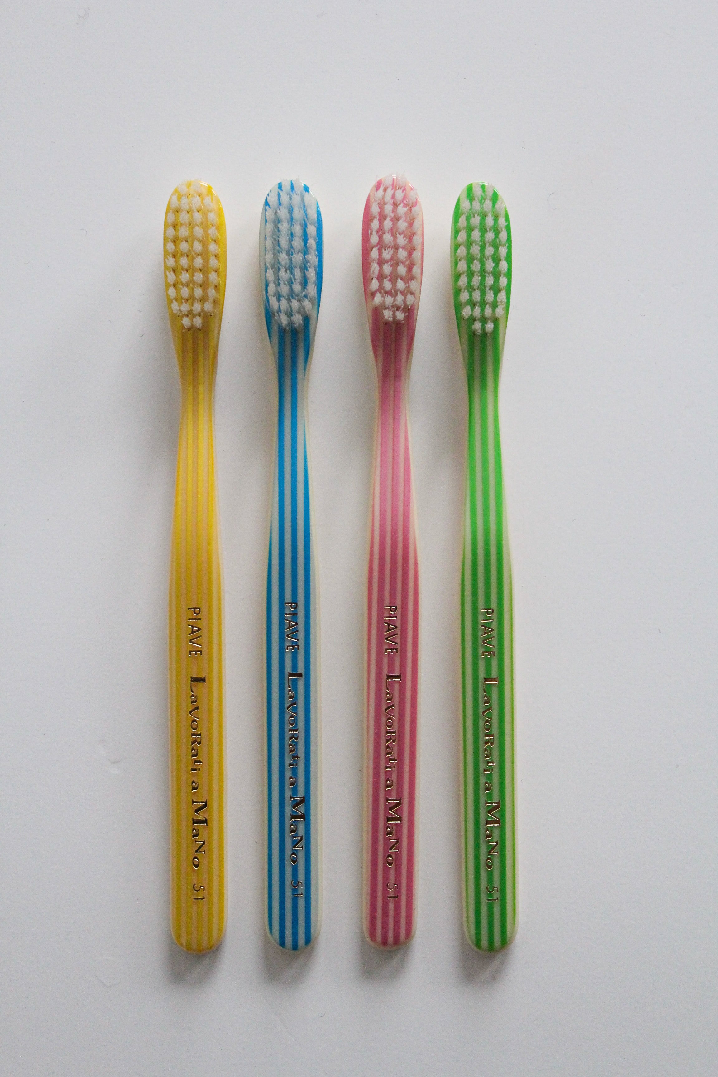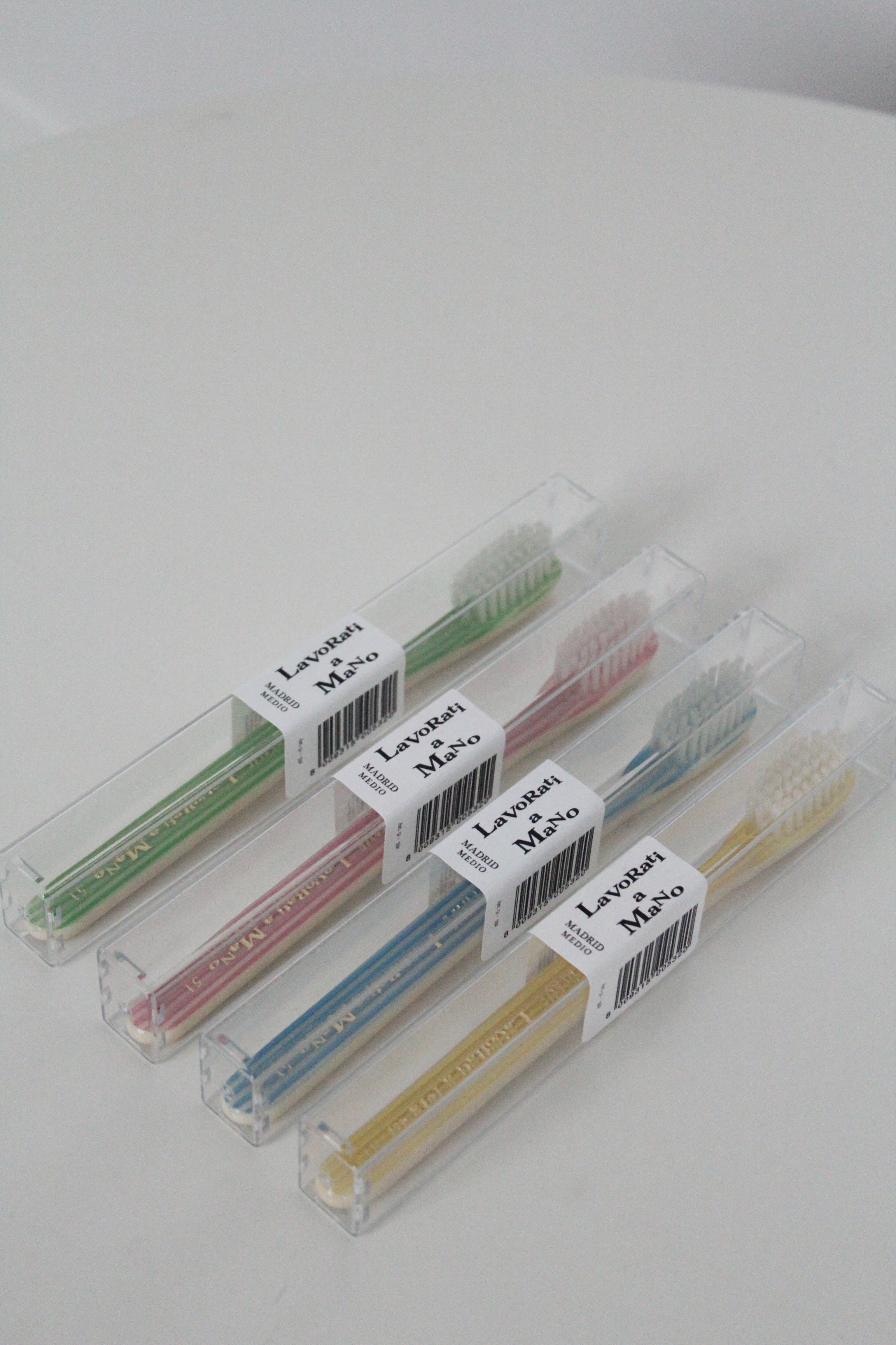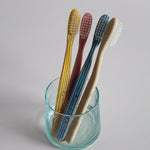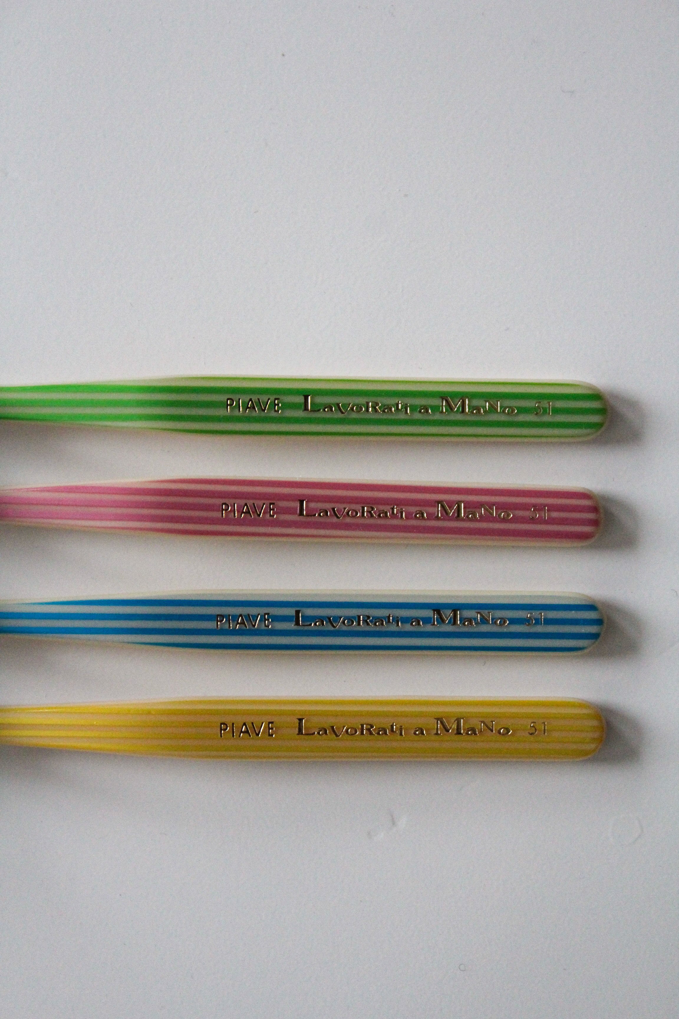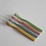 Nylon Silk toothbrush features vertical coloured stripes on translucent base. Made of High Quality Acetate to fit perfectly in the hand.