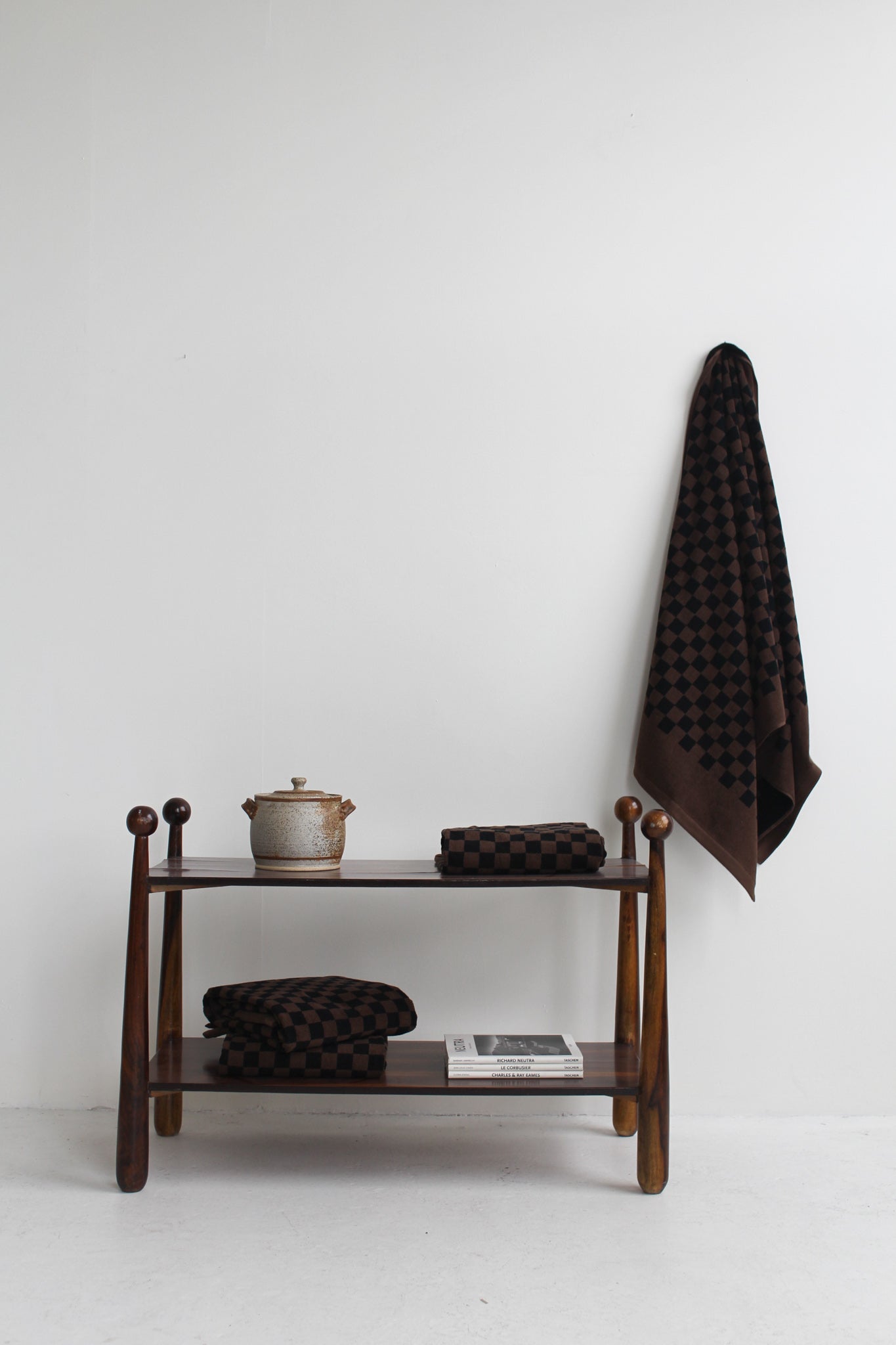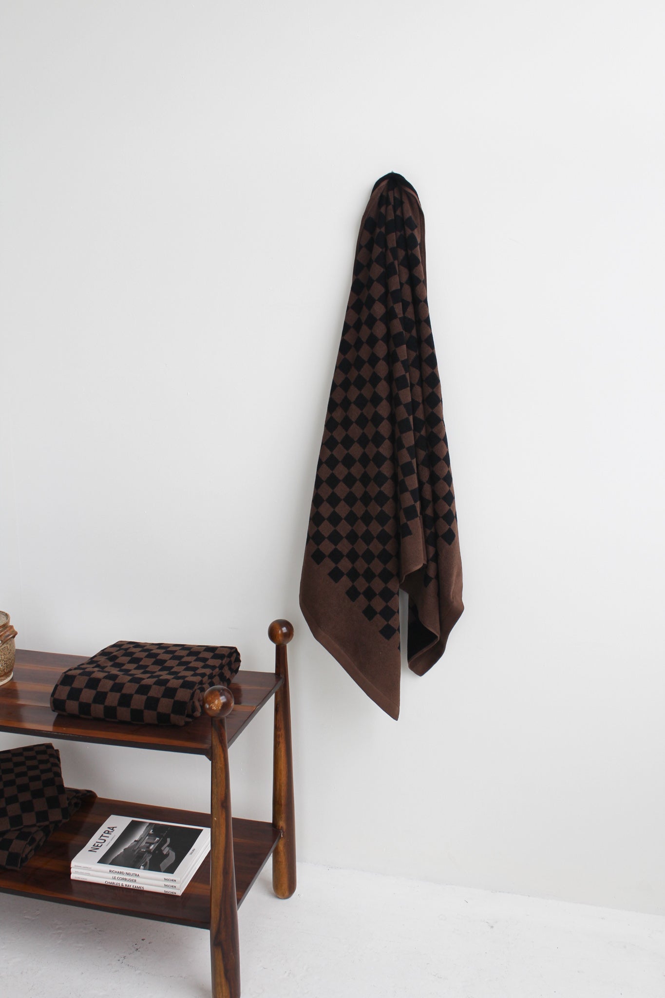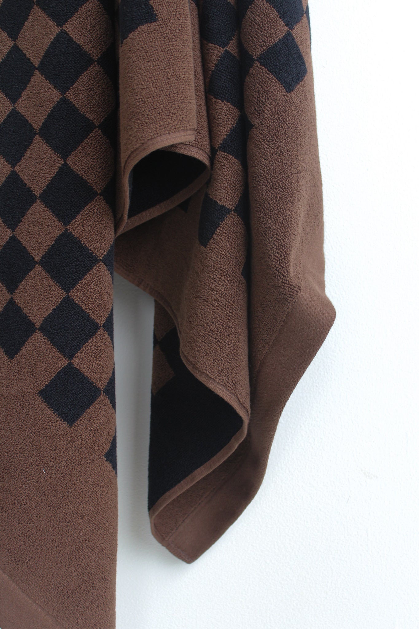 Checkerboard print, synonymous with the Baina brand features a reversible colourway. The contrasting brown checkerboard contrasting against the black makes a subtle statement in any bathroom or on any beach.