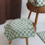 Checkerboard print, synonymous with the Baina brand features a reversible colourway. The soft sage checkerboard contrasting against the white makes a subtle statement in any bathroom.