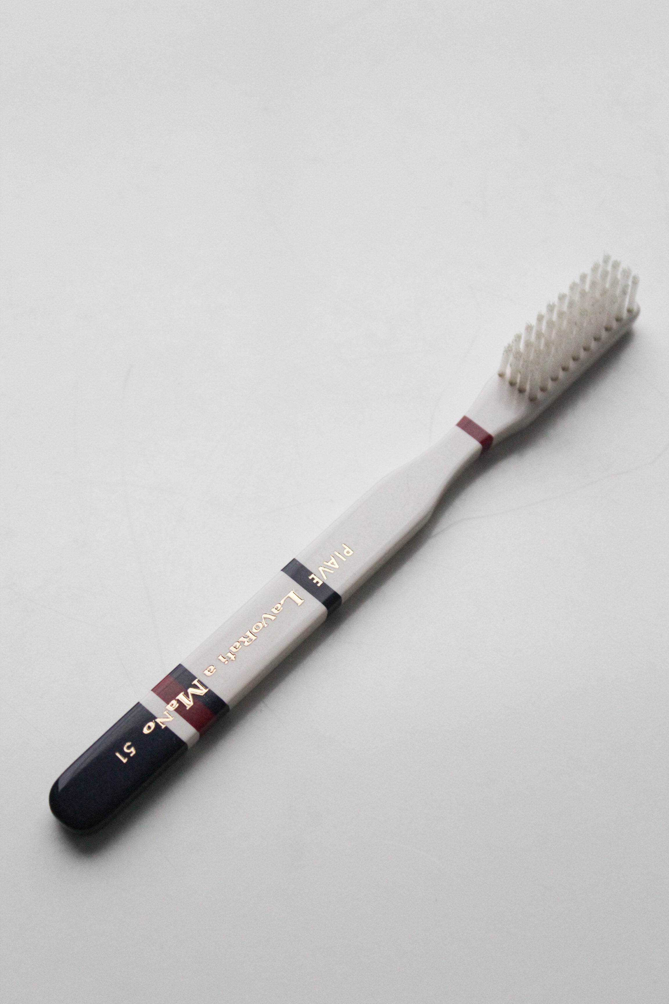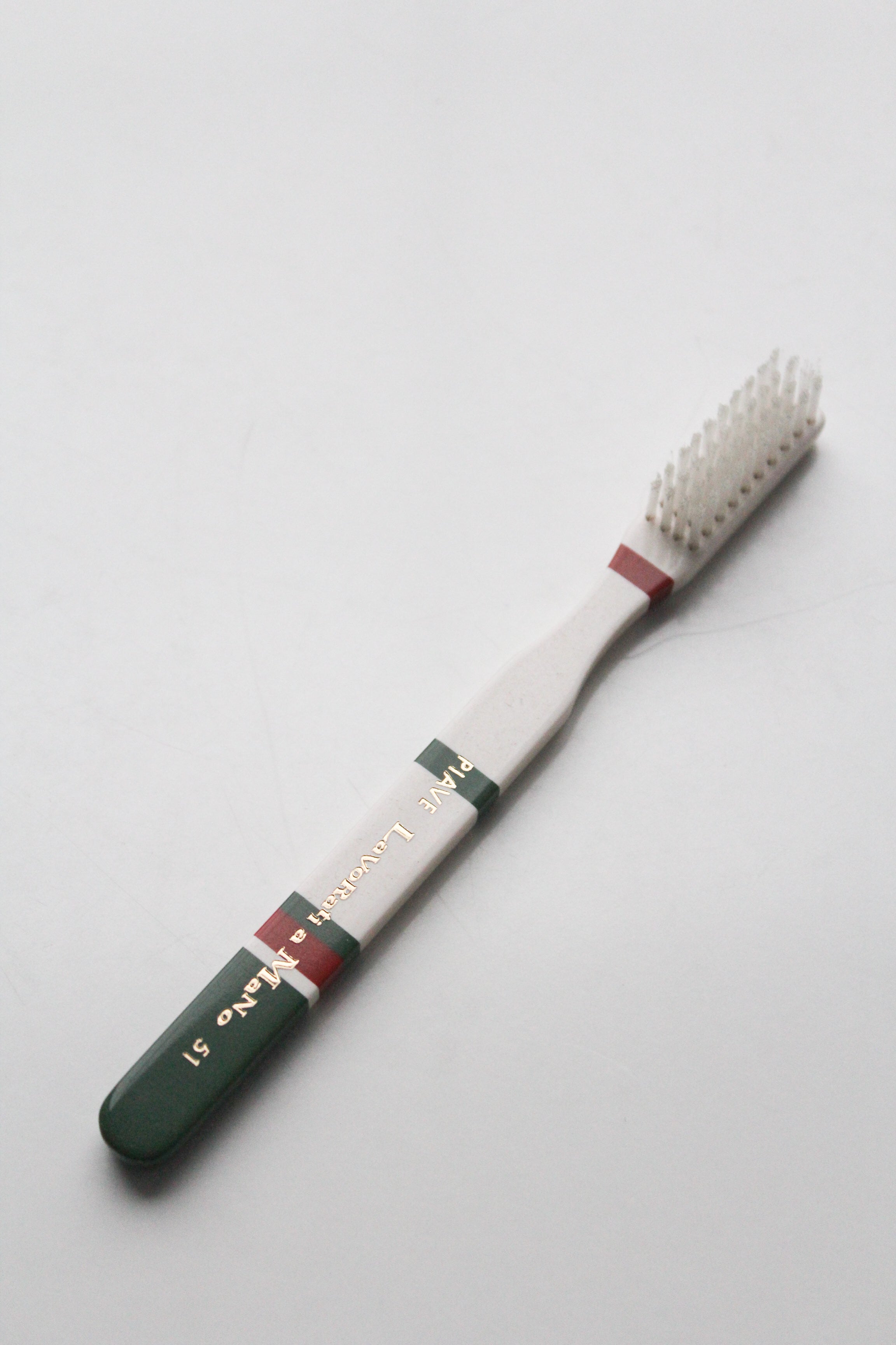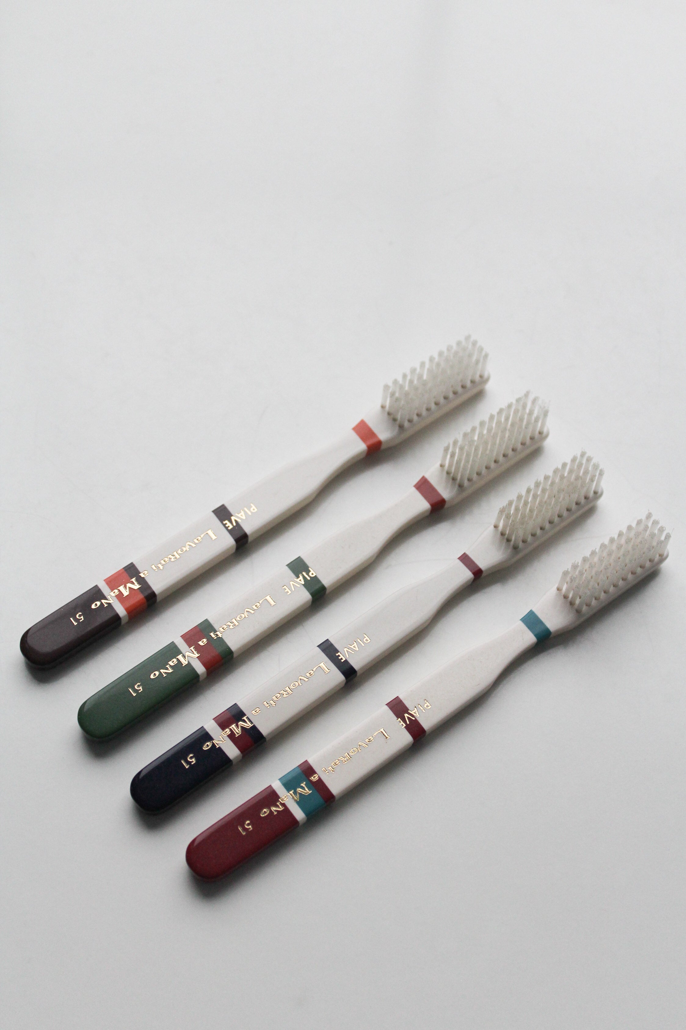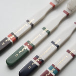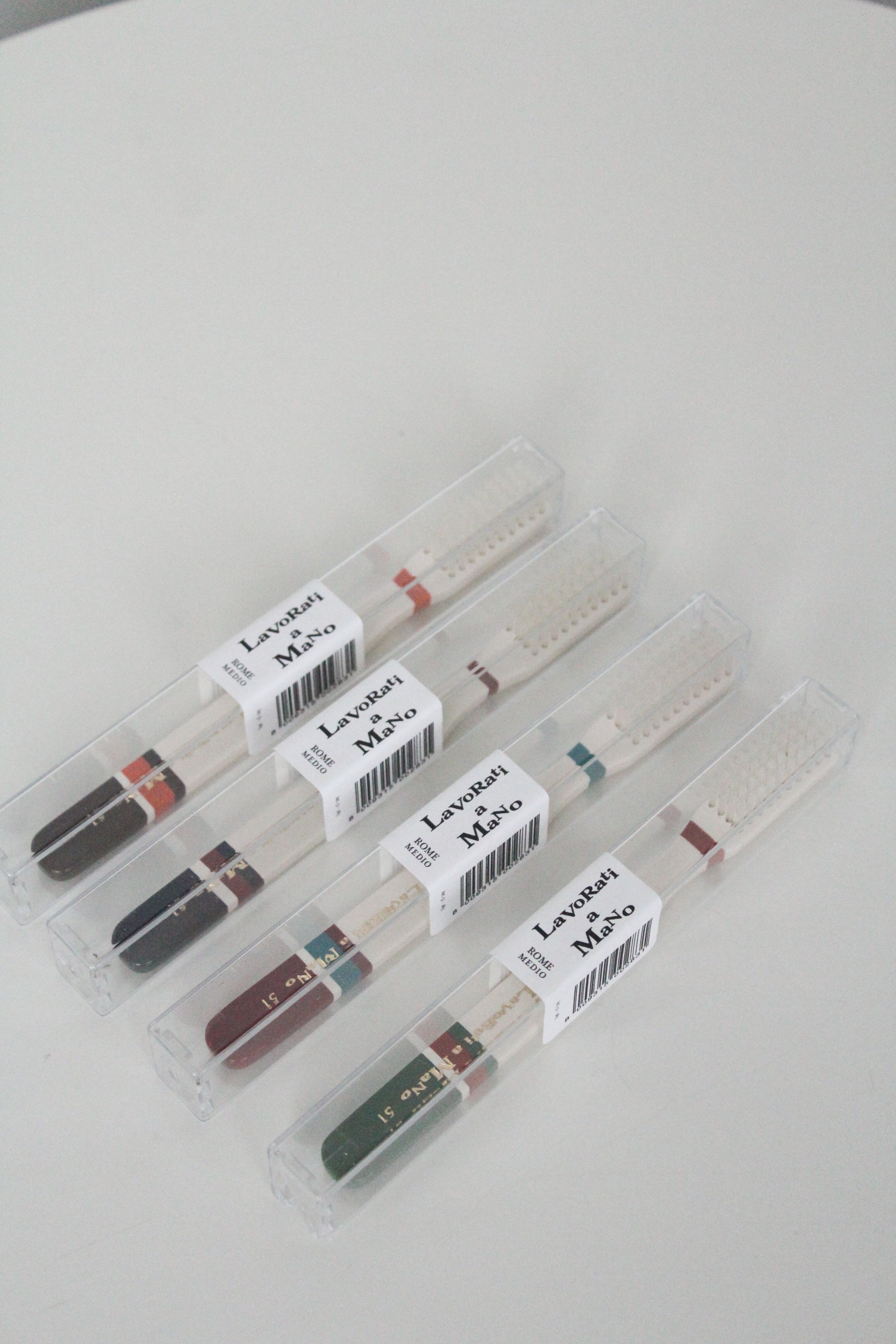 Nylon Silk toothbrush features horizontal coloured stripes on white base. Made of High Quality Acetate to fit perfectly in the hand.