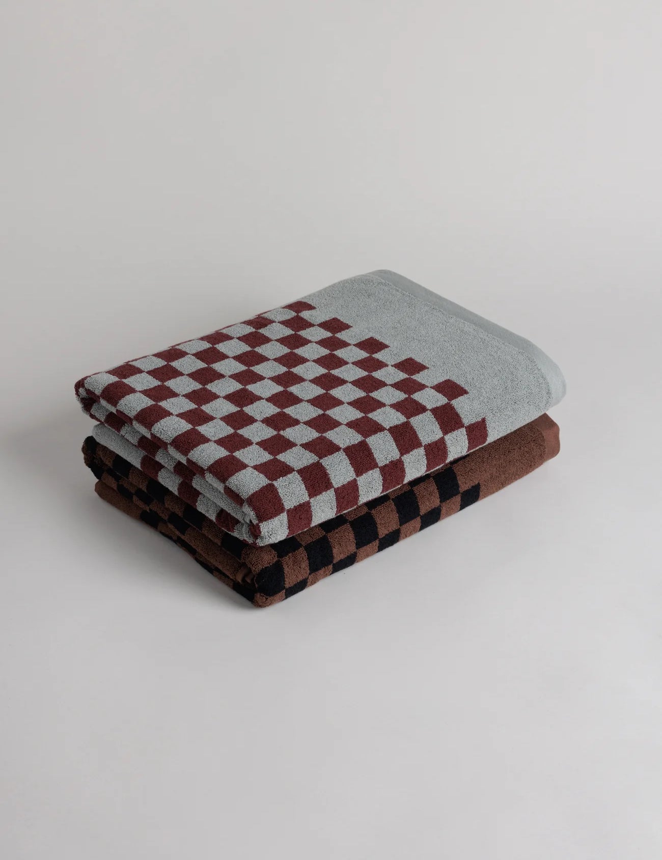 Pool Towel Pair in Cement & Rhus and Tabac & Noir by Baina