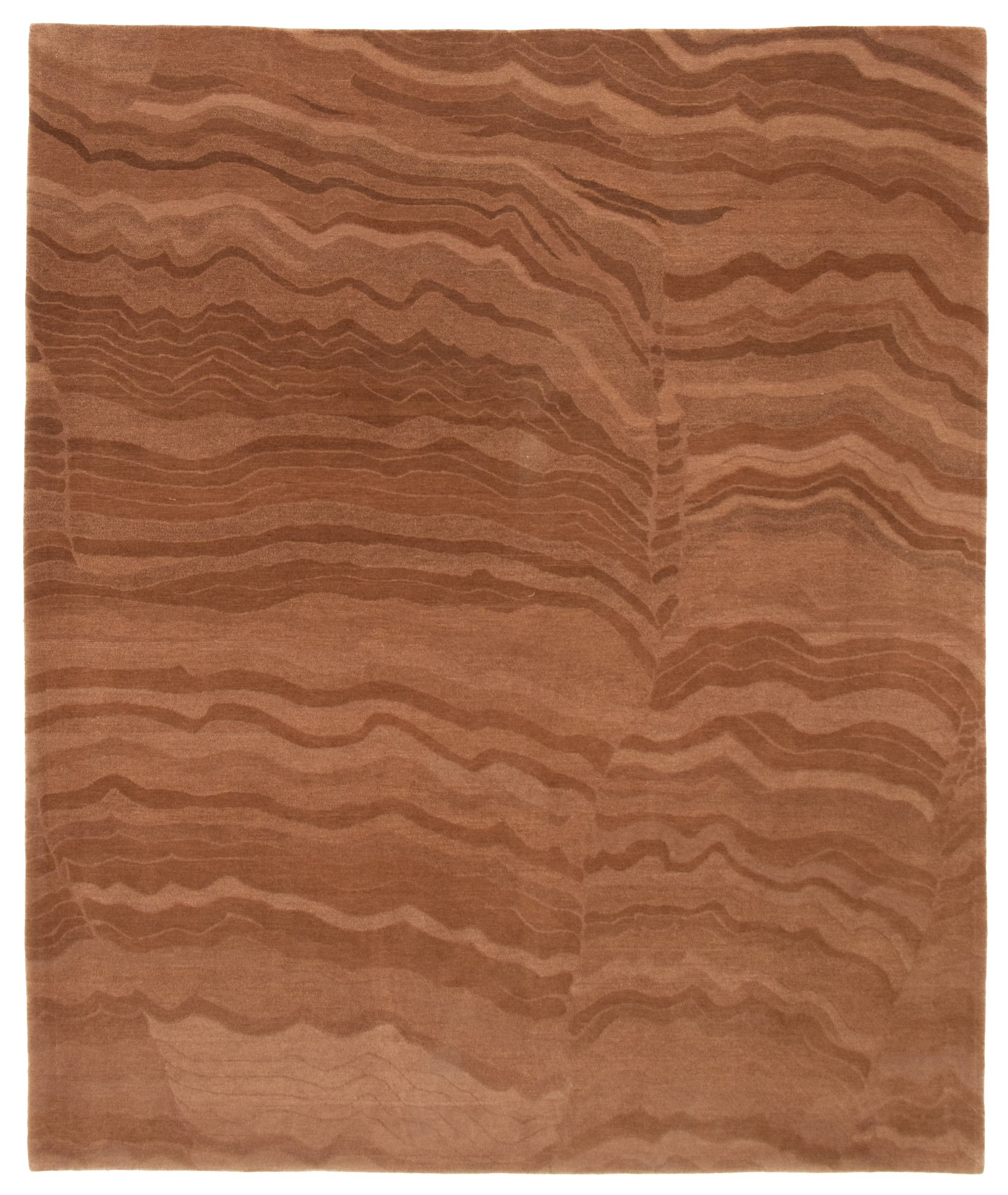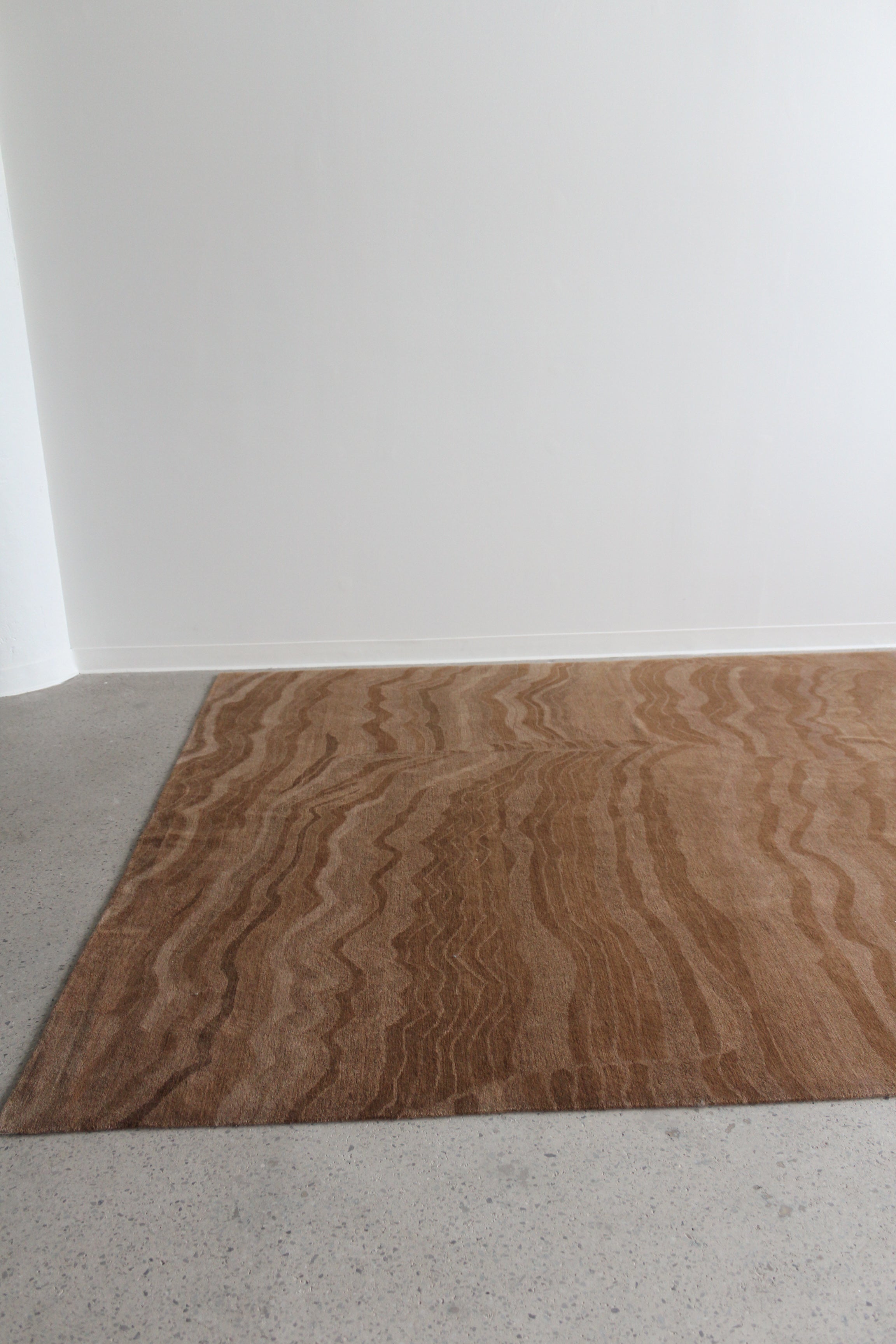 100% tibetan wool rug featuring graphic pattern in brown and beige. This modern rug was hand knotted in Nepal.