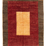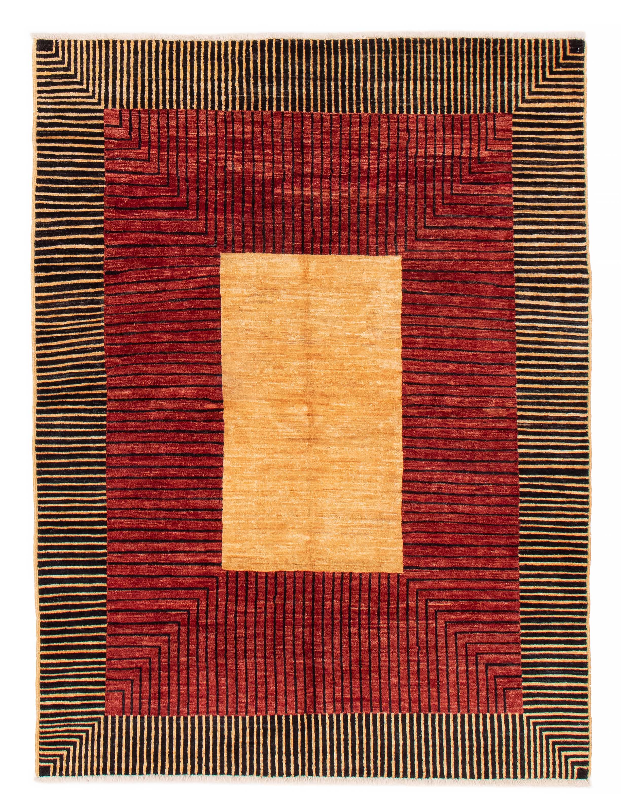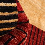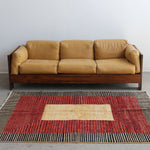 100% wool hand-knotted Ziegler rug in redwood. Tones of brown, cream, grey, green and red. Hand woven in Pakistan.