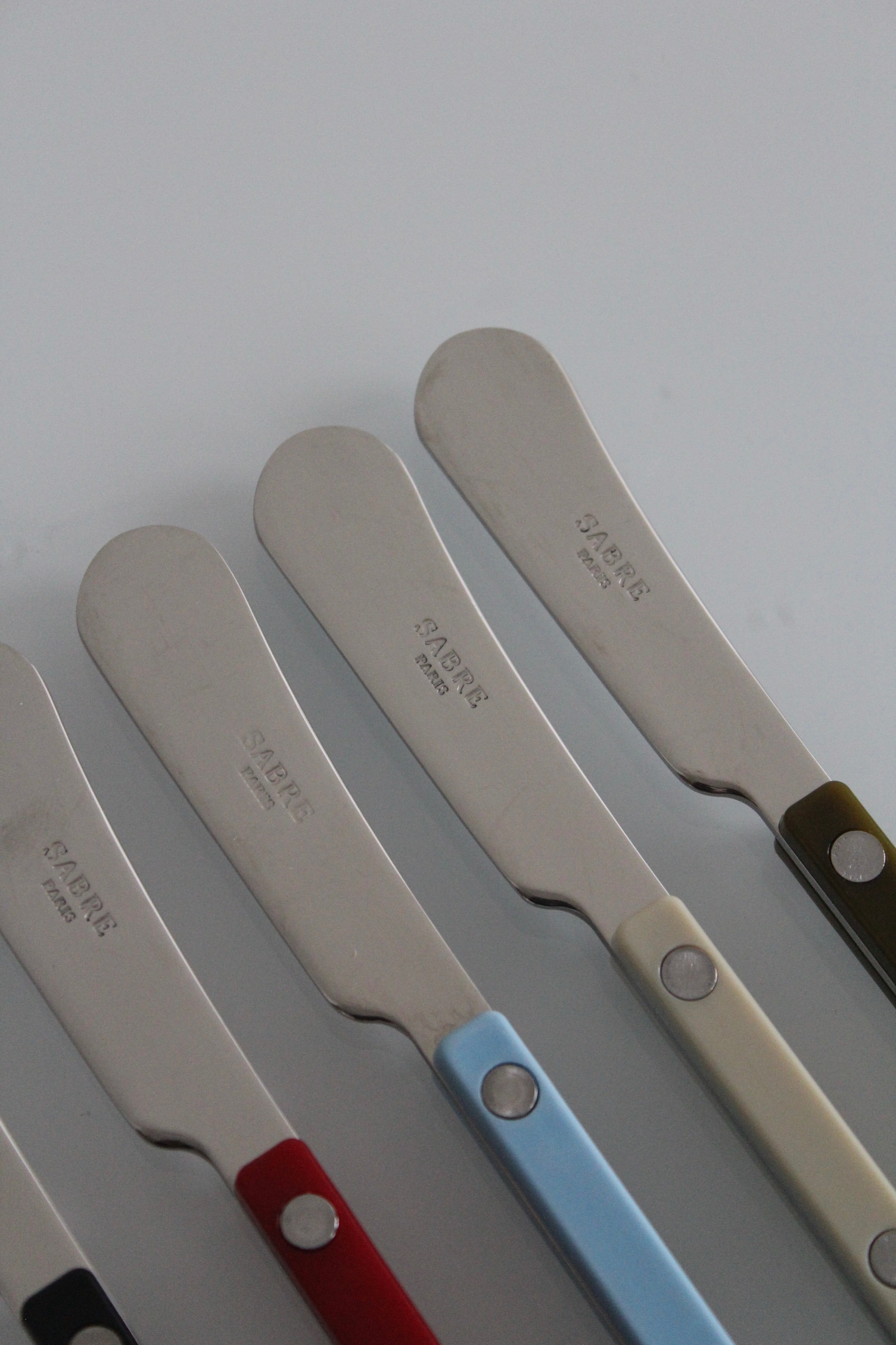 Bistrot Butter Knife Set by Sabre Paris. Made of stainless steel in a shiny finish and a black coloured acrylic handle.