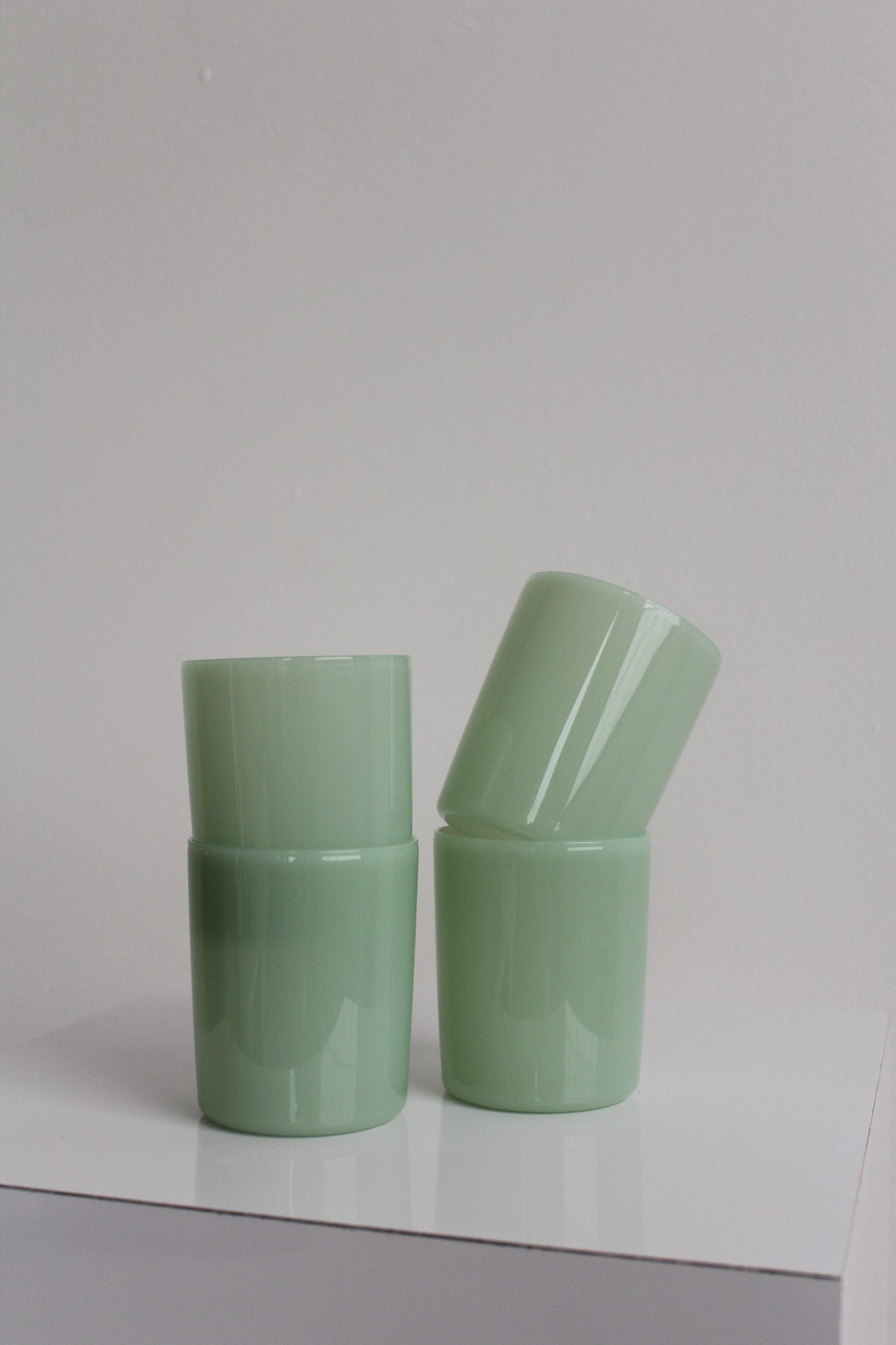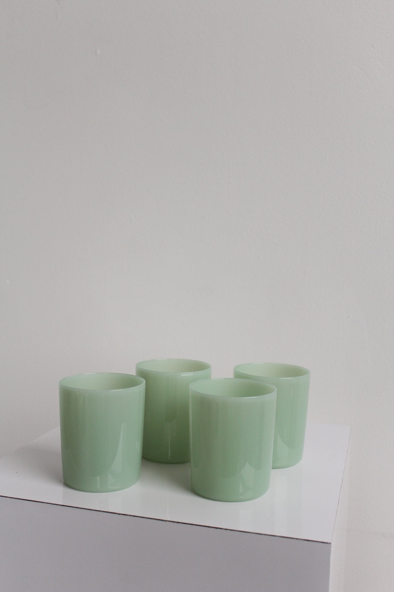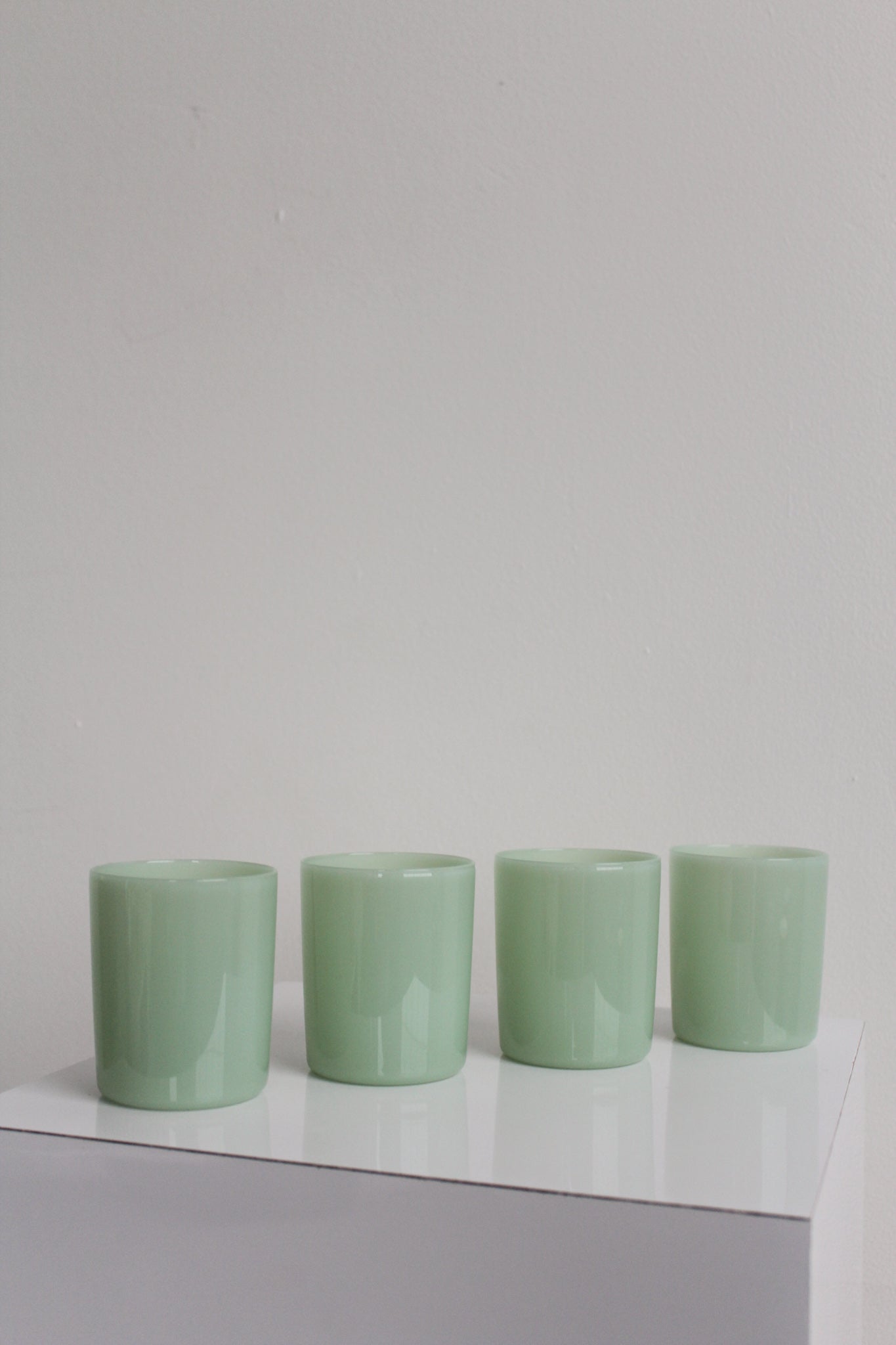 Glass tumbler set of four in opaque mint by Maison Balzac.