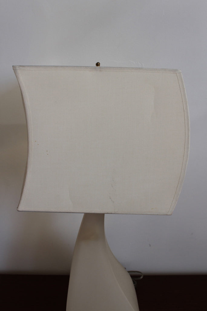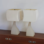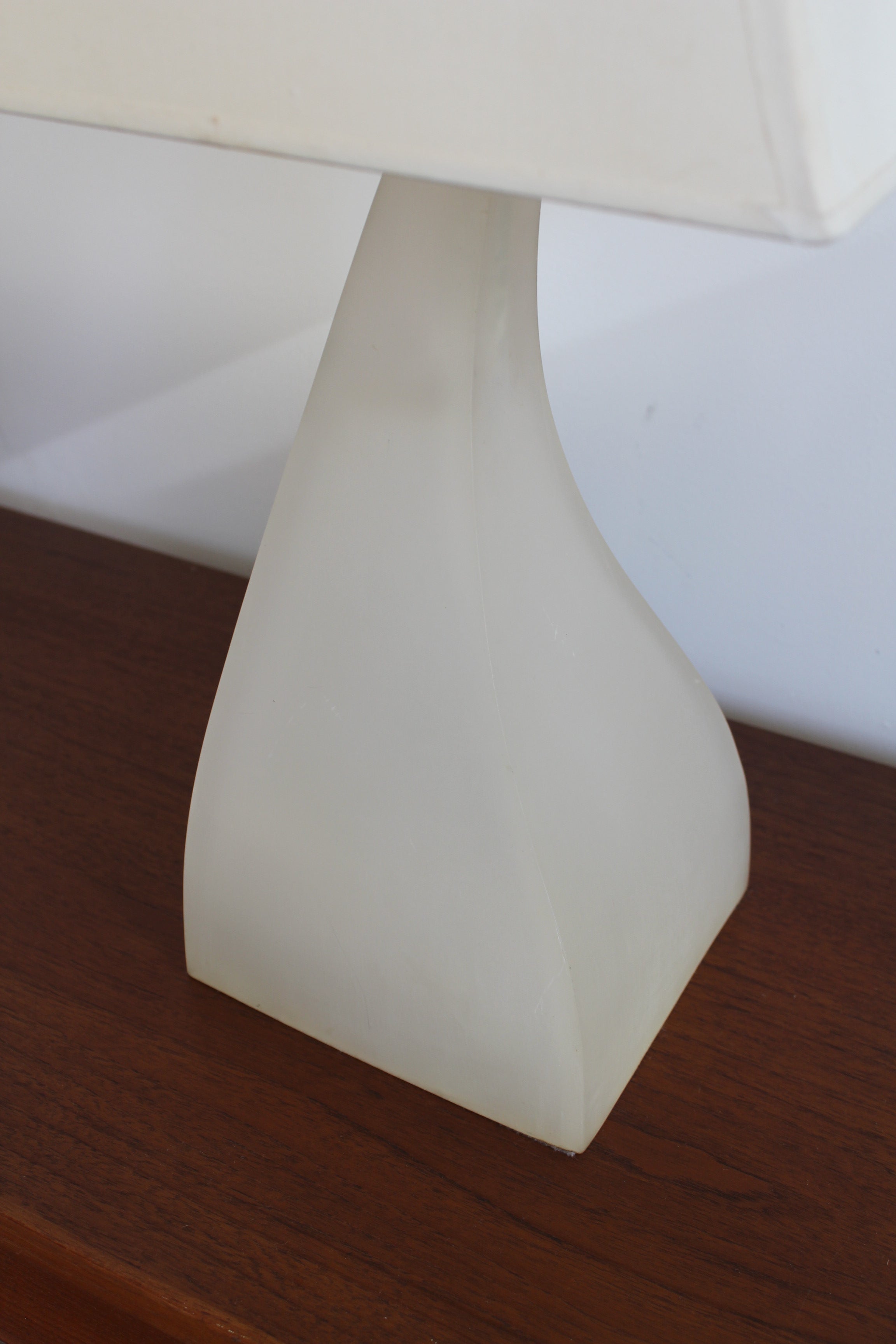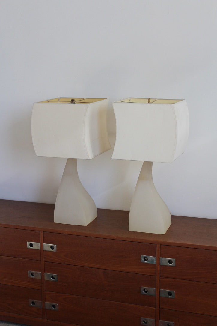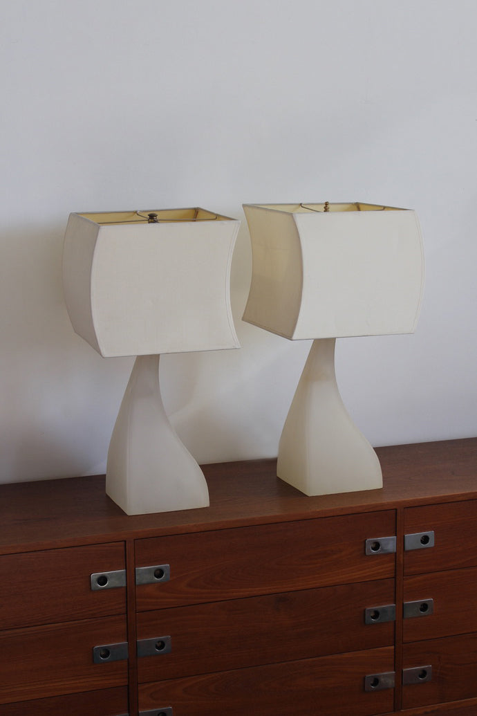 Pair of Lucite Table Lamps, 1970s. Playful organic shaped, opaque lucite base with cotton shade.