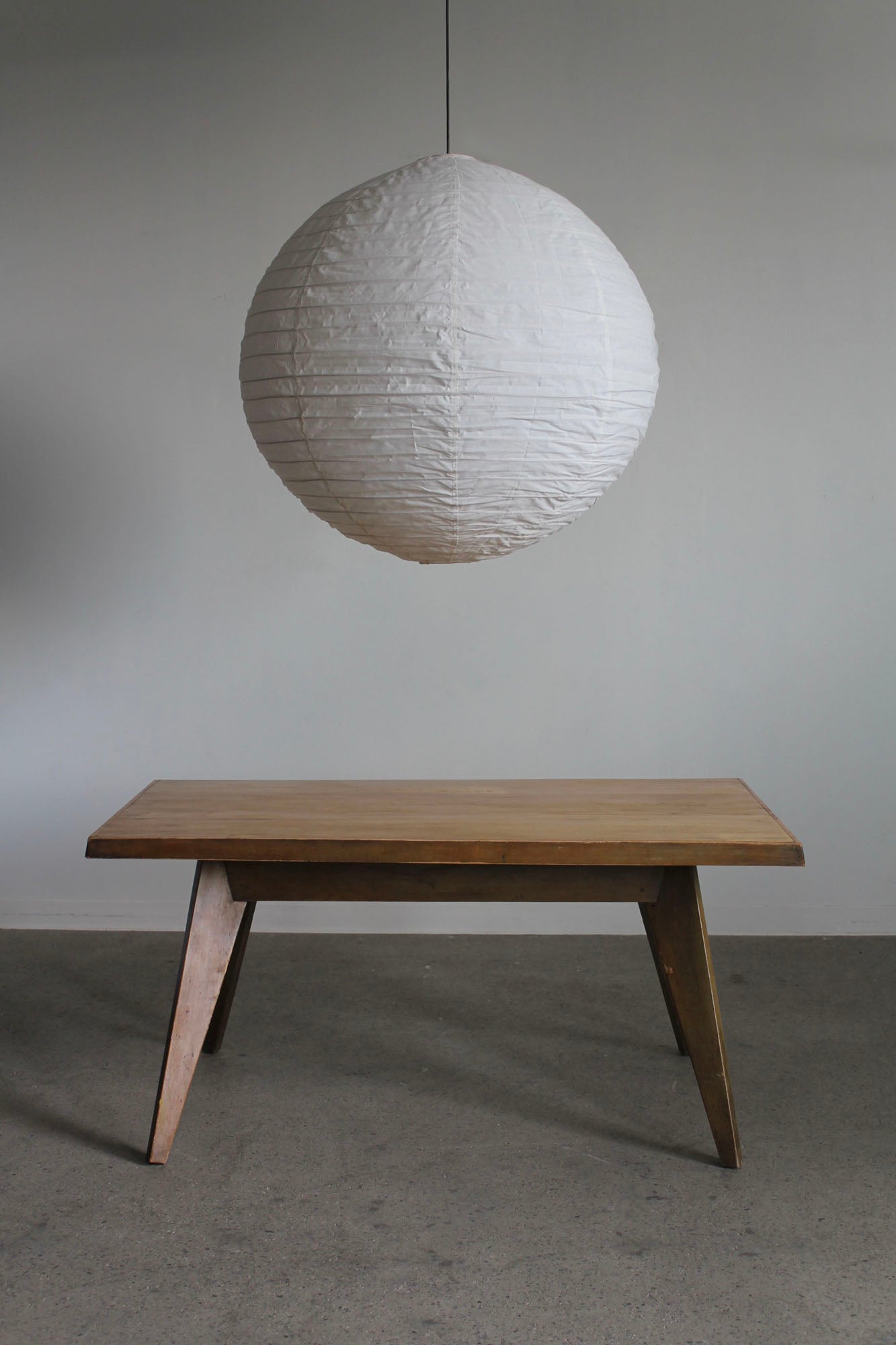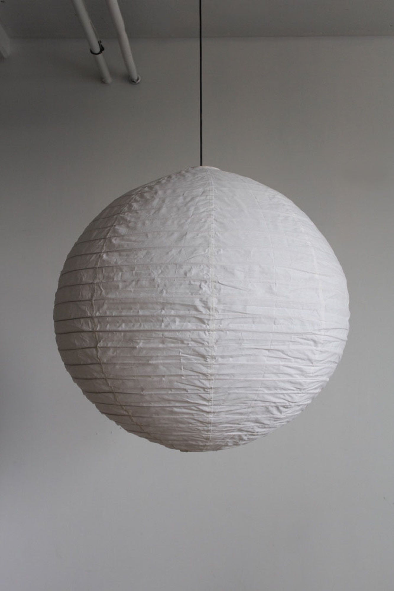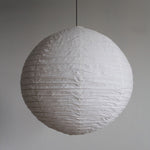 Cotton Pendant Lamp Shade, 2000s. Oversized pendant shade inspired by traditional rice paper lanterns, made of cotton with a ribbed bamboo frame, emits a soft light when lit.