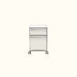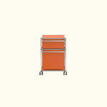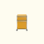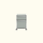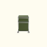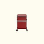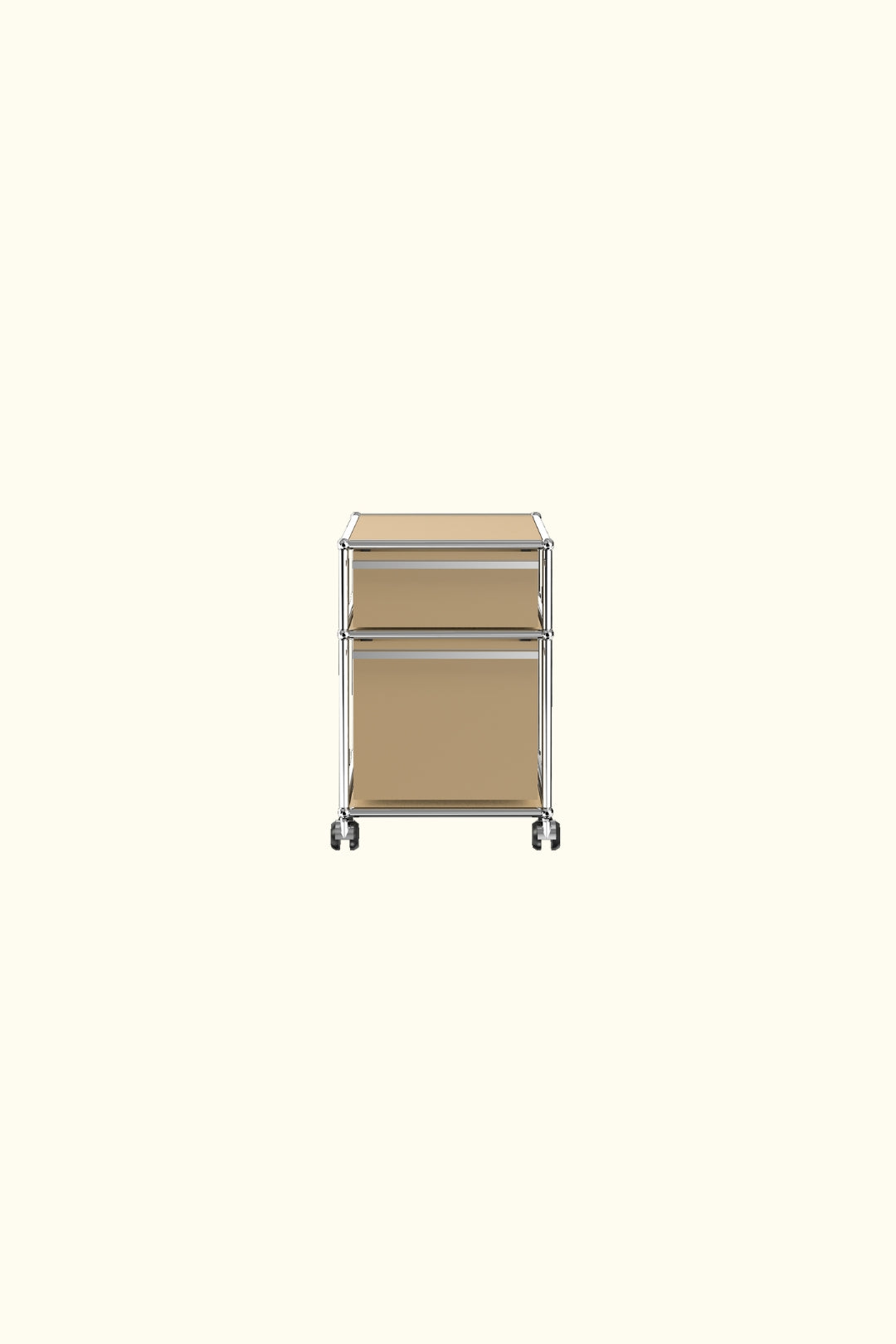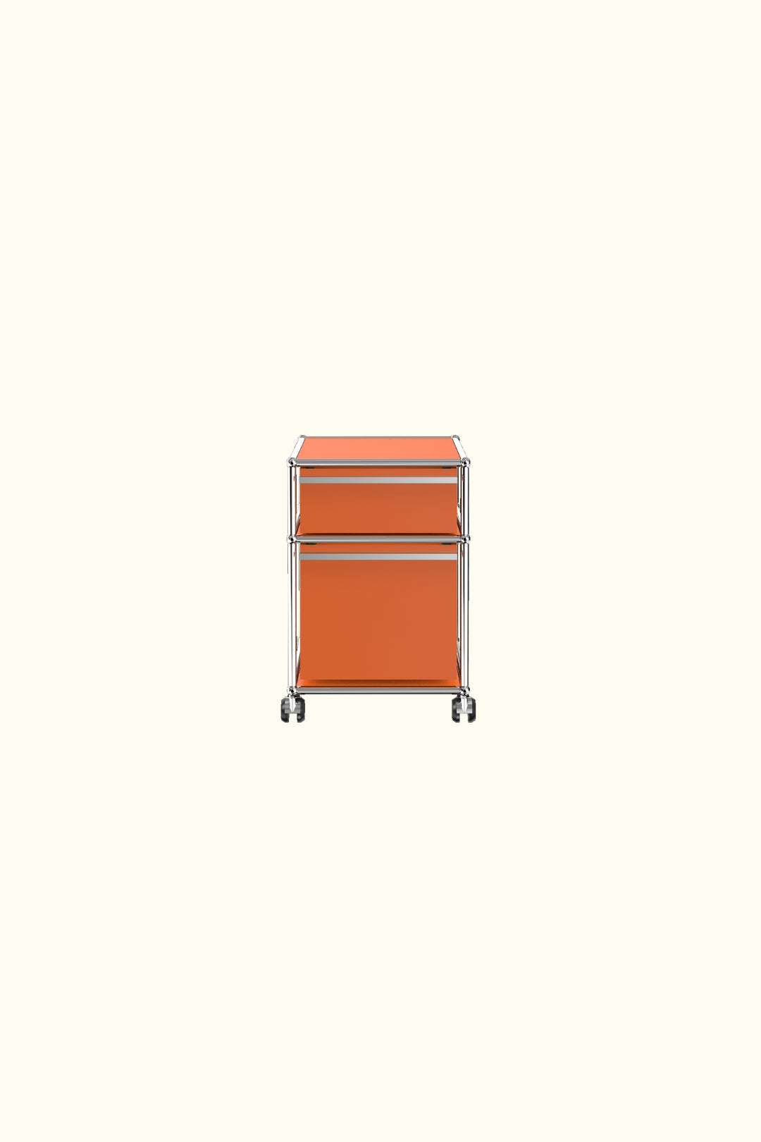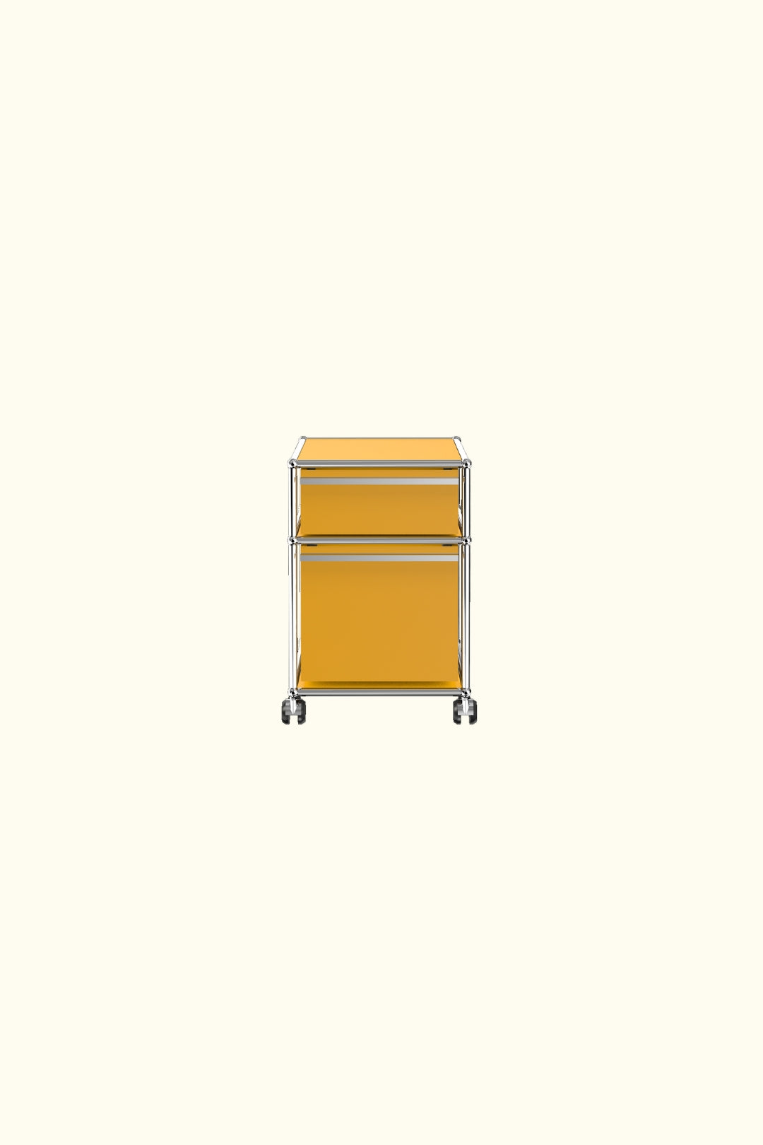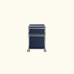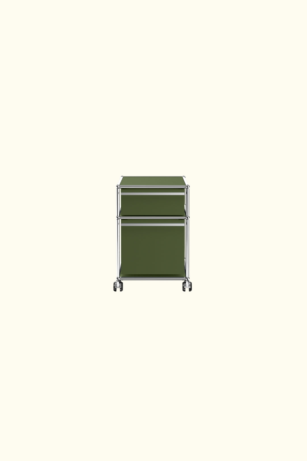 Mobile file pedestal with one 6" drawer and one 14" letter filing drawer and casters. Slides easily under a desk to tuck away. The USM Haller system is made of powder-coated steel panels and chromed steel frame. GREENGUARD and Cradle to Cradle Certified®.