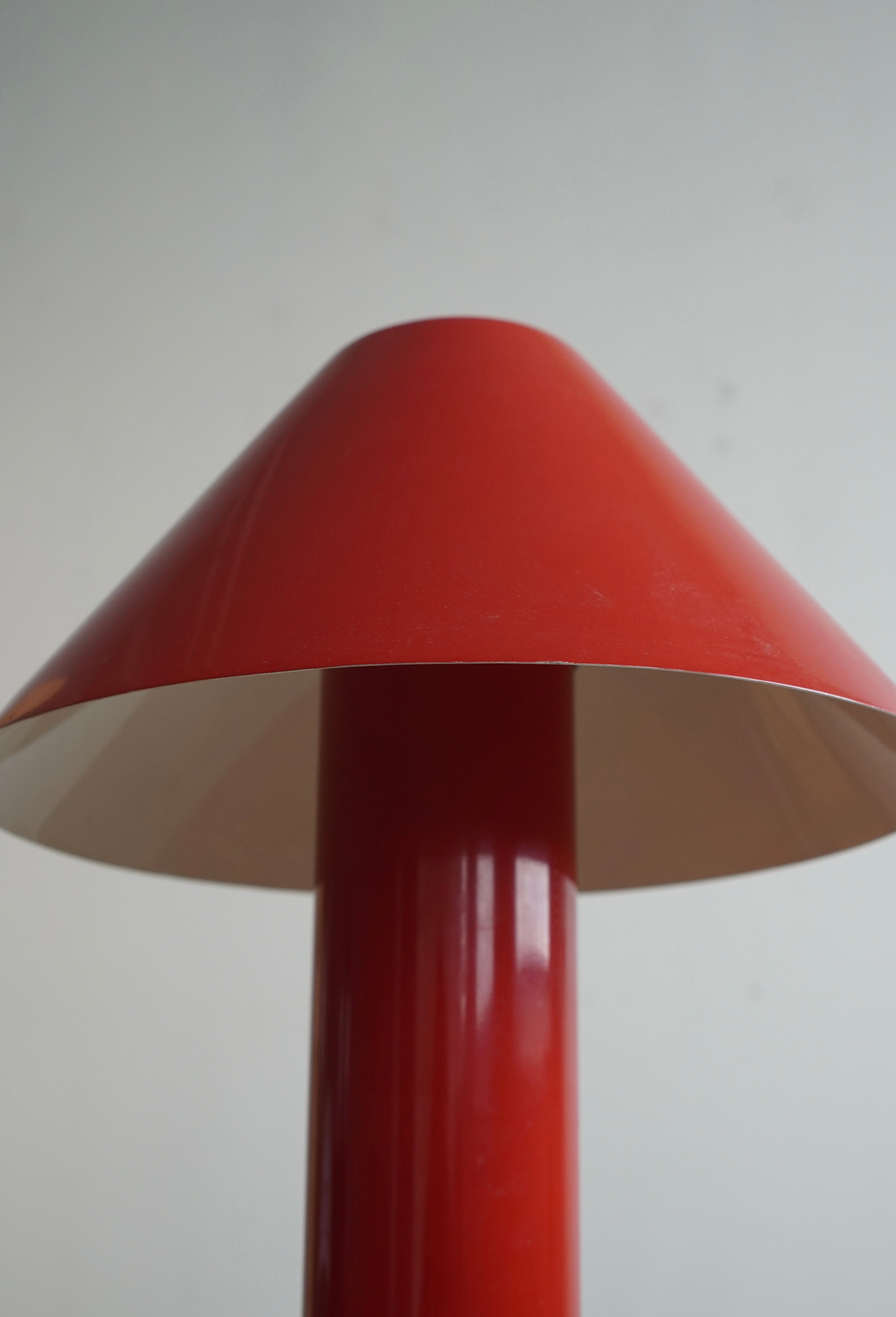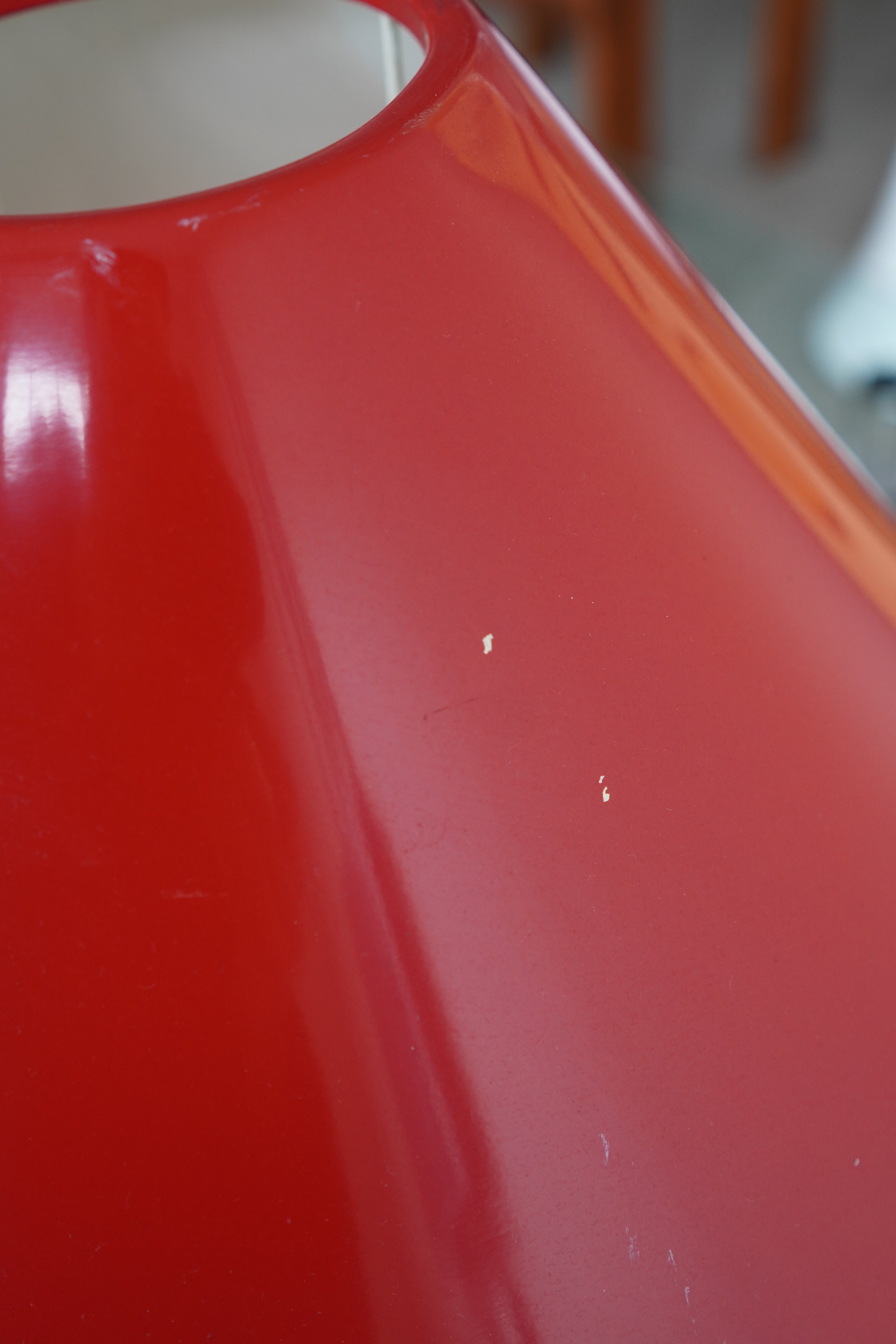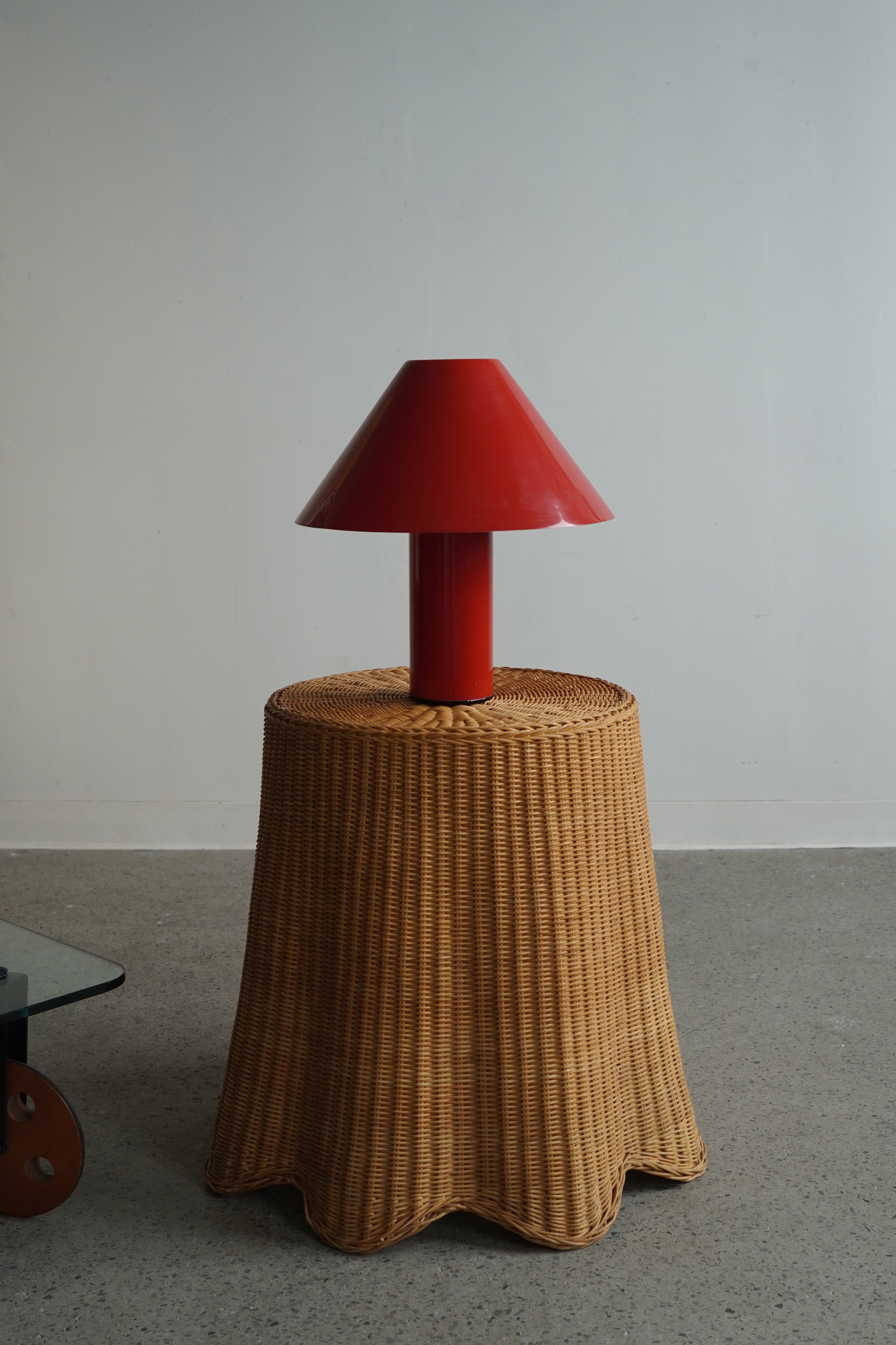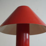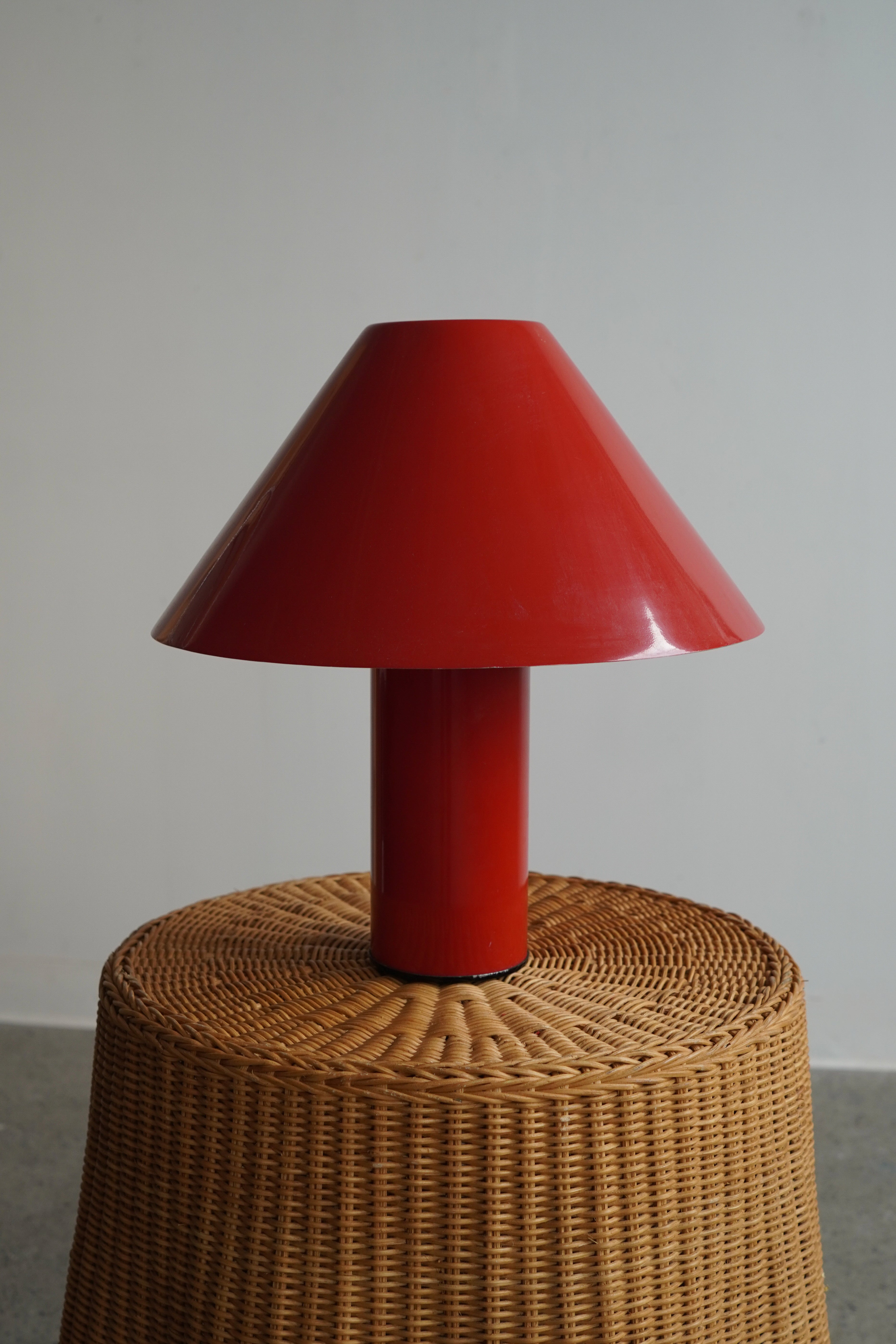 Red metal side table lamp, 1970s. Shade and base made of metal. Shade is removable.