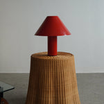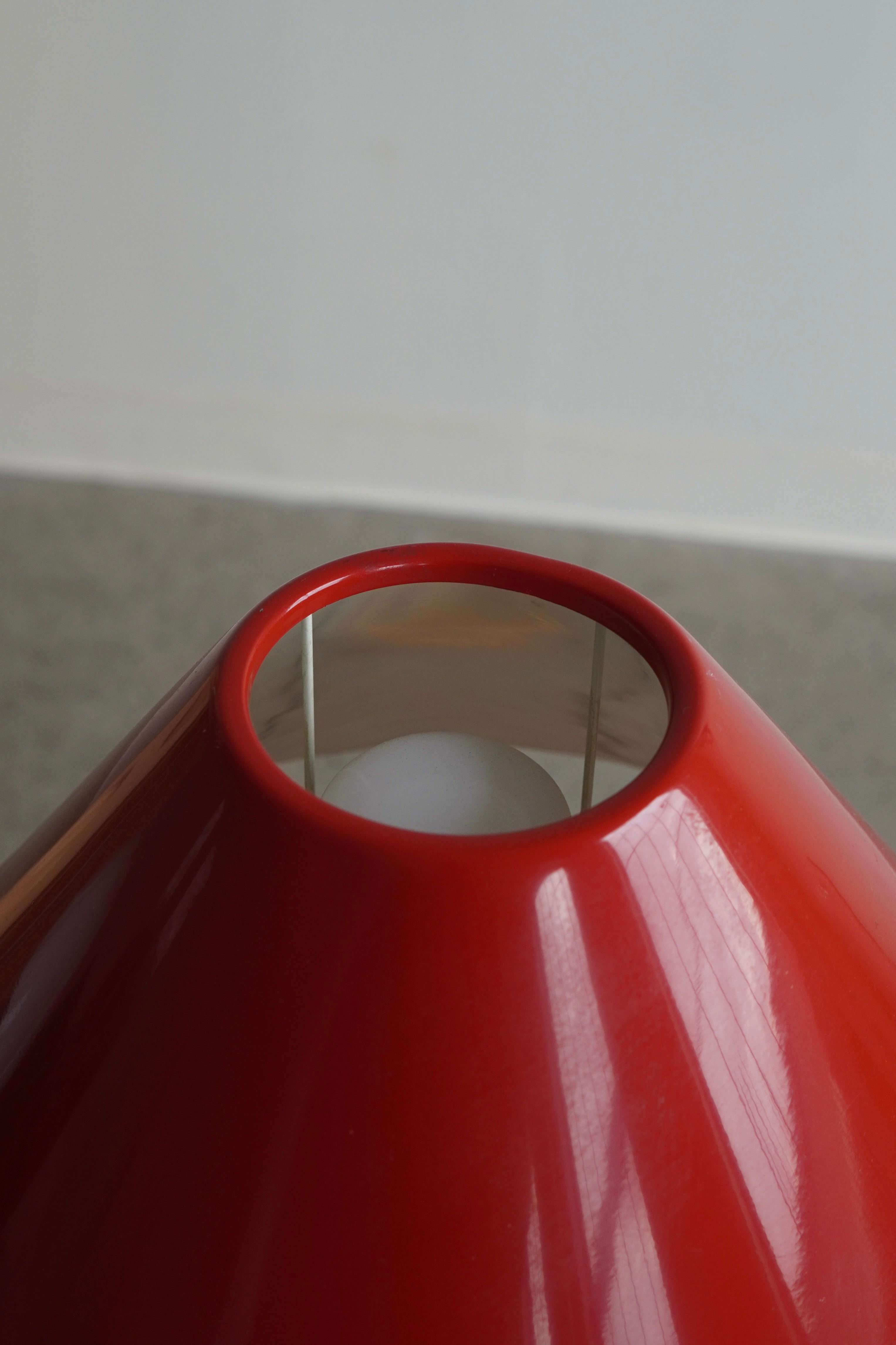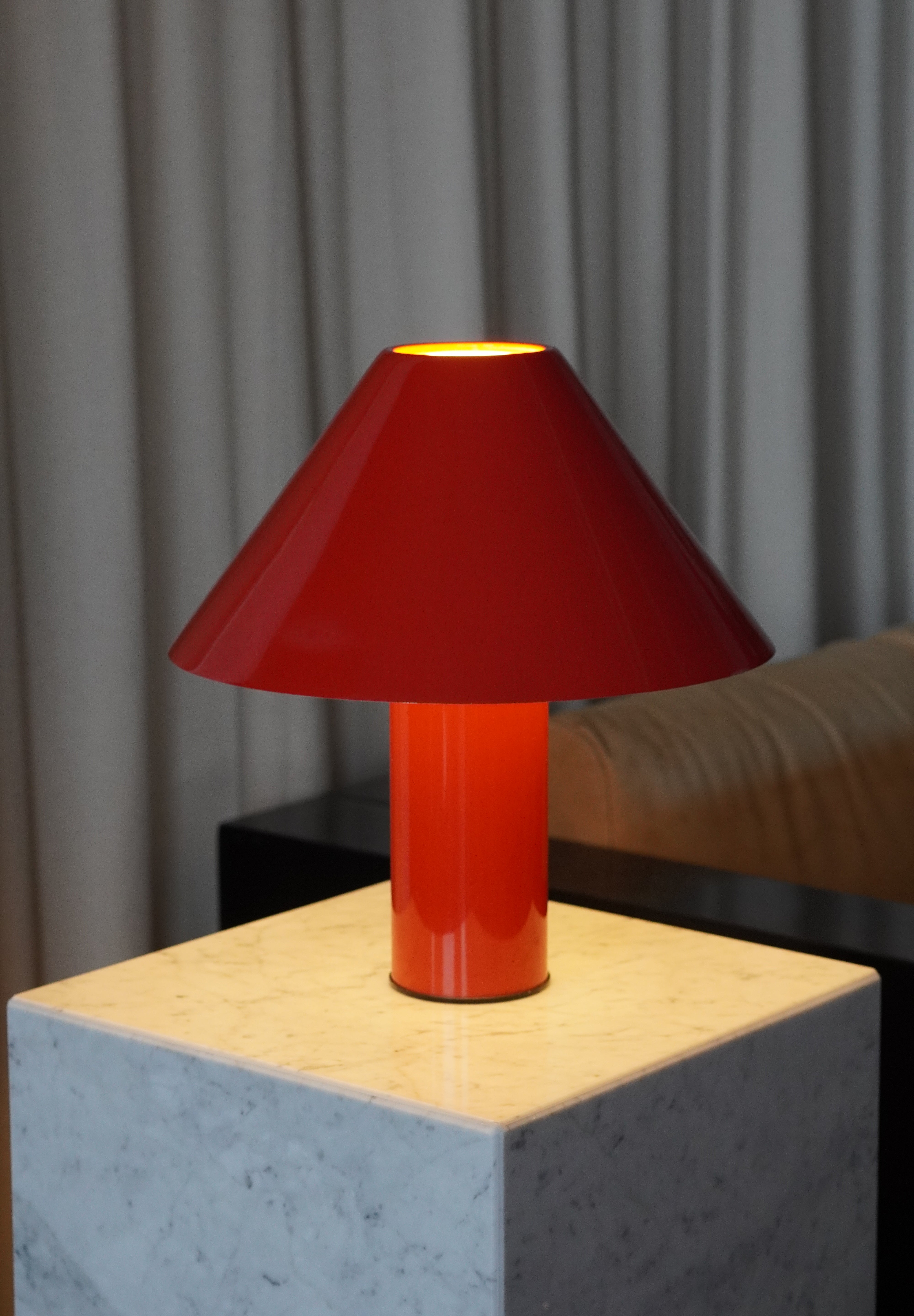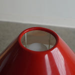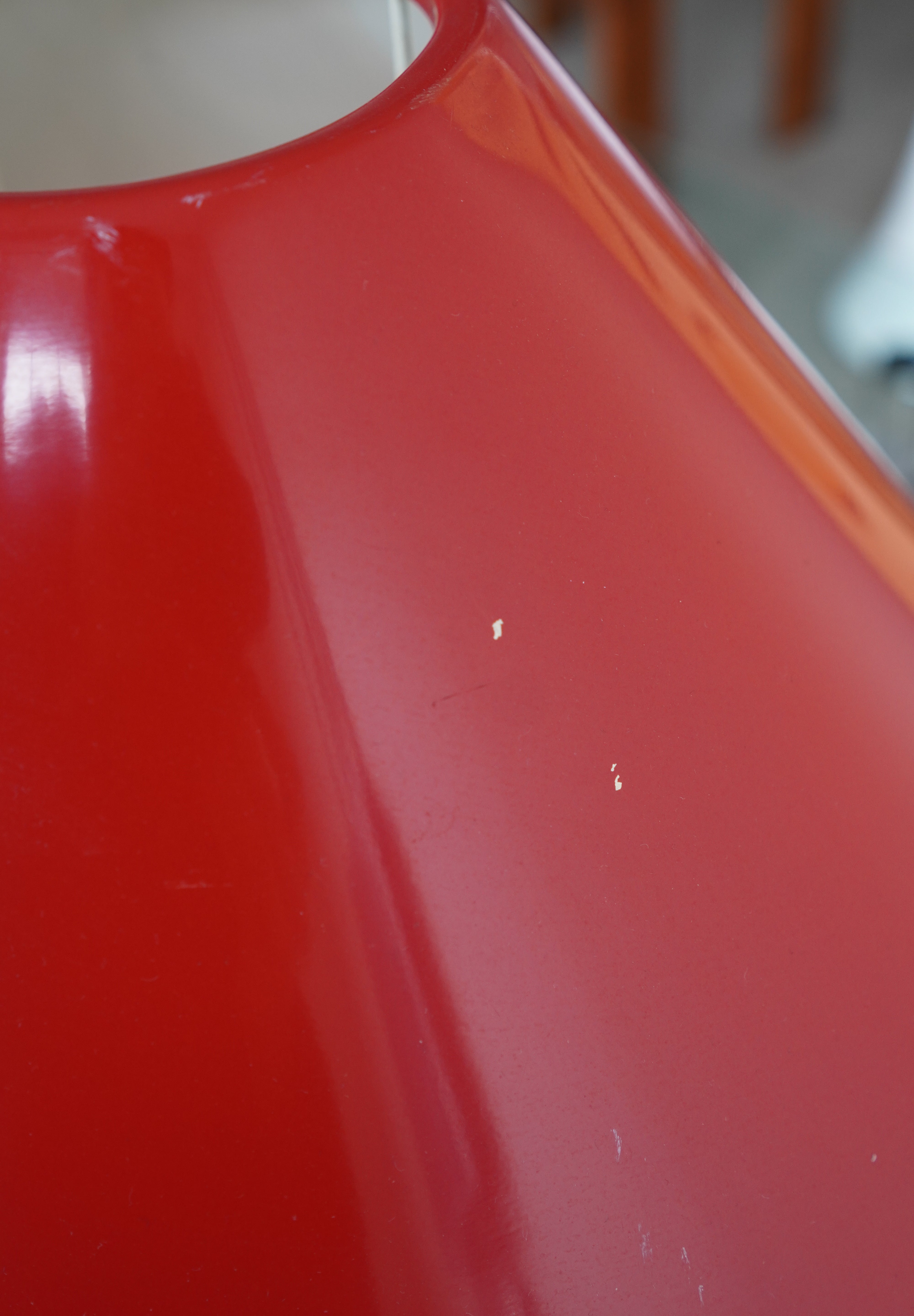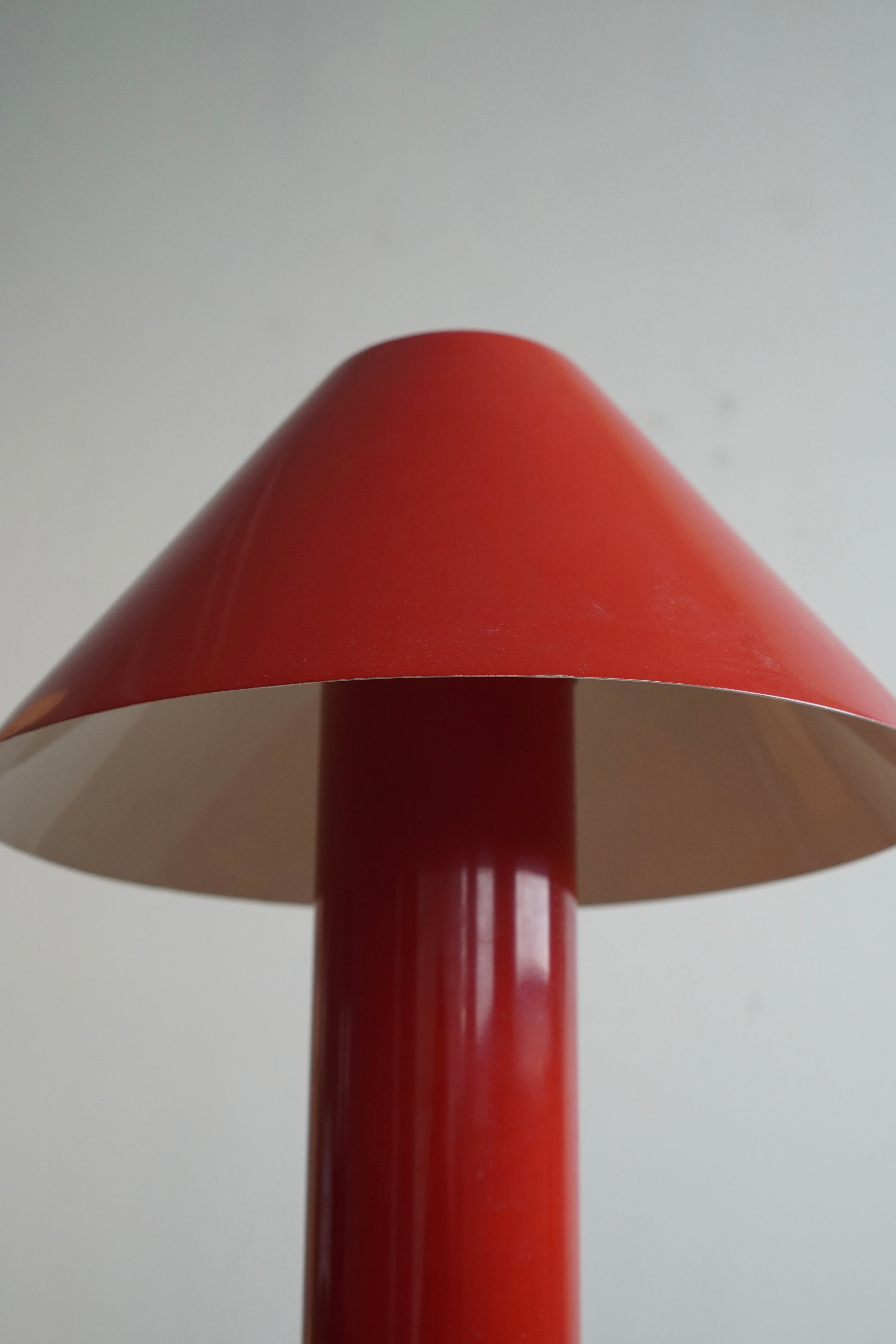Red metal side table lamp, 1970s. Shade and base made of metal. Shade is removable.
