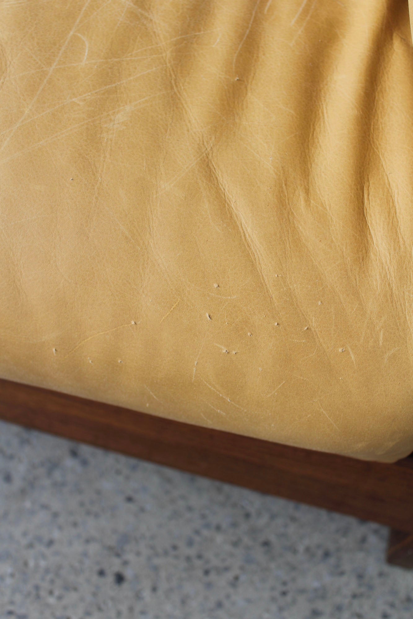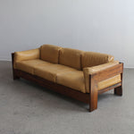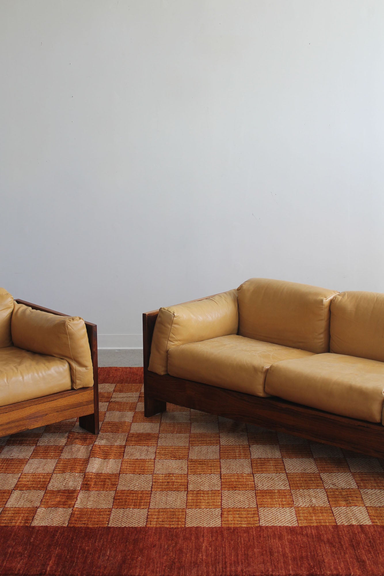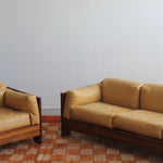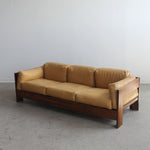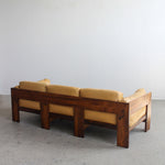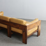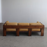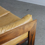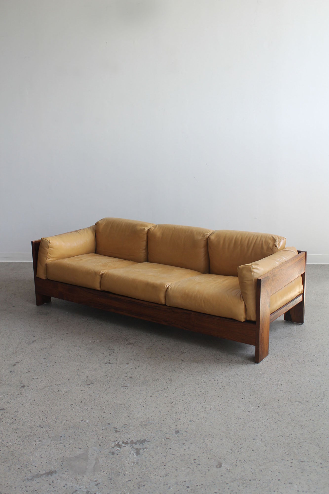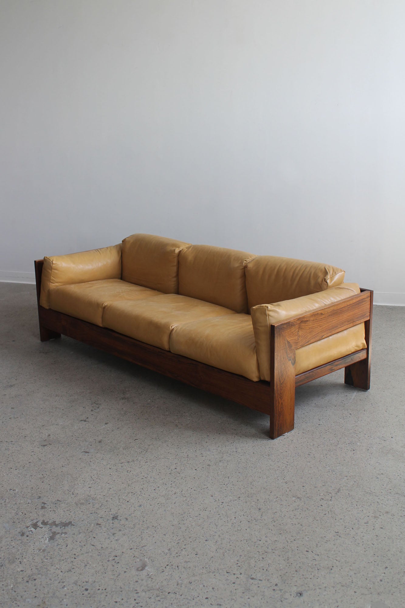 Rosewood and Leather 3-seater Sofa, 1970s. In the manner of Tobia Scarpa - rosewood frame and soft, thick butterscotch colored leather.