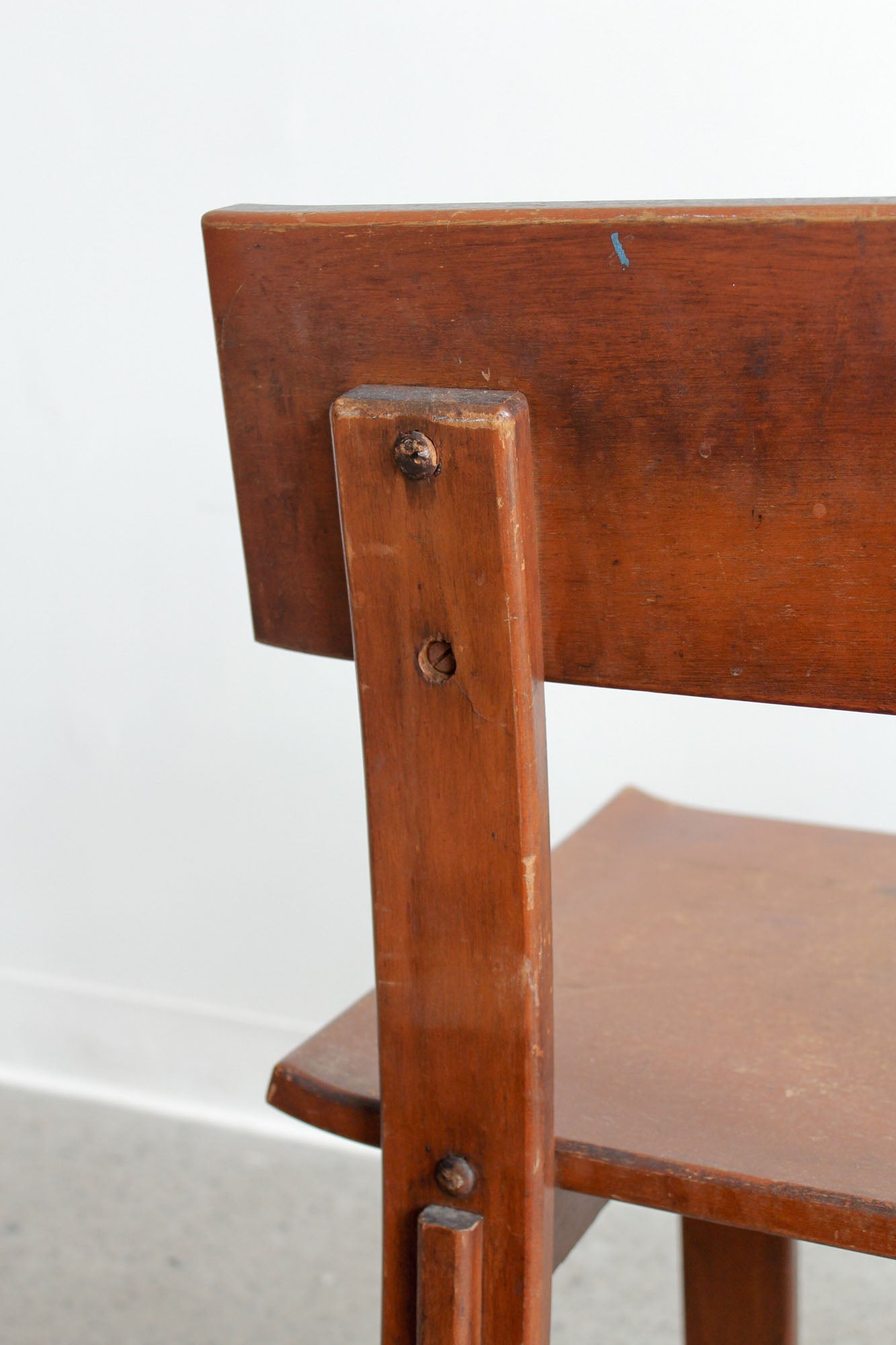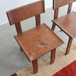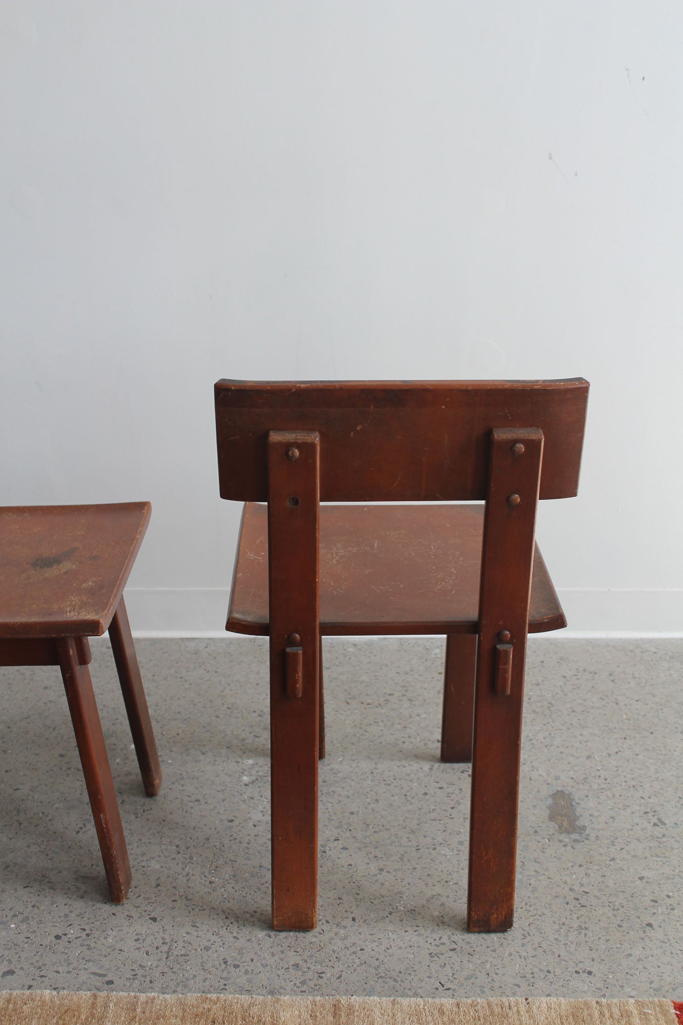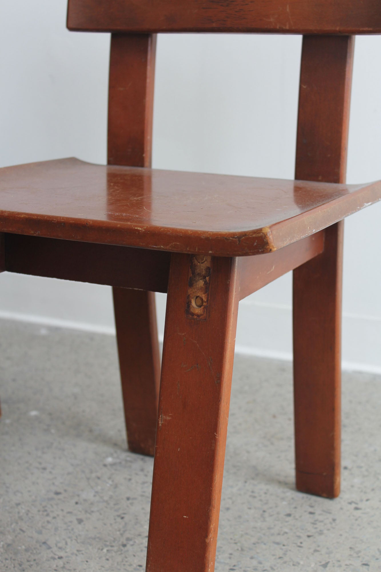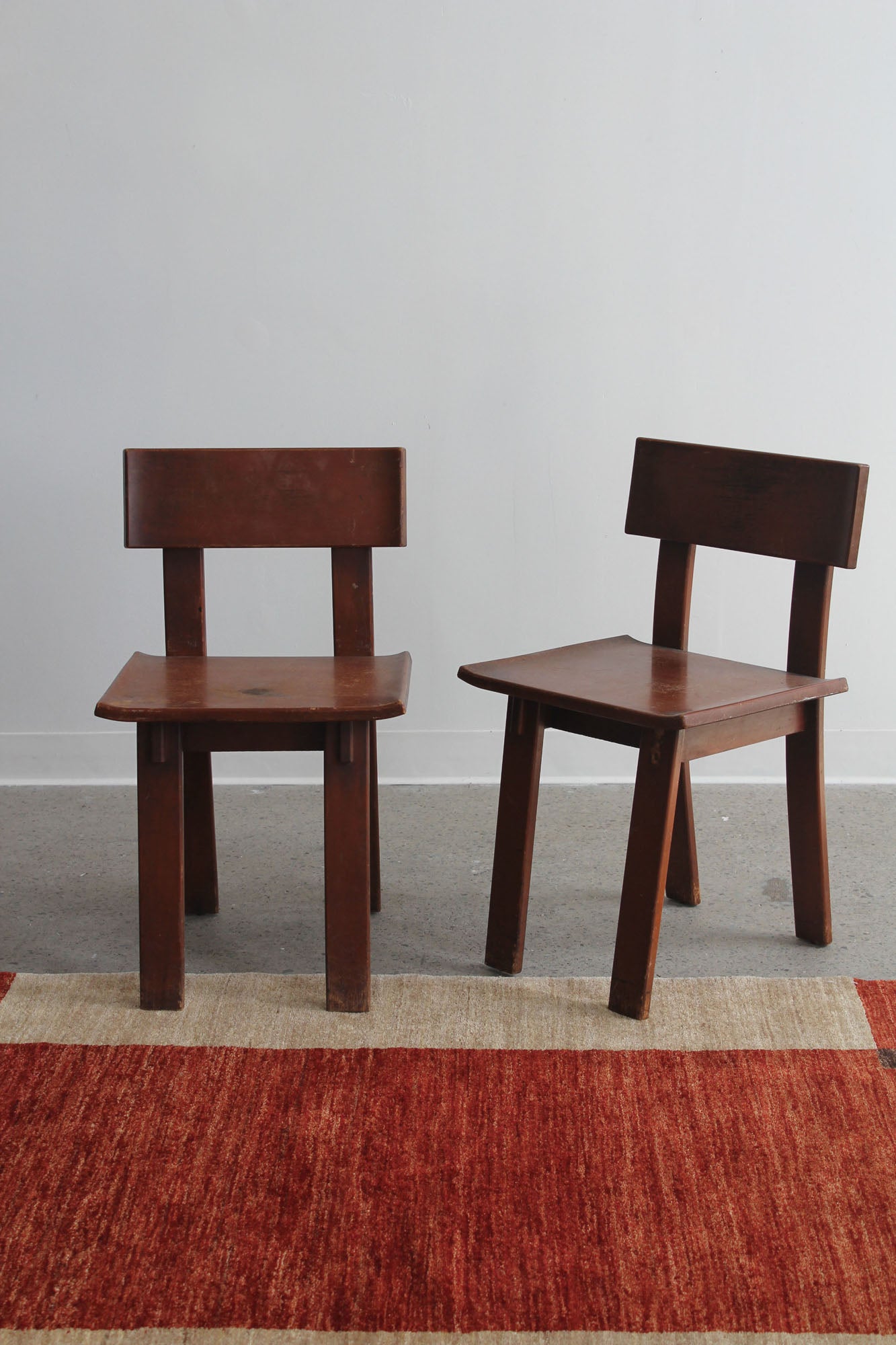 Set of two dining chairs designed by Russel Wright, made by Conant Ball for American Modern, 1930s. Rare set of "American Modern" lacquered maple chairs - signed with branded manufacturer's mark to underside.