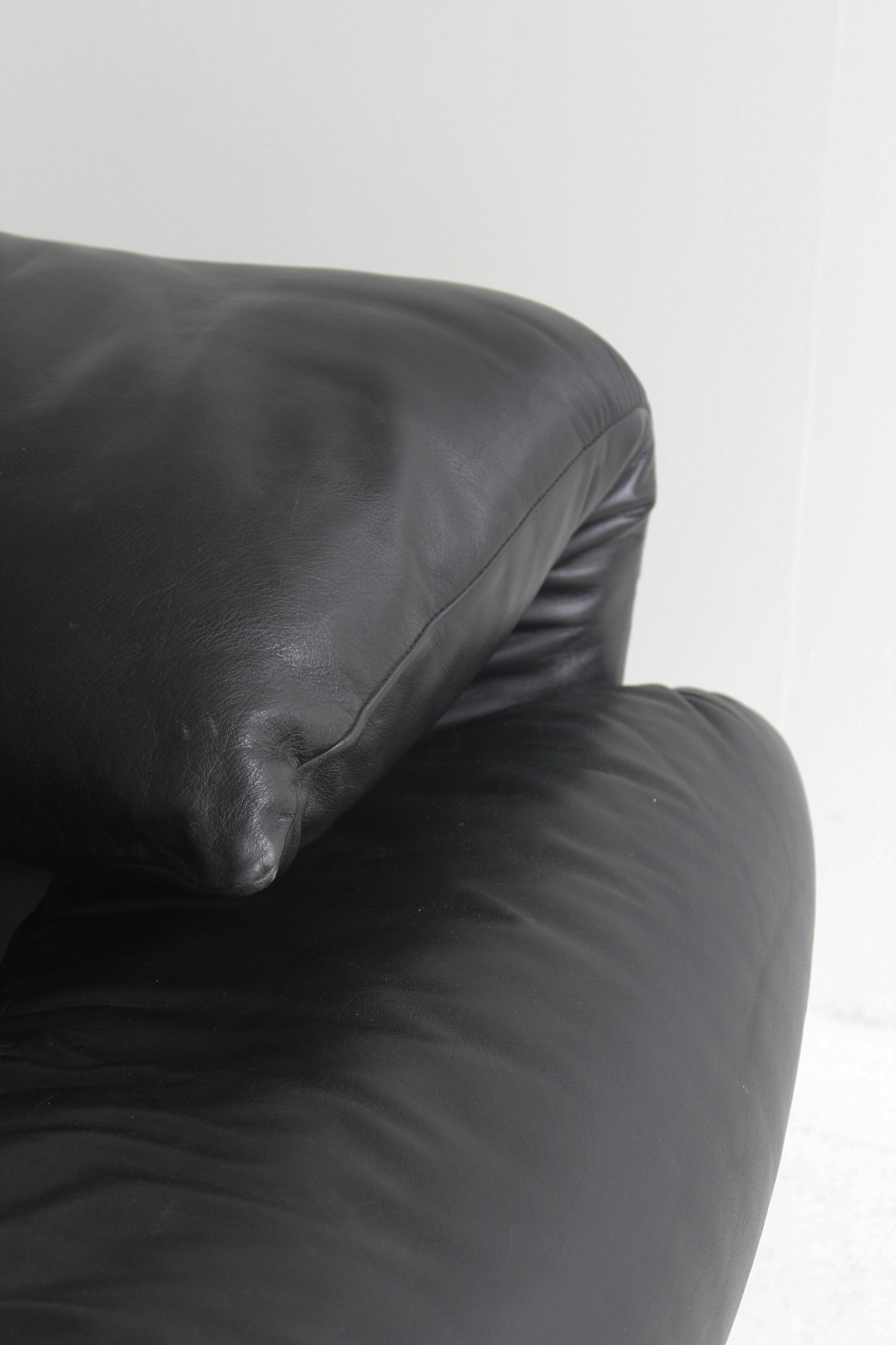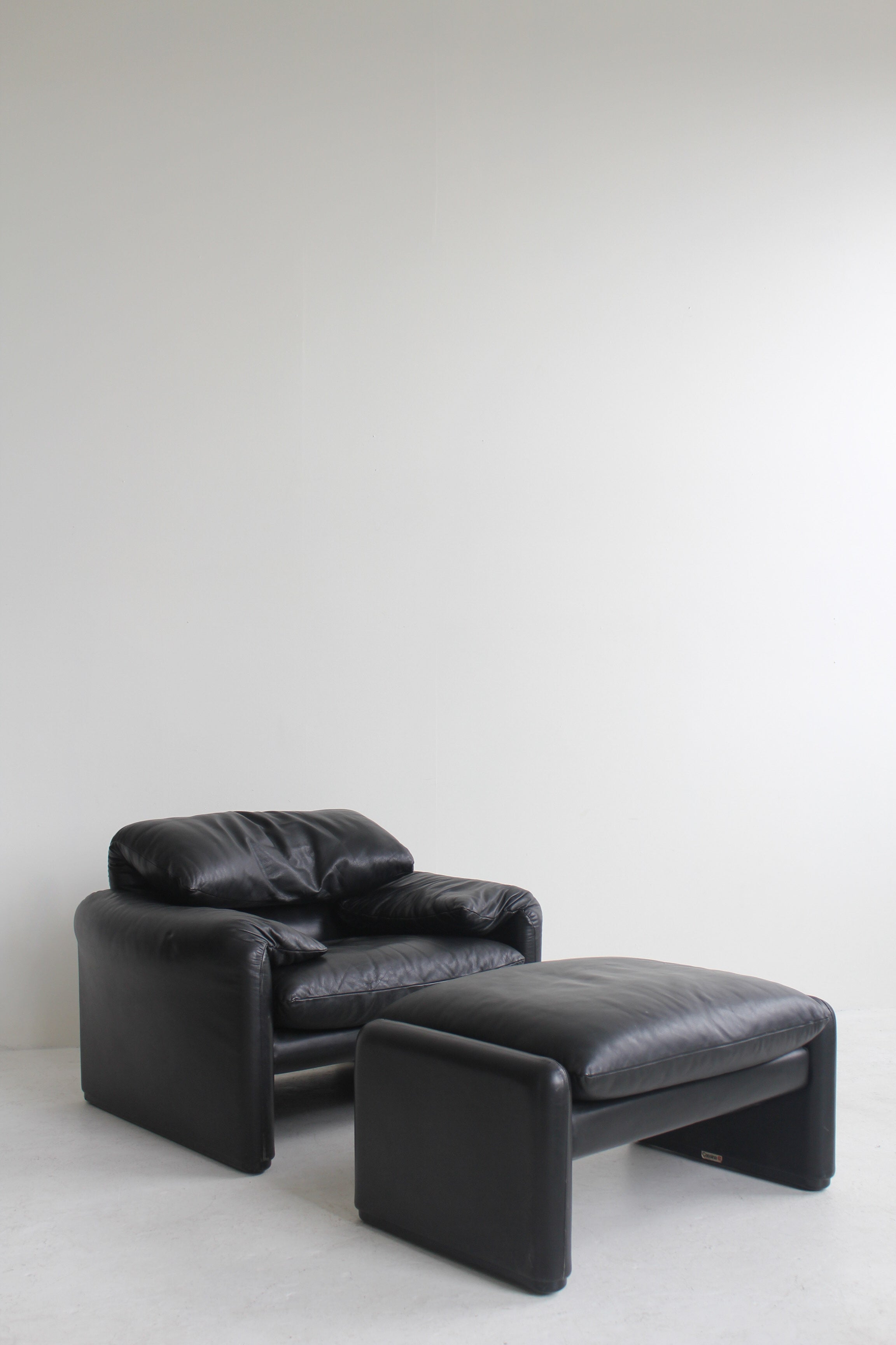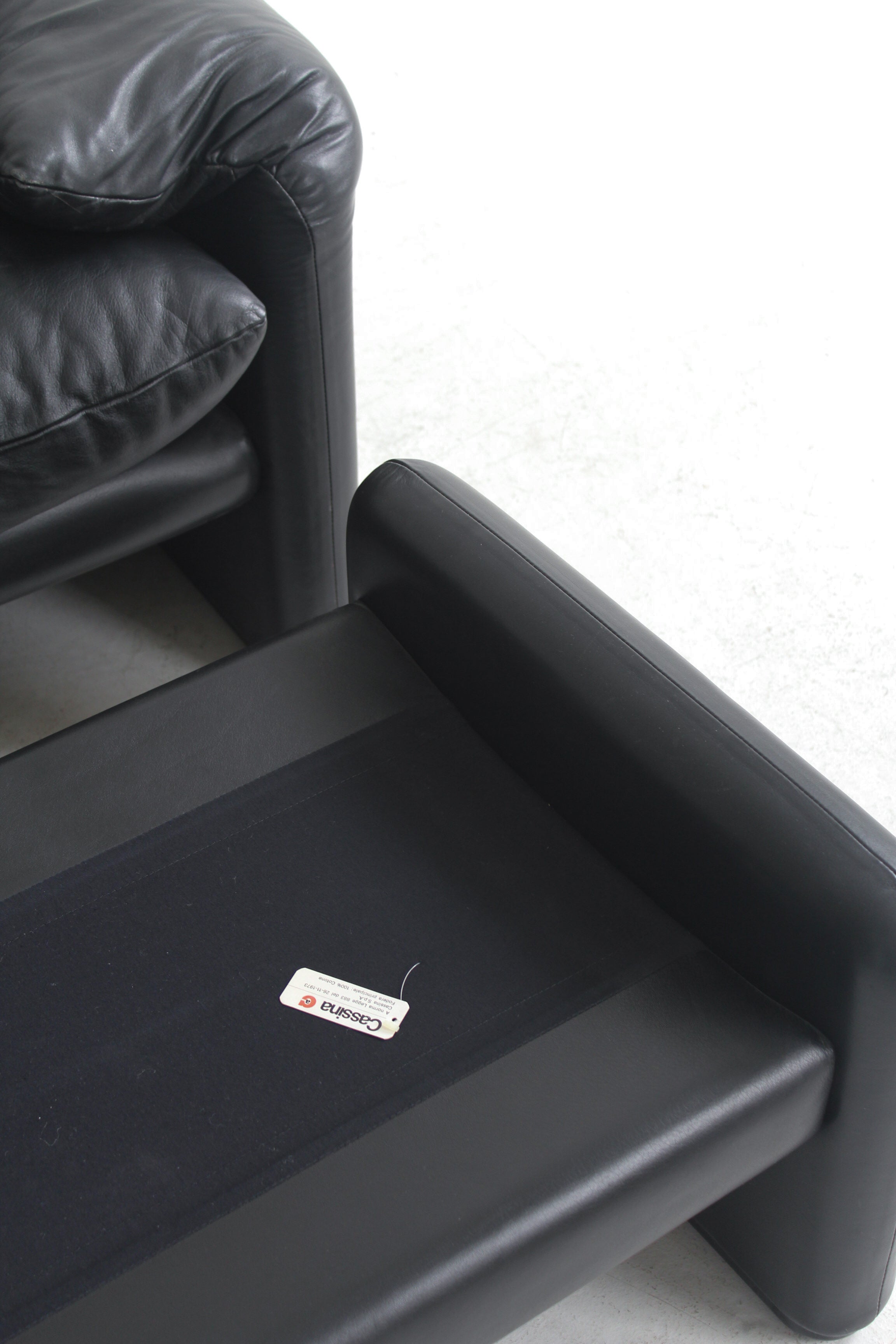 Leather Maralunga Lounge Chair and Ottoman by Vico Magistretti for Cassina, 1970s. One of Magistretti's most iconic designs - adjustable backrest. Black leather upholstery.