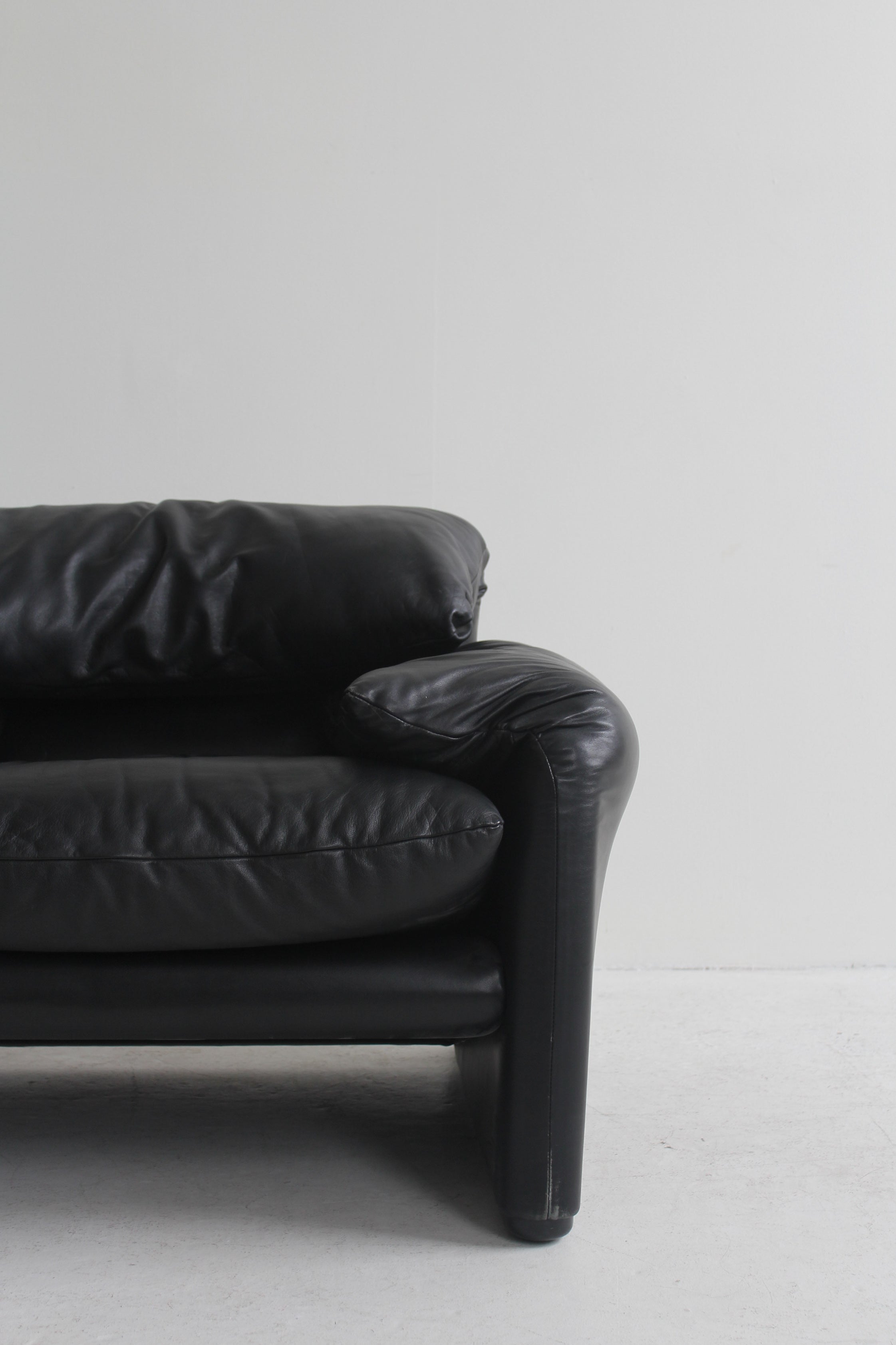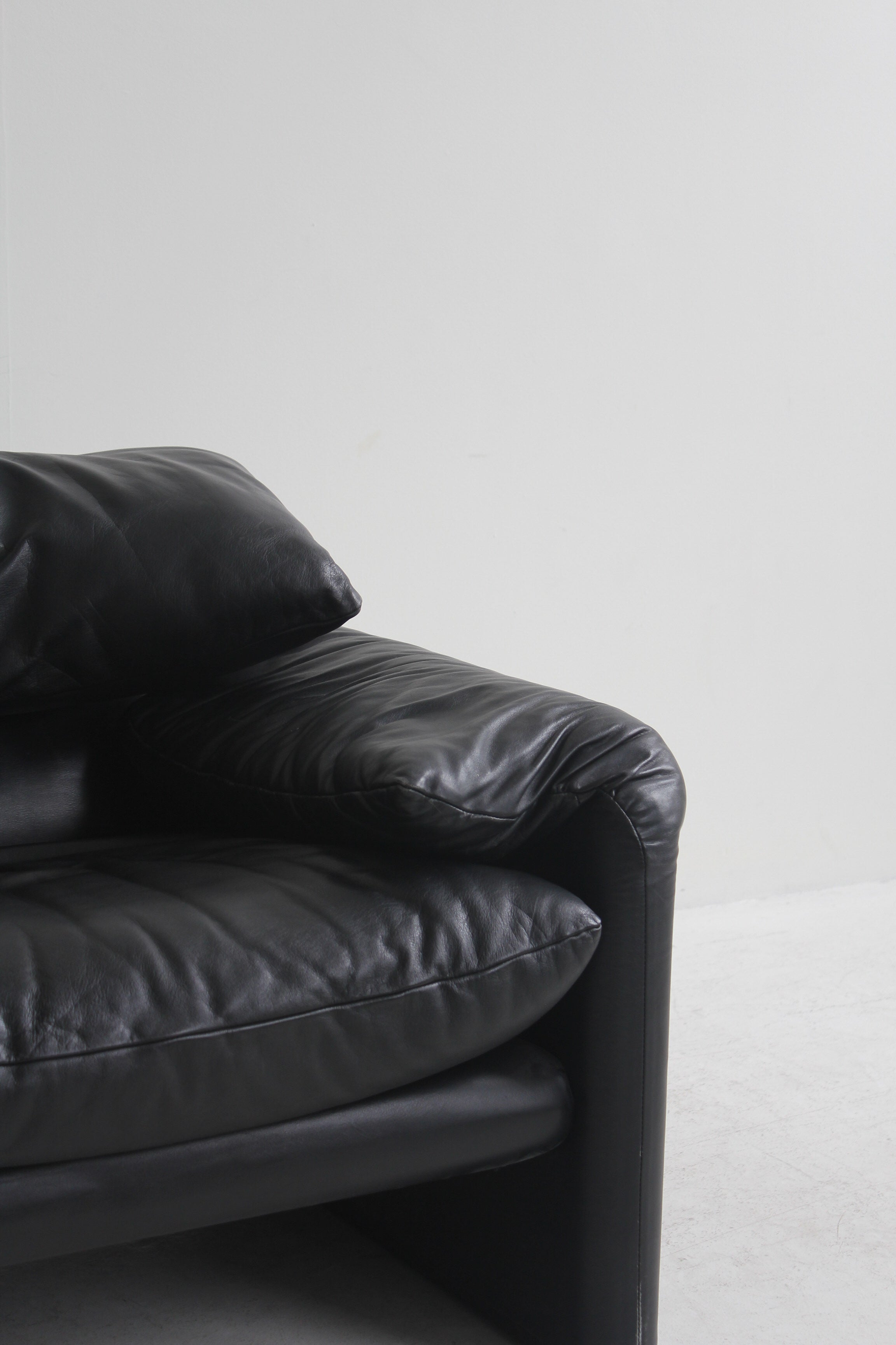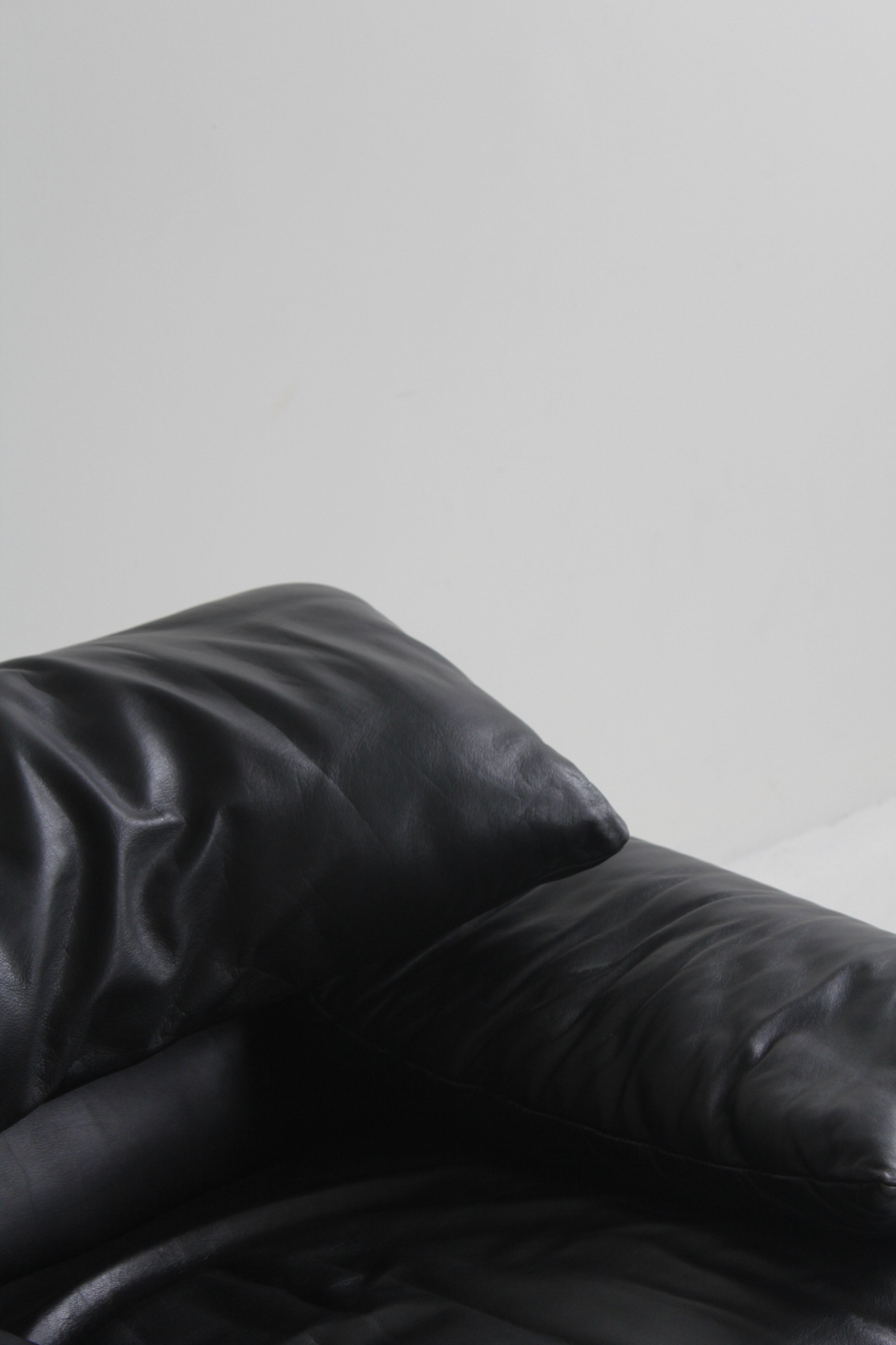 Leather Maralunga Lounge Chair and Ottoman by Vico Magistretti for Cassina, 1970s. One of Magistretti's most iconic designs - adjustable backrest. Black leather upholstery.