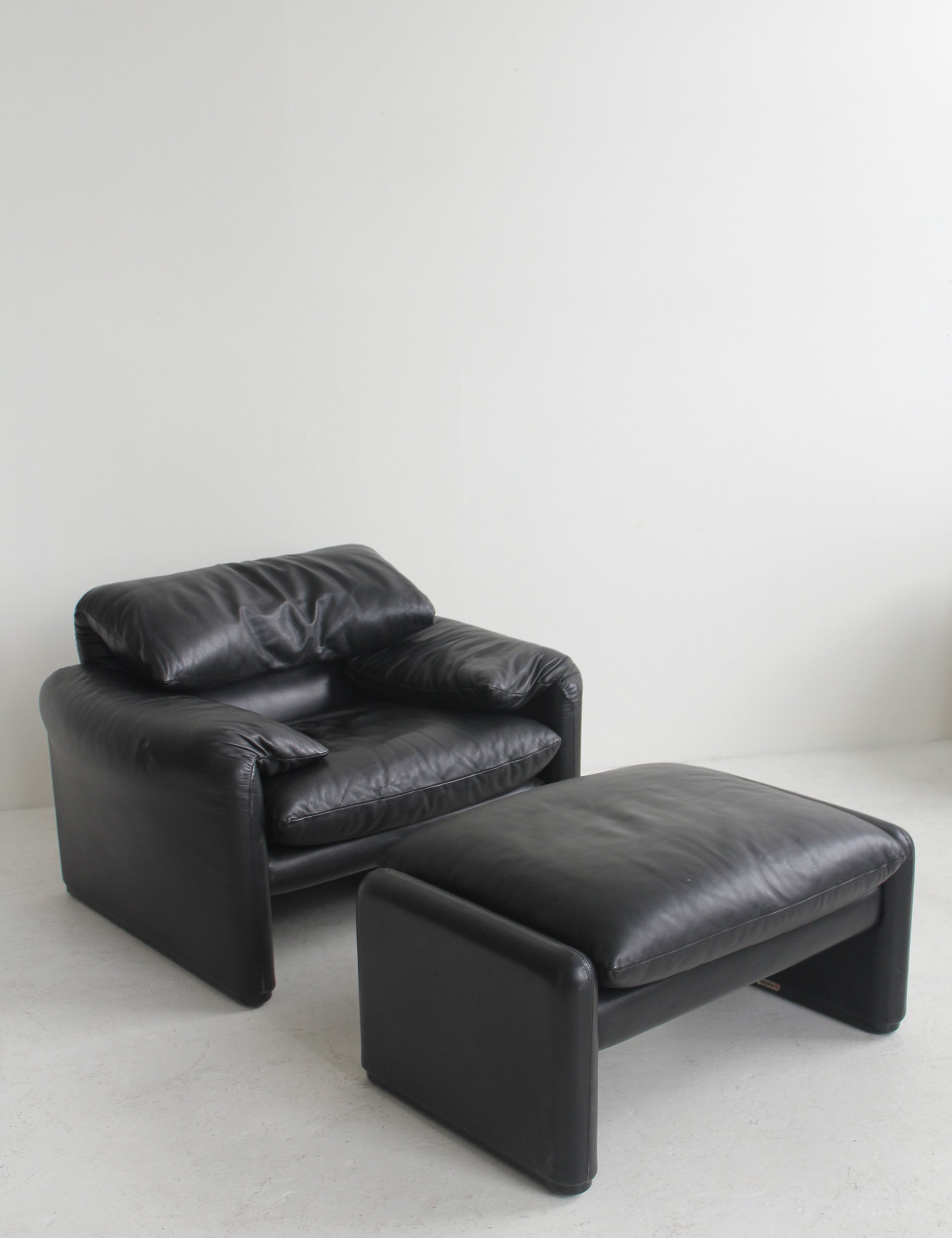 Maralunga Lounge Chair and Ottoman by Vico Magistretti for Cassina