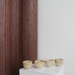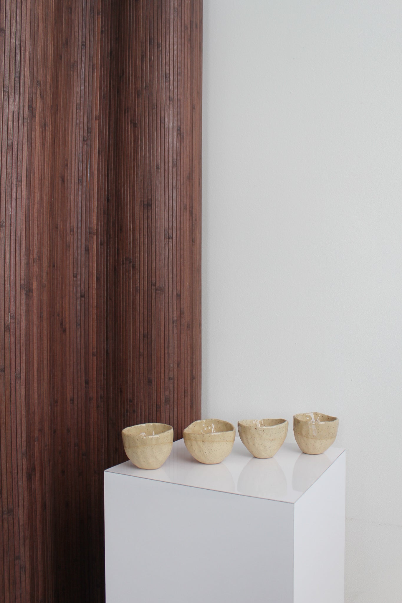 Extérieur en grès brut moucheté avec intérieur brillant émaillé.