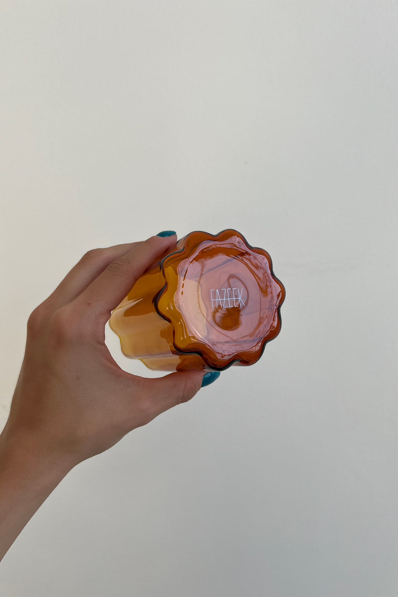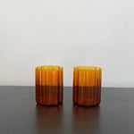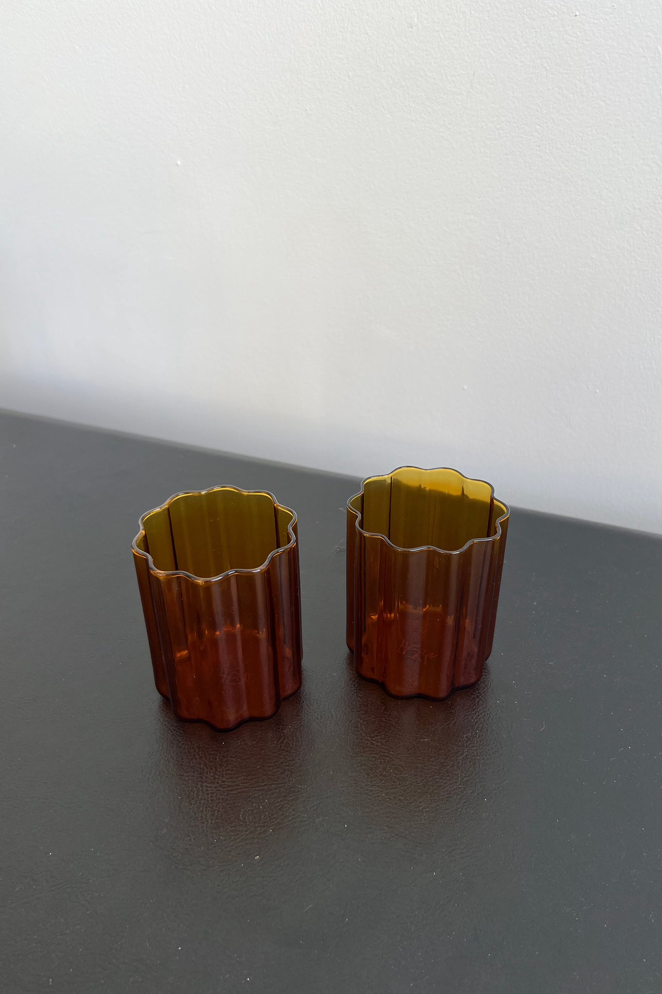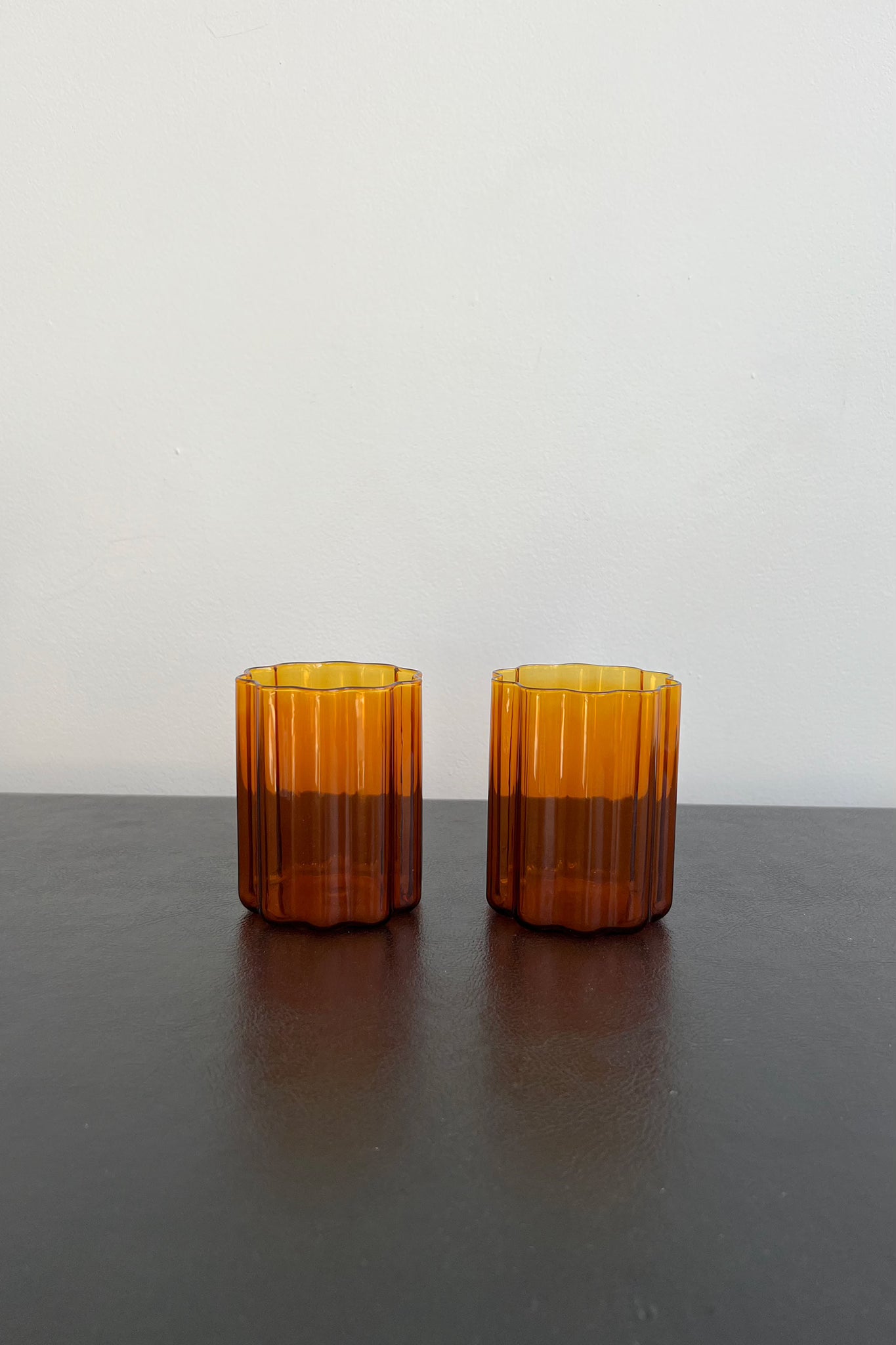 Ensemble de deux verres ondulés faits à la main en couleur ambre par Fazeek.