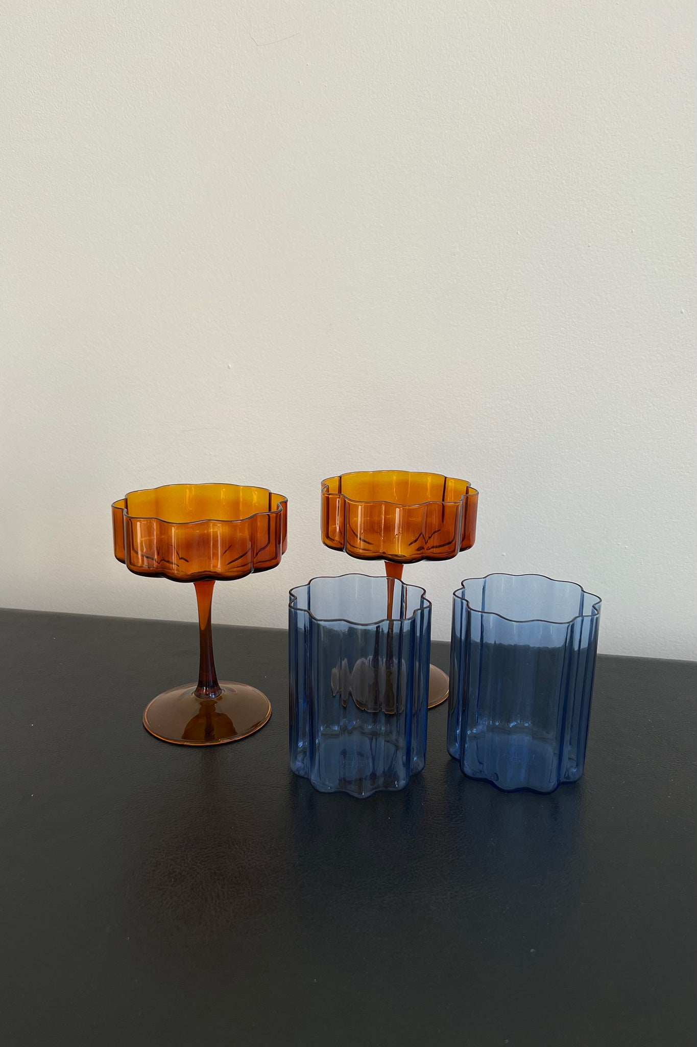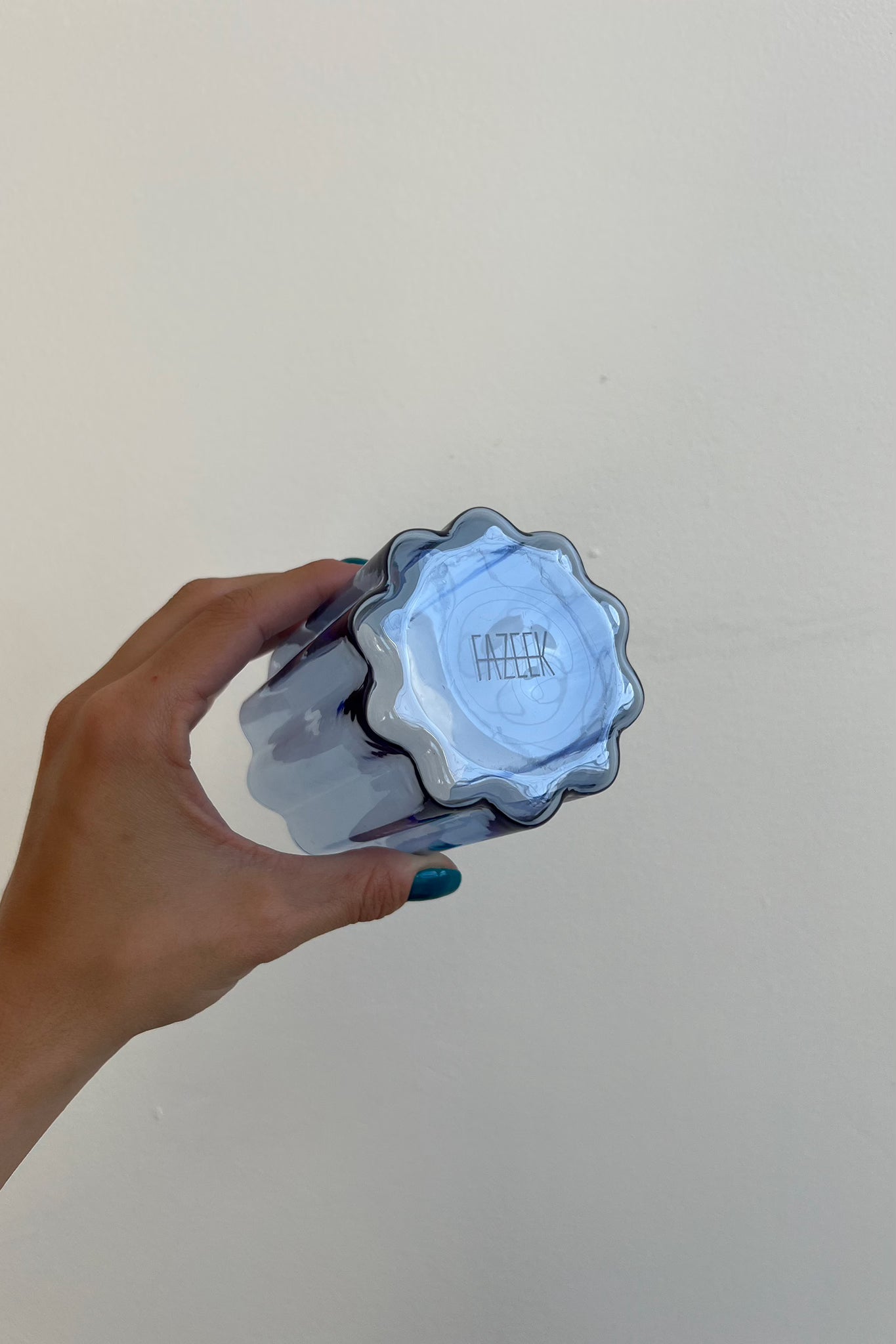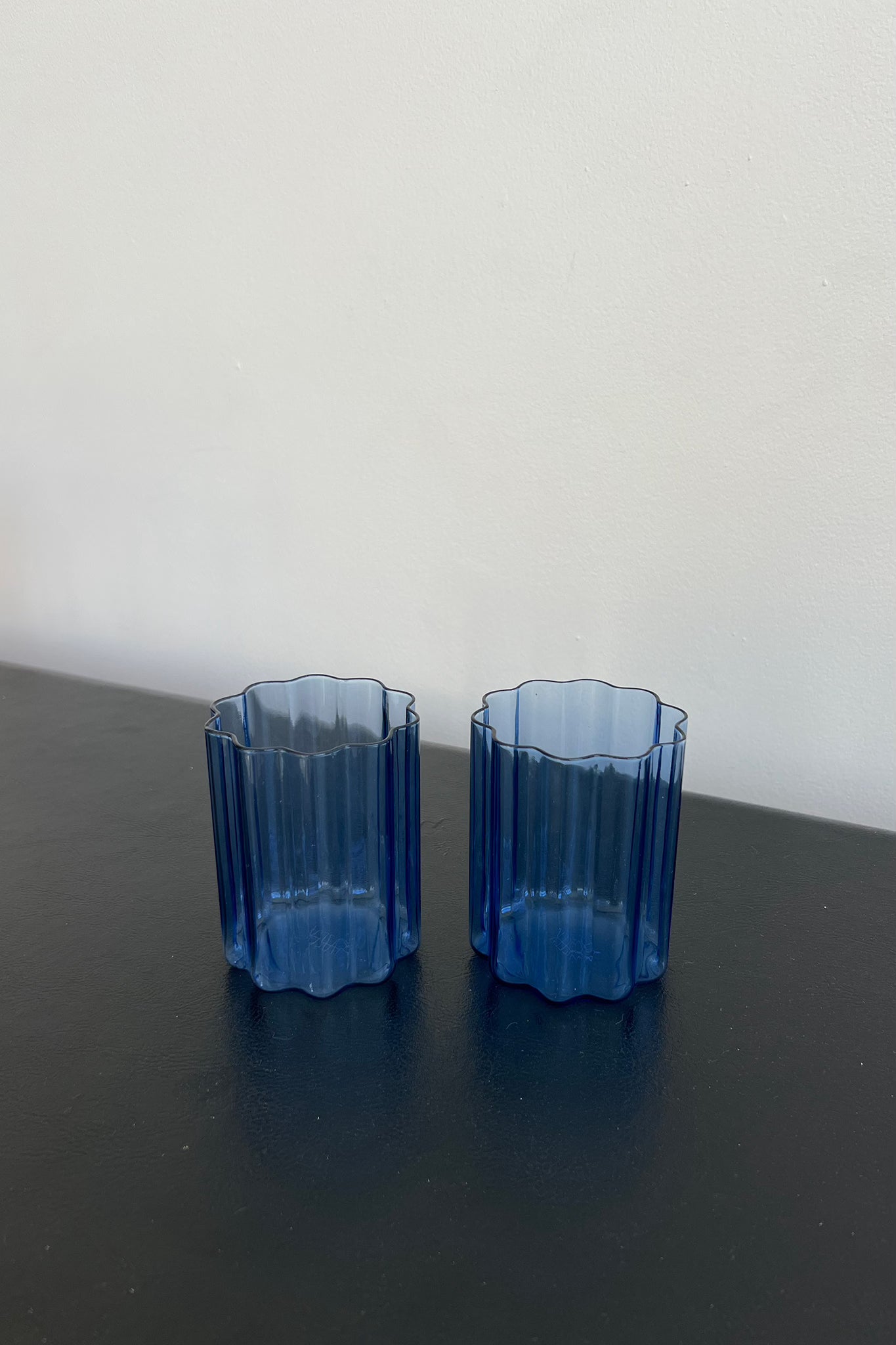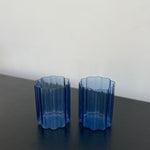 Ensemble de deux verres ondulés faits à la main de couleur bleue par Fazeek.