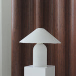 Grande lampe de table en verre unique, années 1960. Verre épais opaque de couleur gris pâle, motif à pois blancs, bord festonné sur l'abat-jour et chaînette avec détail en métal. Offre 4 réglages de lumière différents.