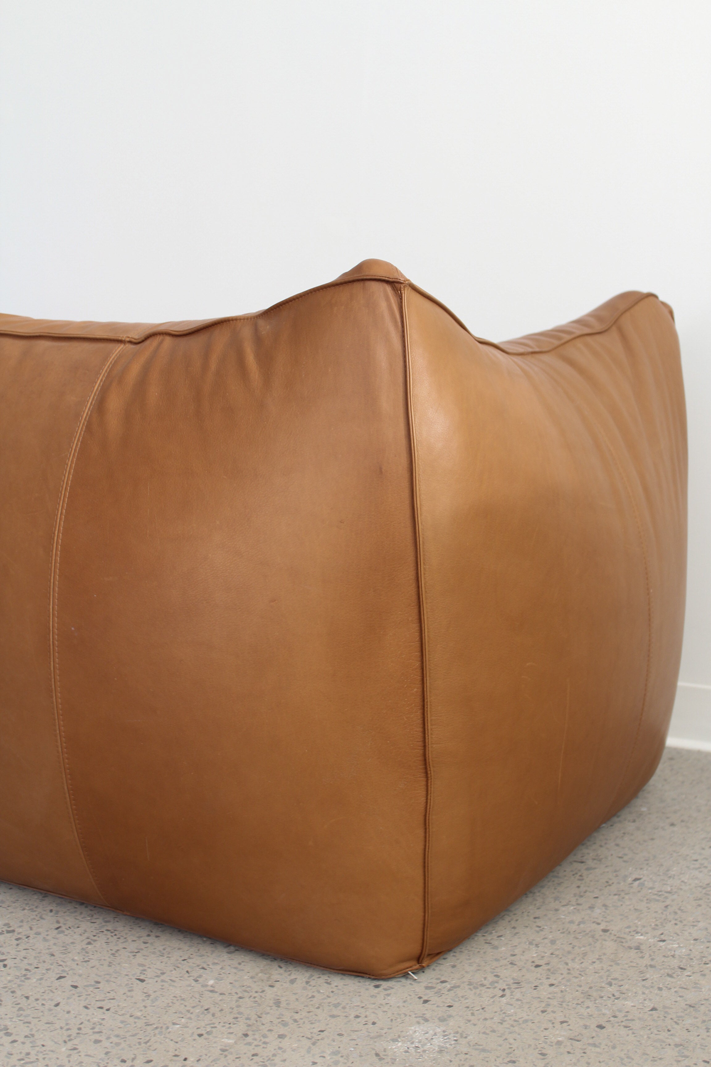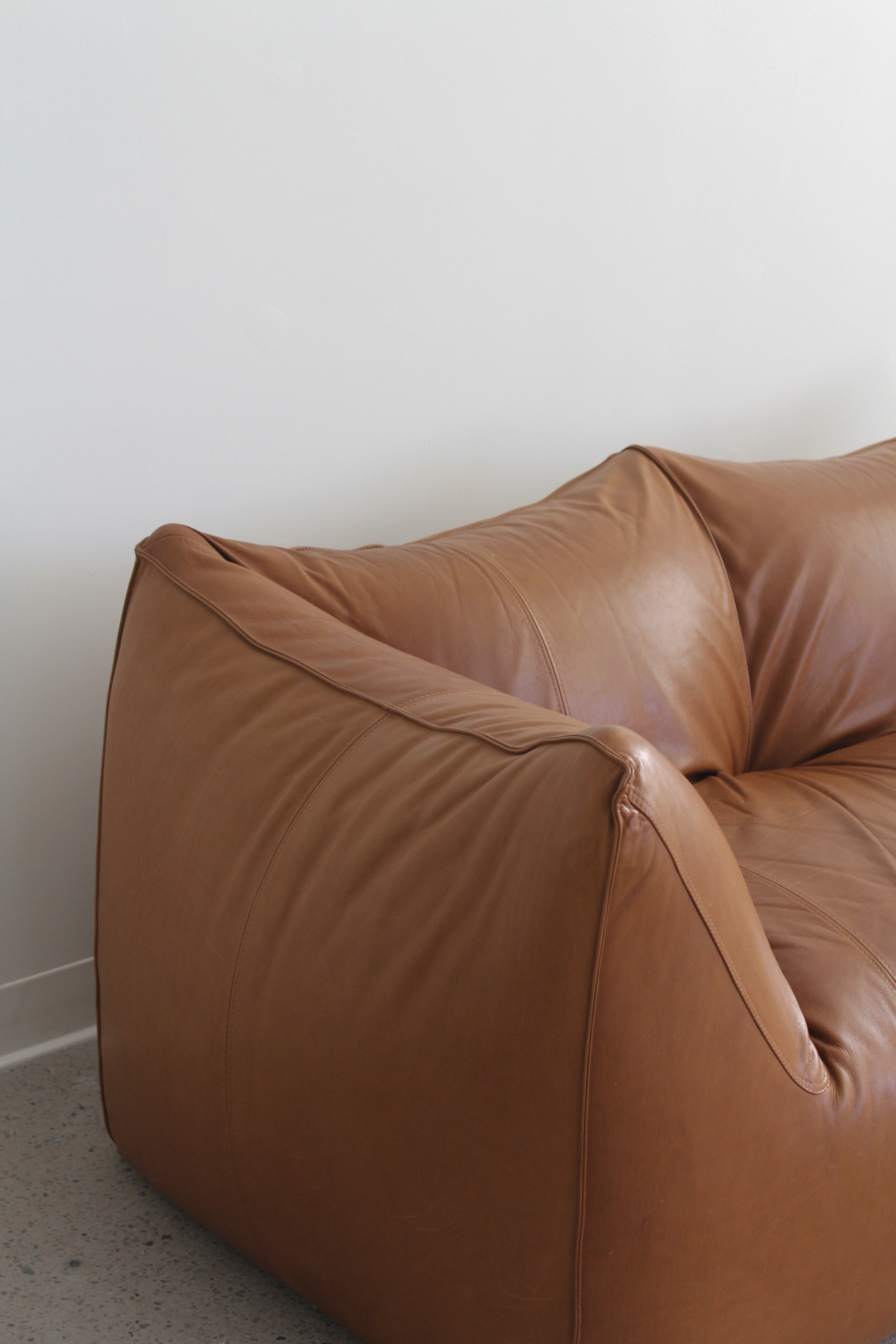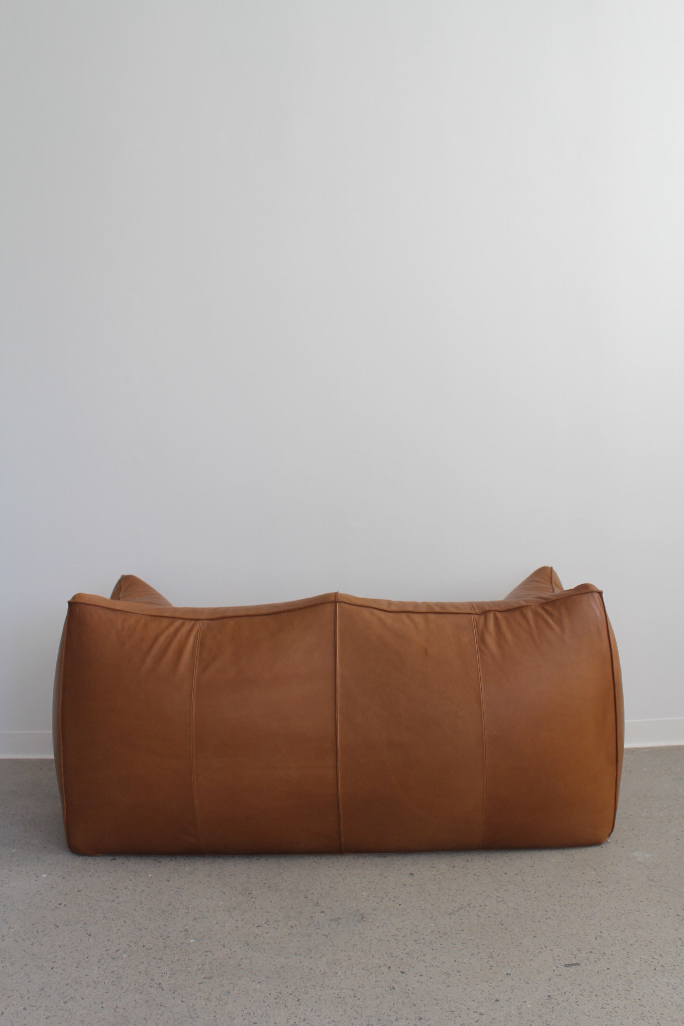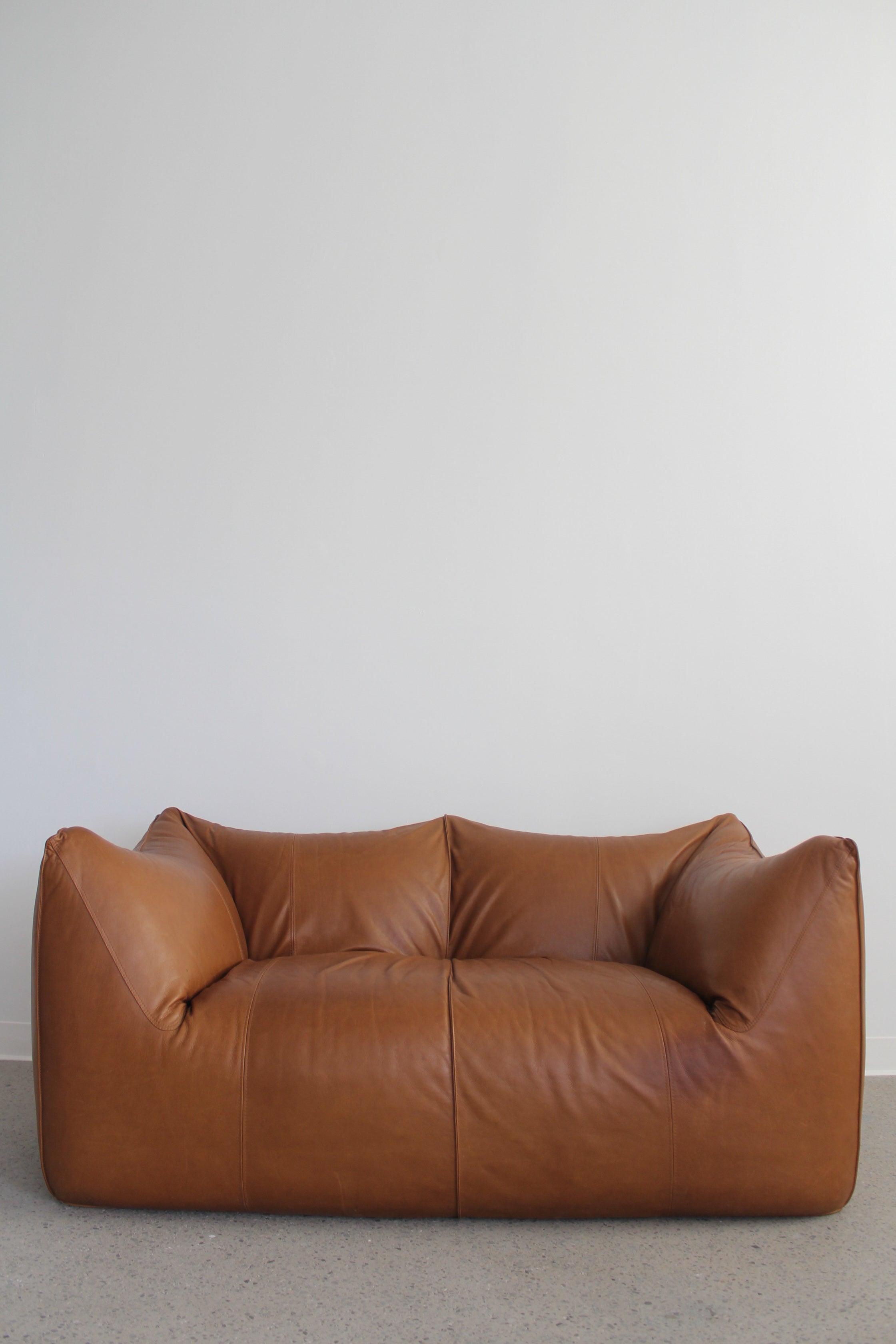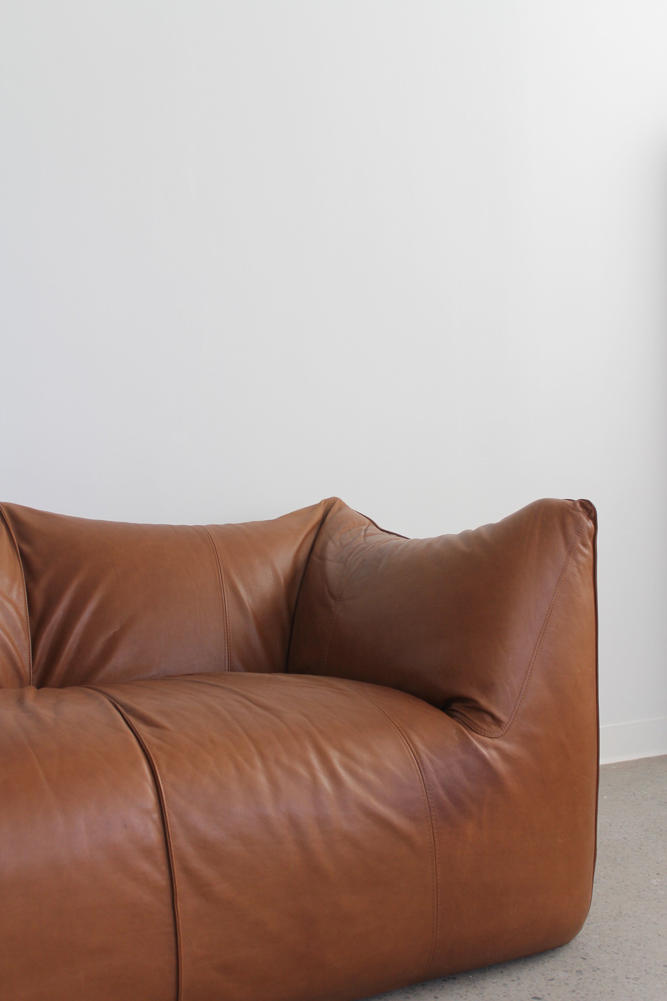 Causeuse Le Bambole par Mario Bellini pour B&B Italia, années 1970. Ce sofa iconique est réalisé en cuir de buffle brun épais – intérieur en mousse de polyuréthane avec structure métallique pour un confort maximal.