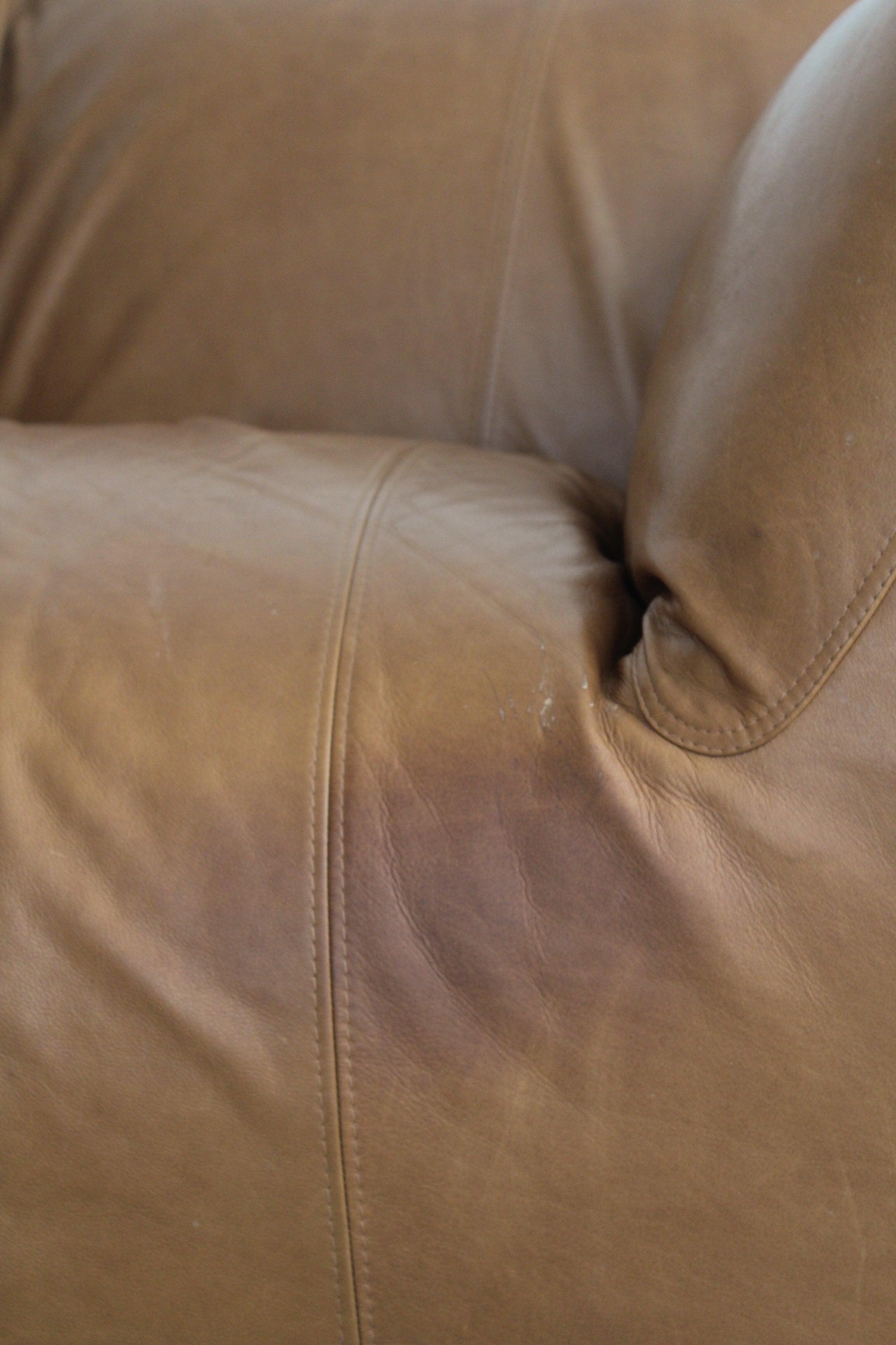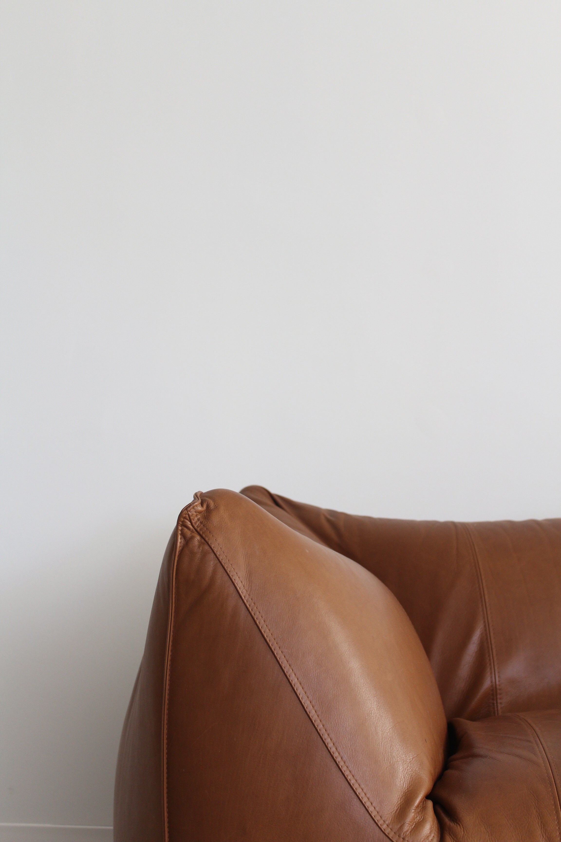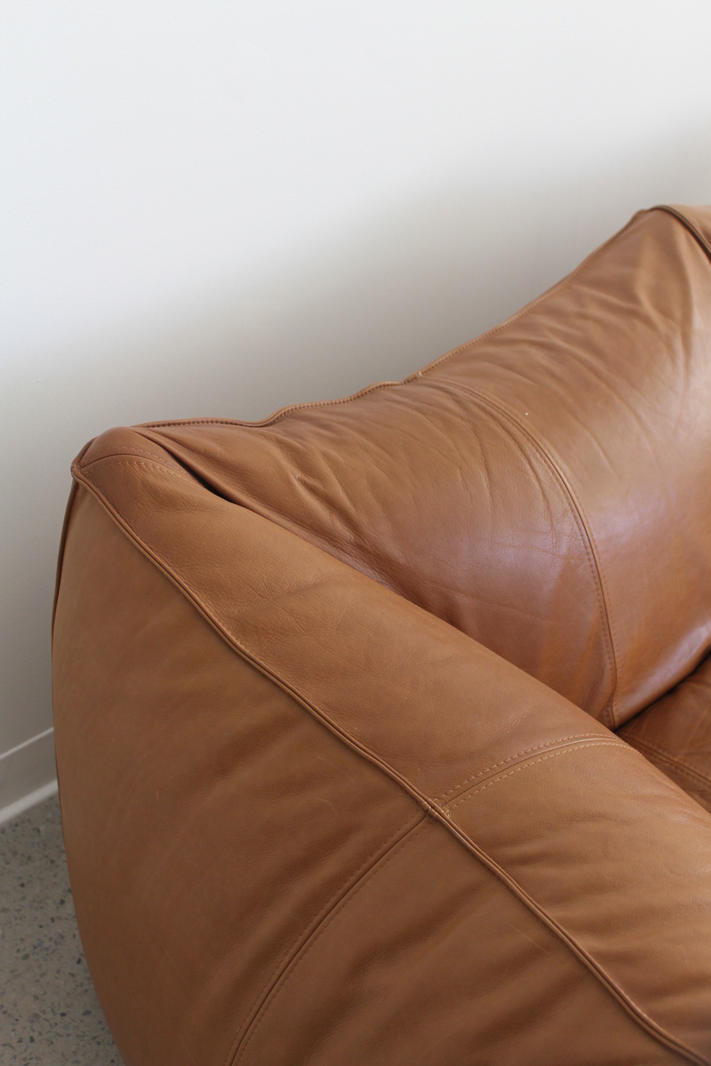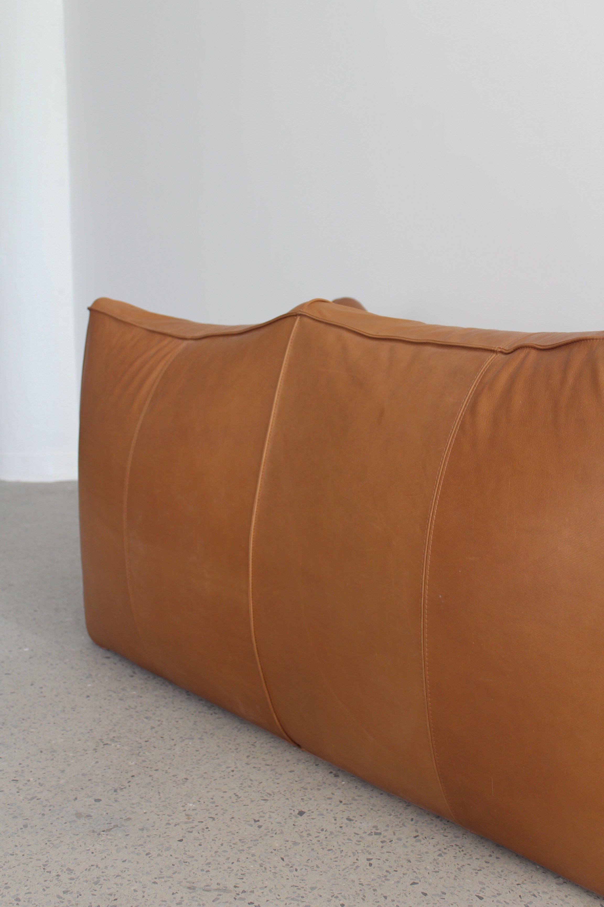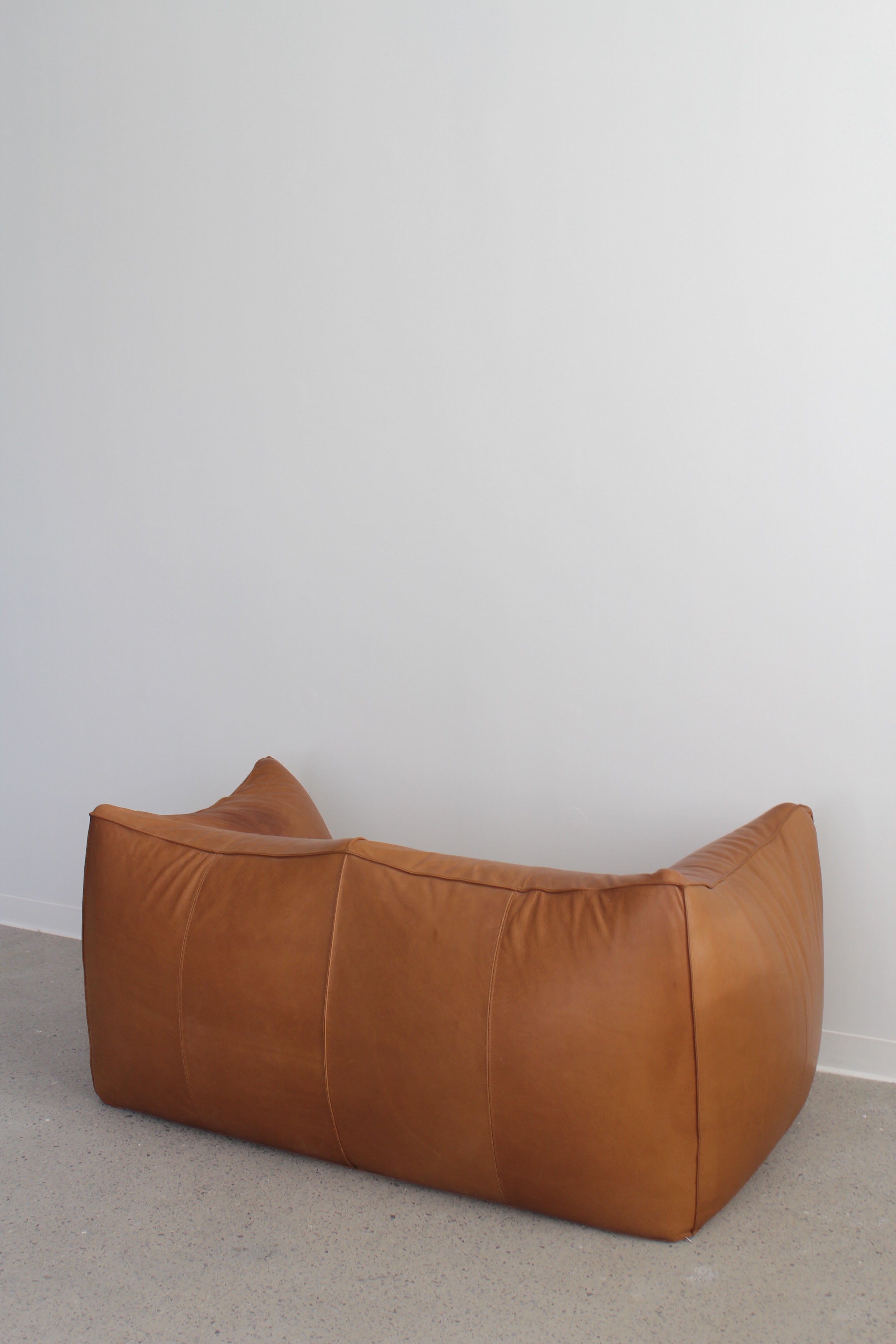 Causeuse Le Bambole par Mario Bellini pour B&B Italia, années 1970. Ce sofa iconique est réalisé en cuir de buffle brun épais – intérieur en mousse de polyuréthane avec structure métallique pour un confort maximal.