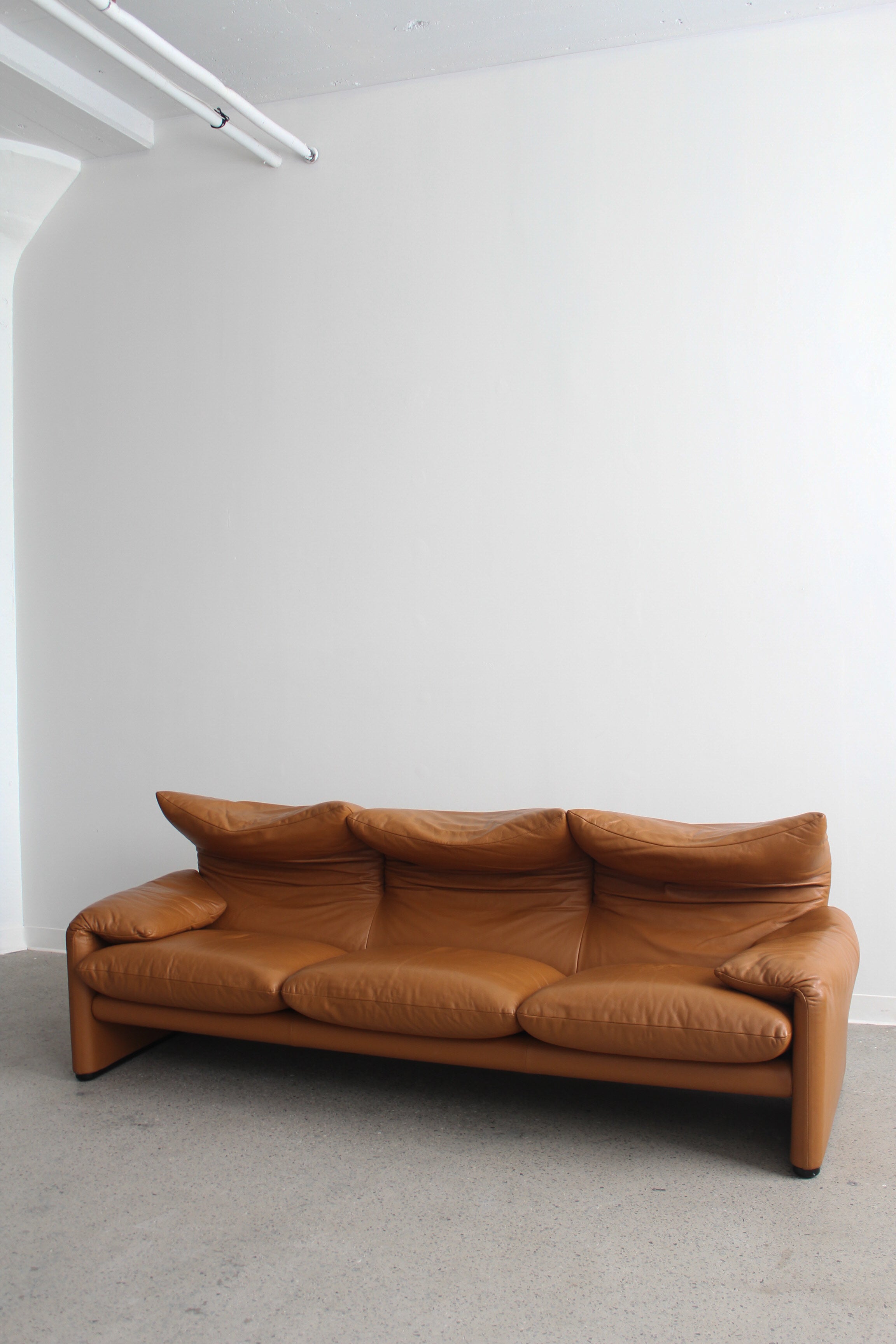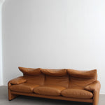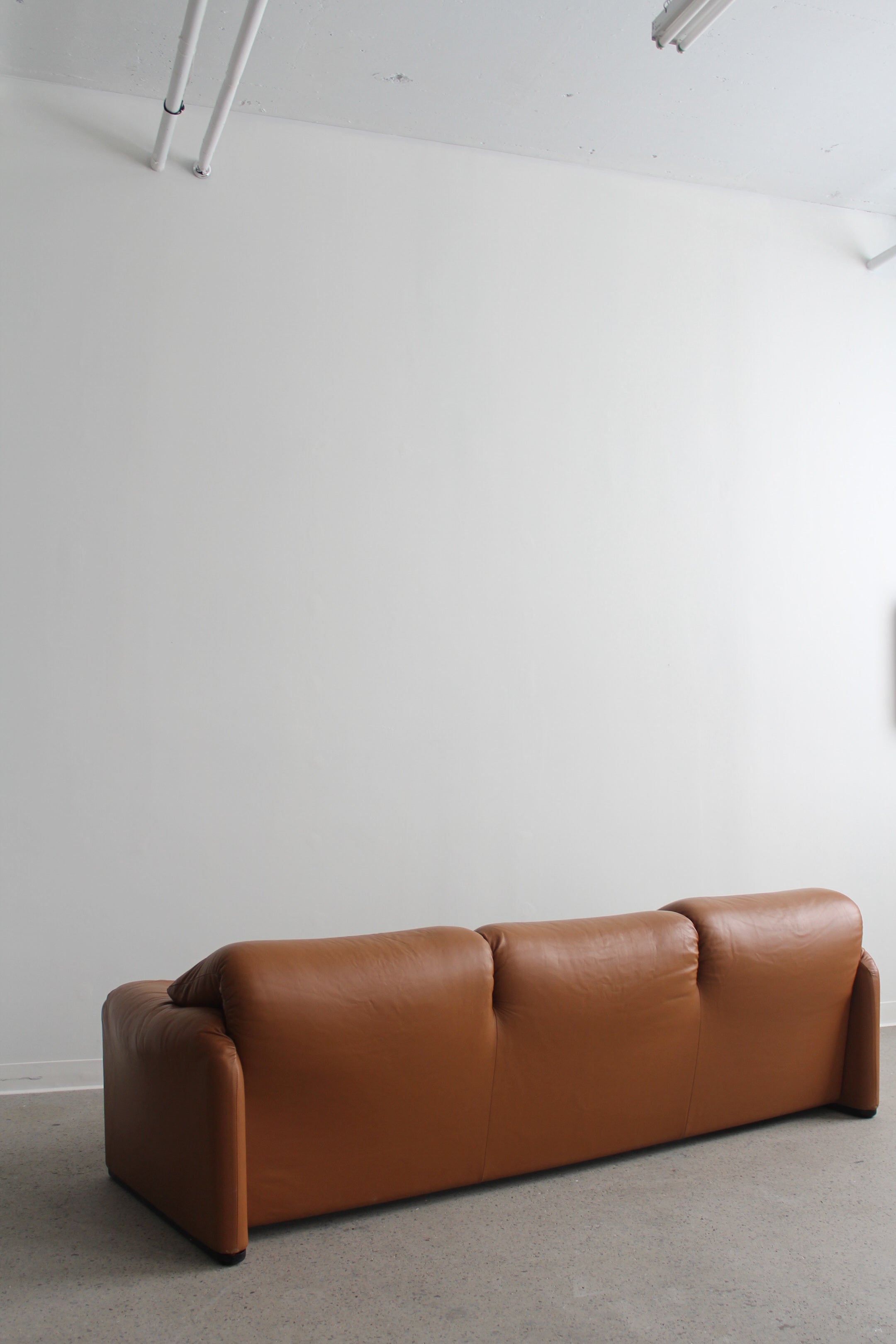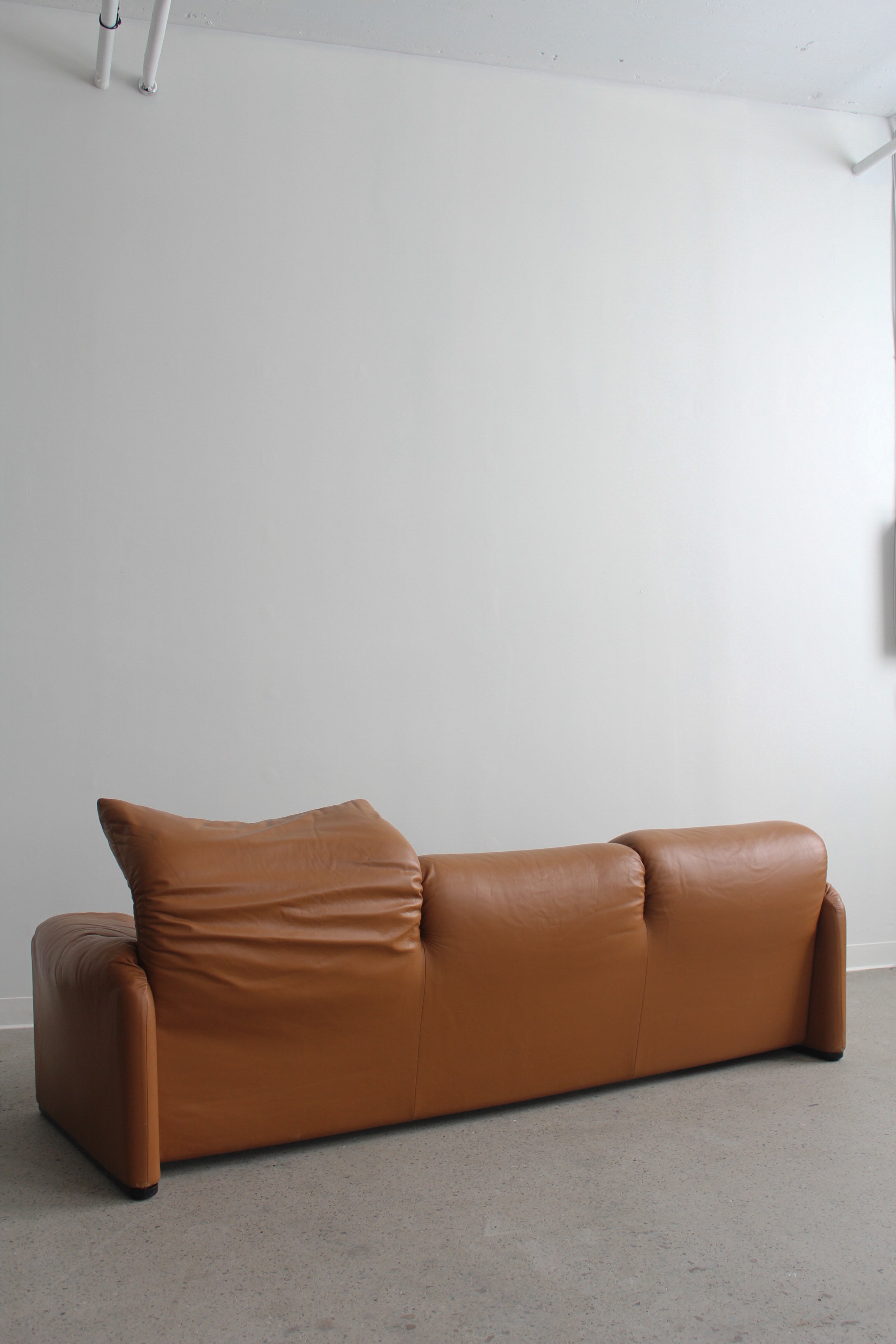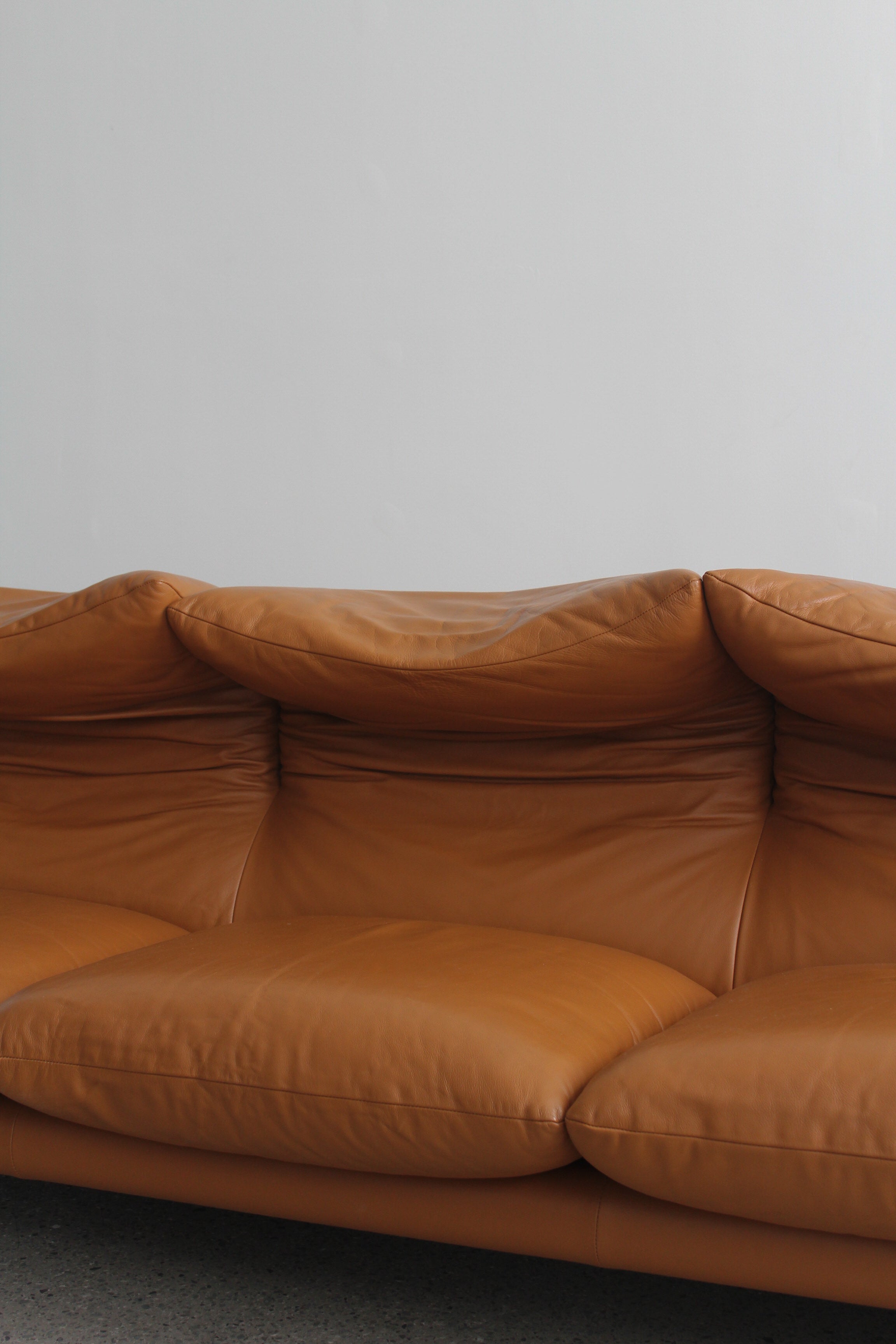 Canapé Maralunga par Vico Magistretti pour Cassina, années 1970. Canapé trois places avec dossier ajustable, en cuir couleur caramel d’origine.