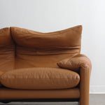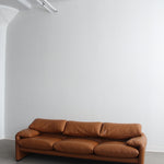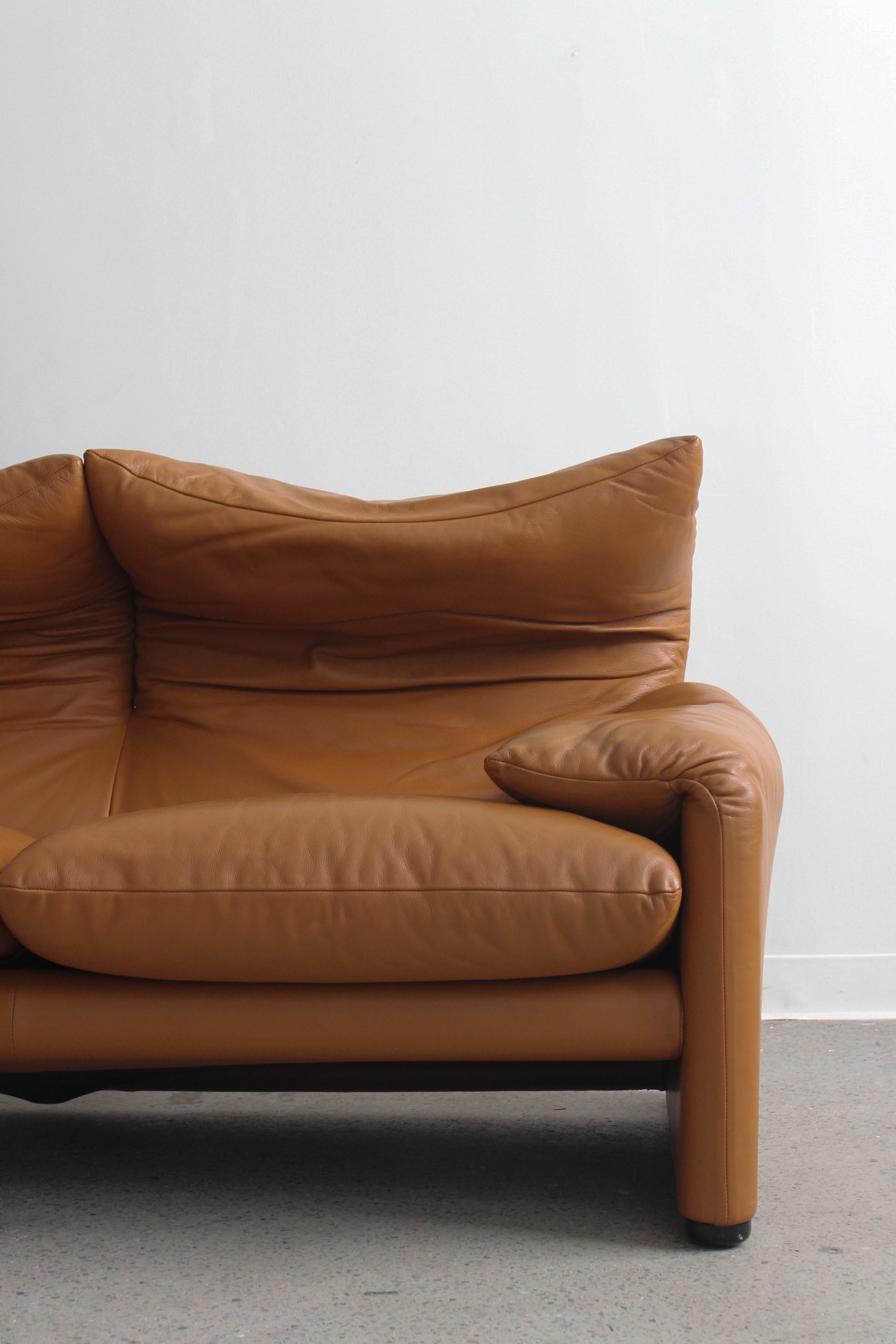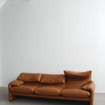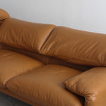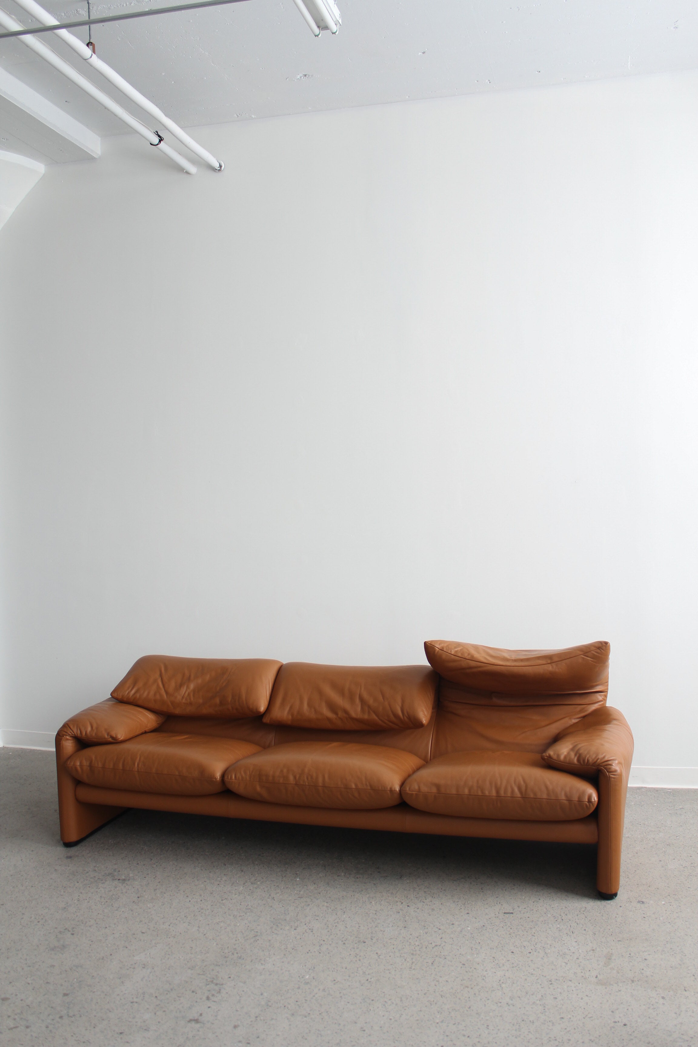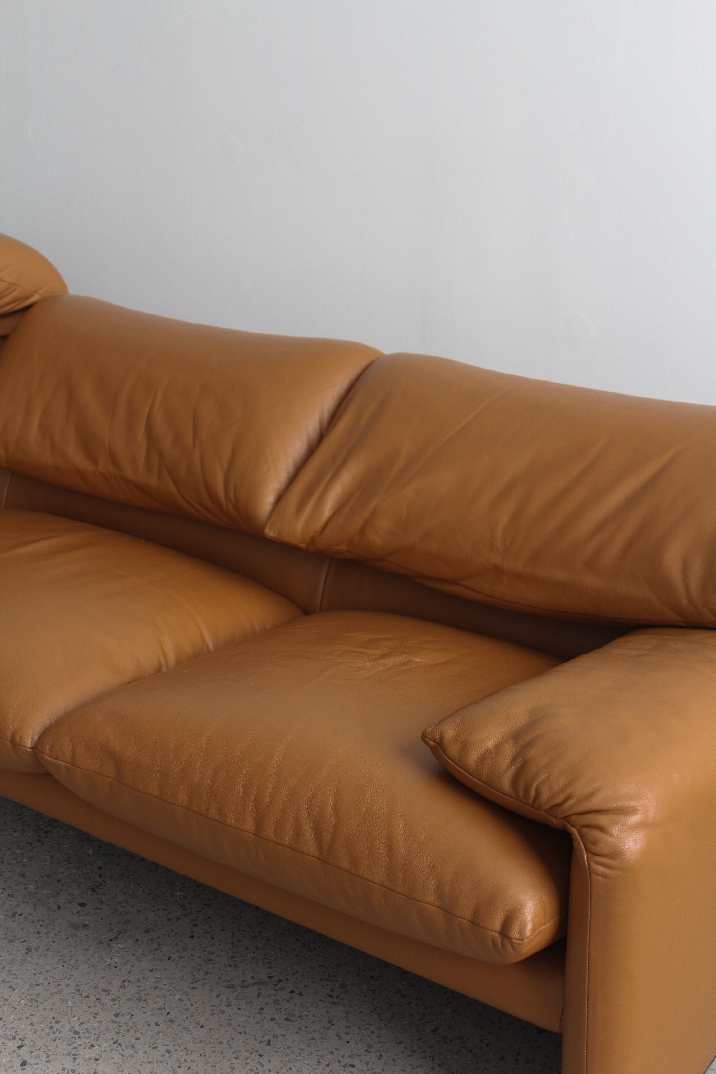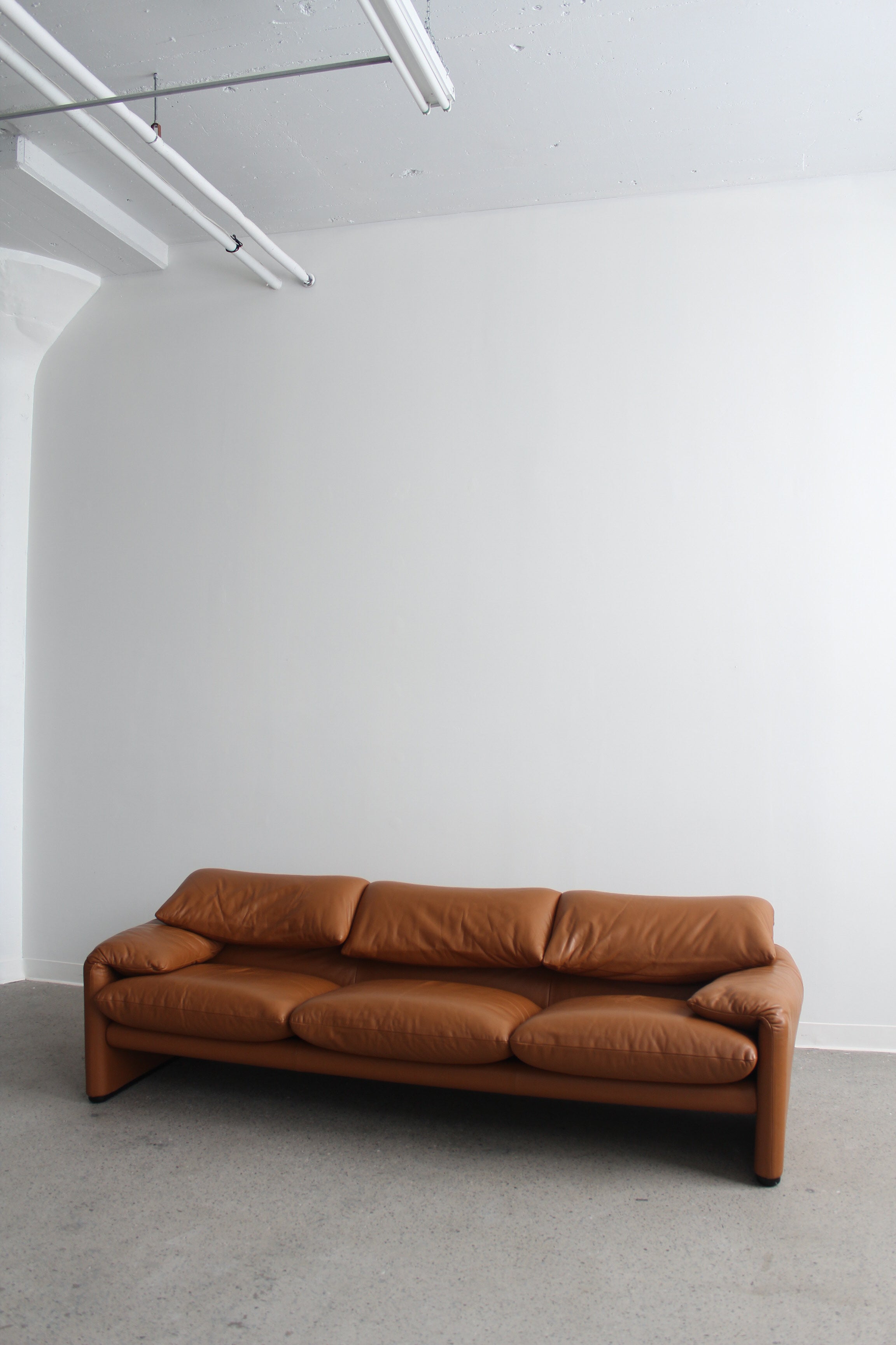 Canapé Maralunga par Vico Magistretti pour Cassina, années 1970. Canapé trois places avec dossier ajustable, en cuir couleur caramel d’origine.