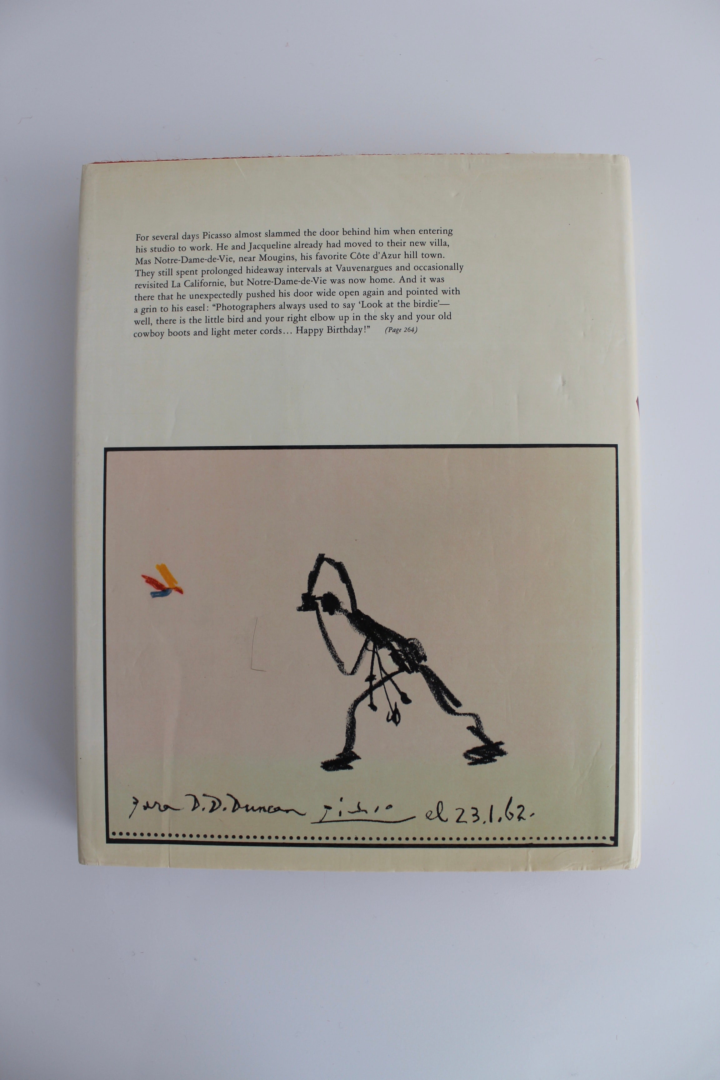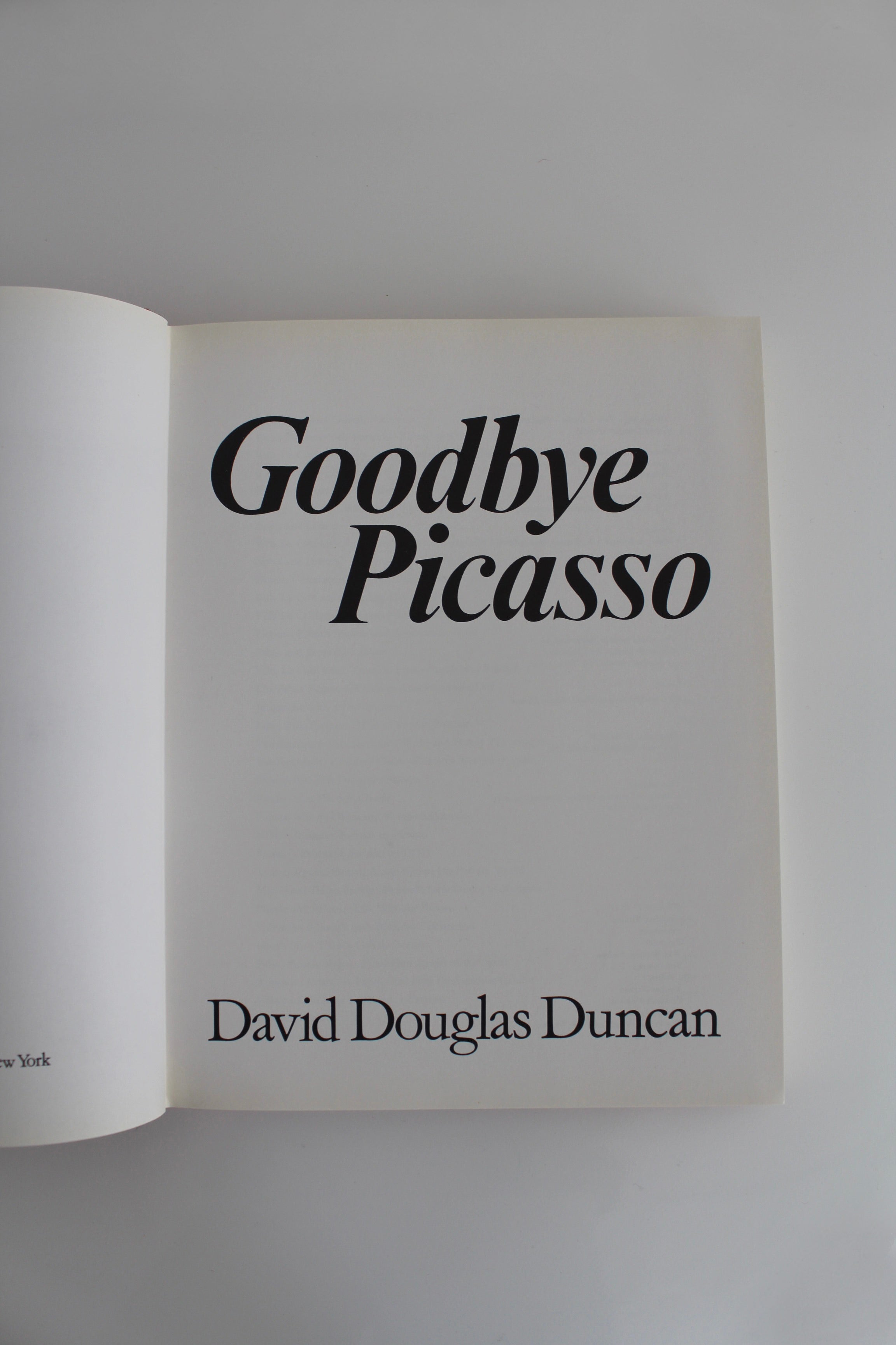 Première édition du livre Goodbye Picasso par David Douglas Duncan, 1974. Photographe et ami de l’artiste, David Douglas Duncan a conçu cet ouvrage en hommage à Picasso après sa mort en 1973. « Goodbye Picasso révèle la simplicité et le génie de la vie et de l’art de Picasso. Photographié, écrit, conçu et produit par Duncan avec une dévotion née d’expériences partagées profondément personnelles, Goodbye Picasso brille de cette qualité particulière propre à son univers. »