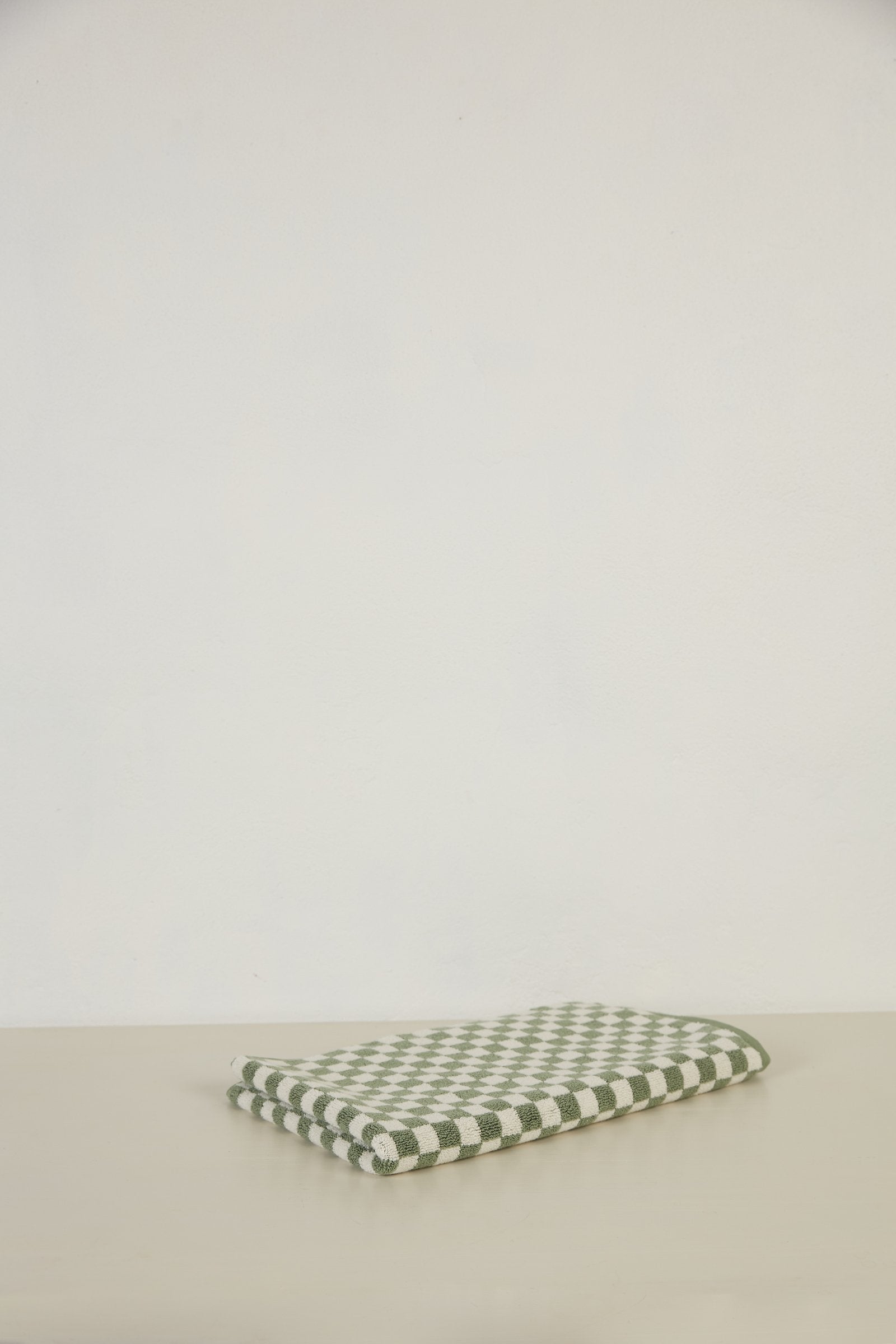 Motif à carreaux emblématique de la marque Baina, avec un jeu de couleurs réversible. Le vert sauge délicat contrastant avec le blanc crée une touche subtile dans n'importe quelle salle de bain.
