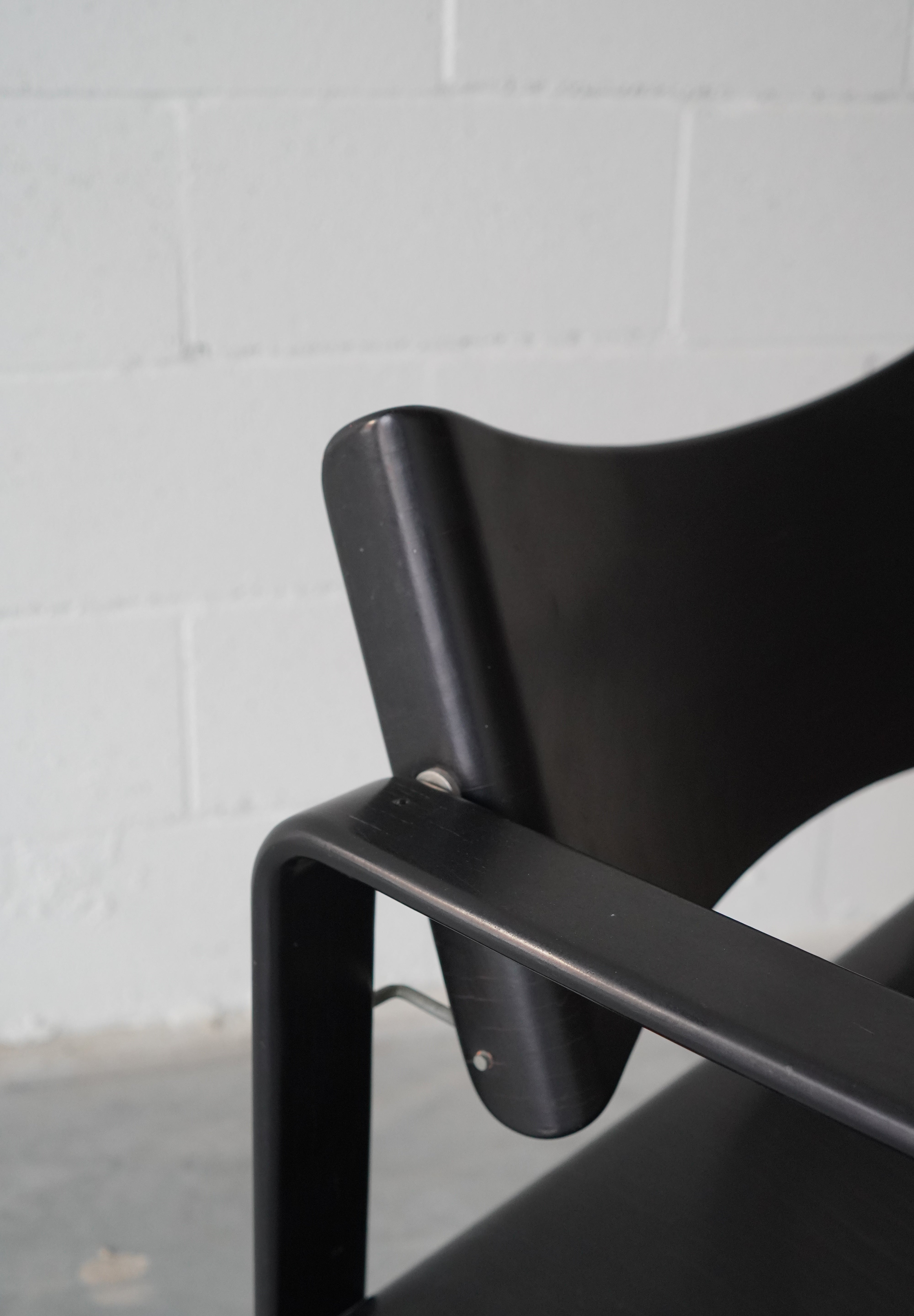 Series 271F Armchair by Verner Panton for Thonet, made in Germany, 1965. Made of bent and lacquered FSC-certified birch plywood, making this chair extremely light while offering a structured design. Original Thonet label on underside.