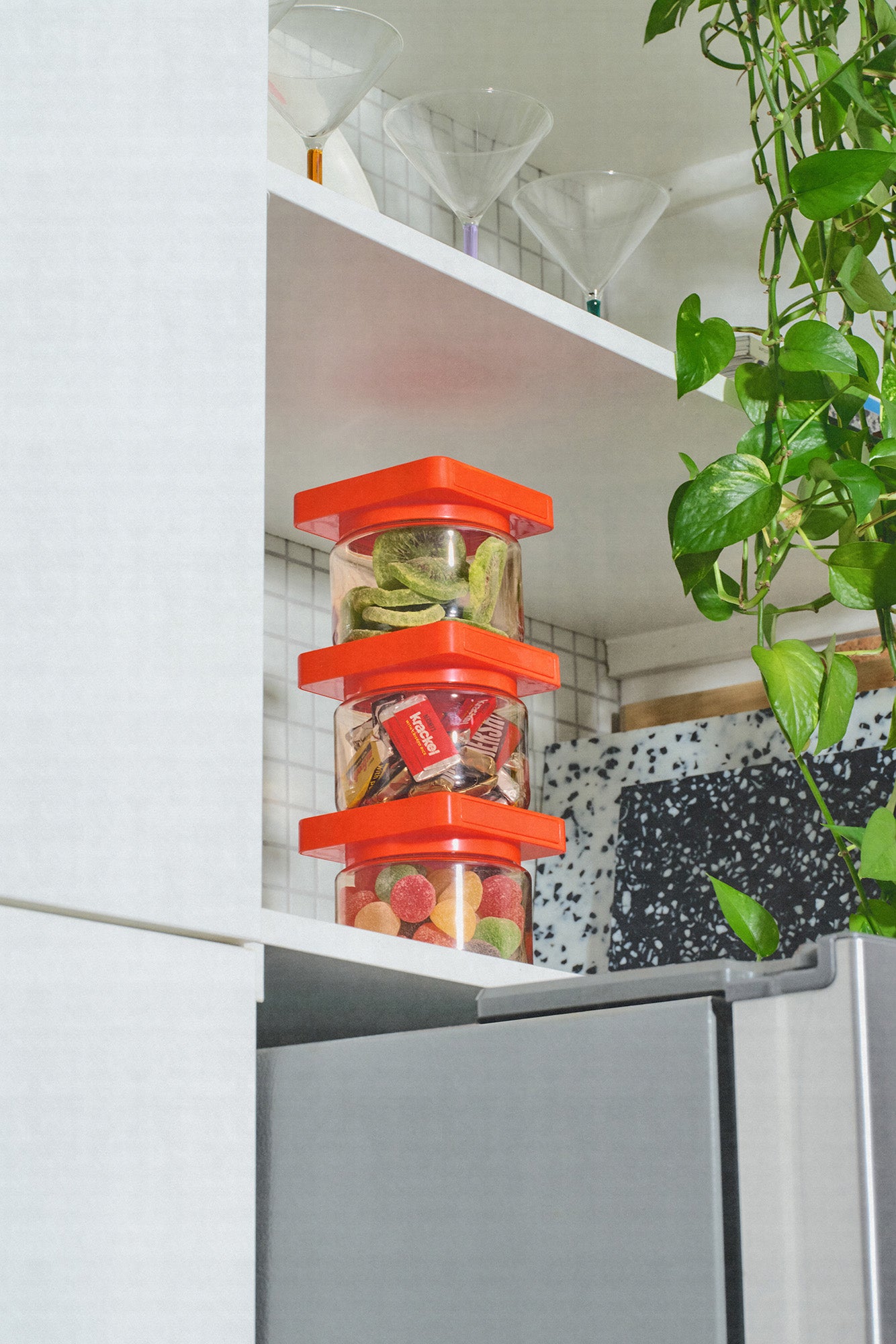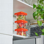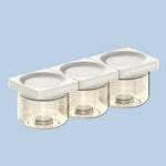 Ensemble Small 3-Pack par Cliik. Organisateurs de cuisine fabriqués en plastique Tritan® ultra résistant et sans BPA, avec système magnétique empilable breveté et étiquetage interchangeable.