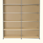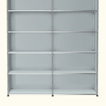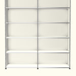 Unité de rangement ouverte versatile à cinq niveaux qui trouve sa place autant à la maison qu’au bureau. Le système USM Haller est composé de panneaux en acier thermolaqué et d’une structure en acier chromé. Certifié GREENGUARD et Cradle to Cradle®.