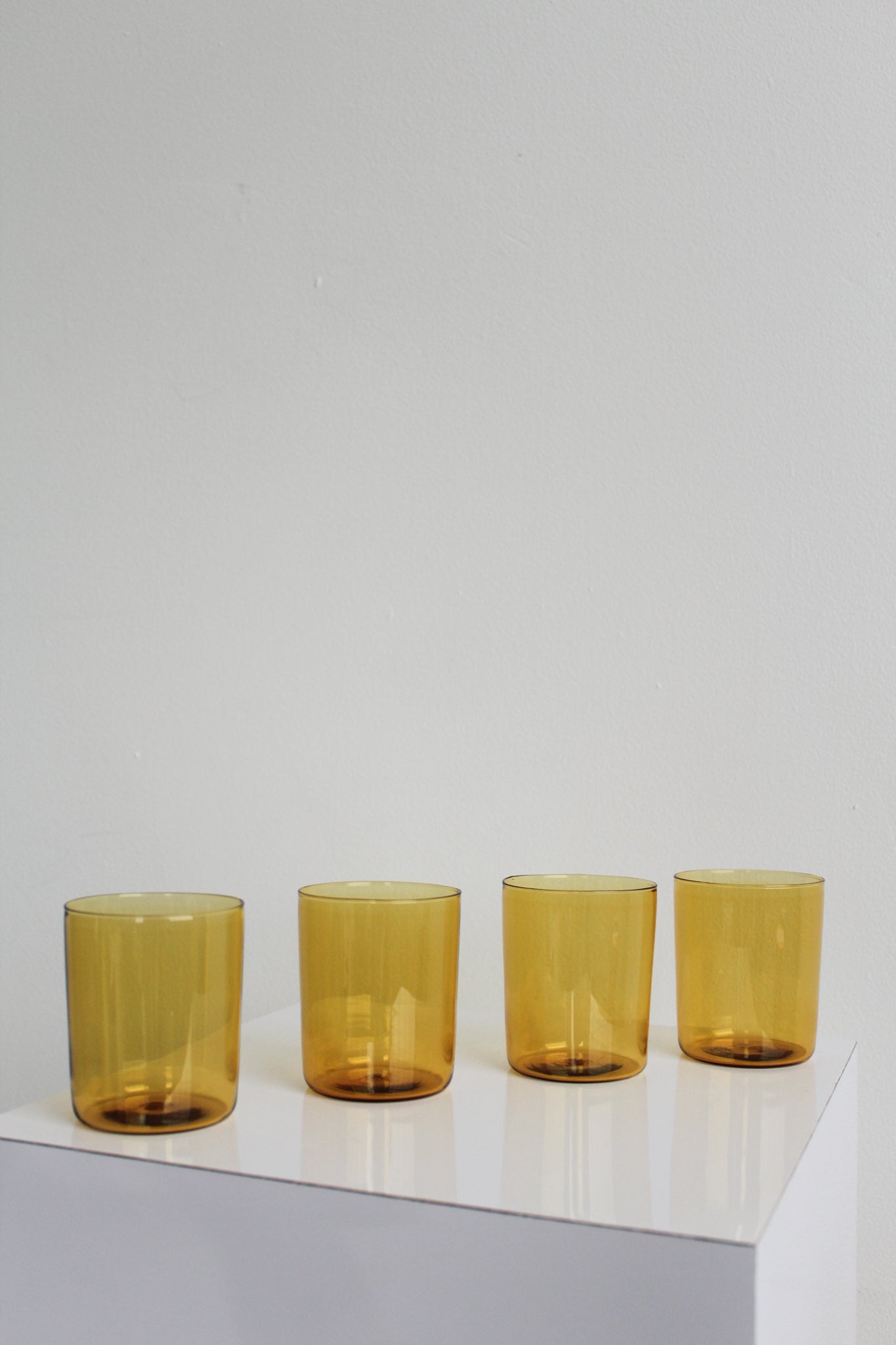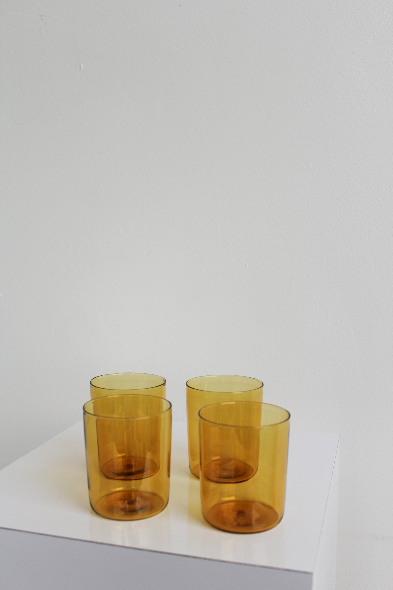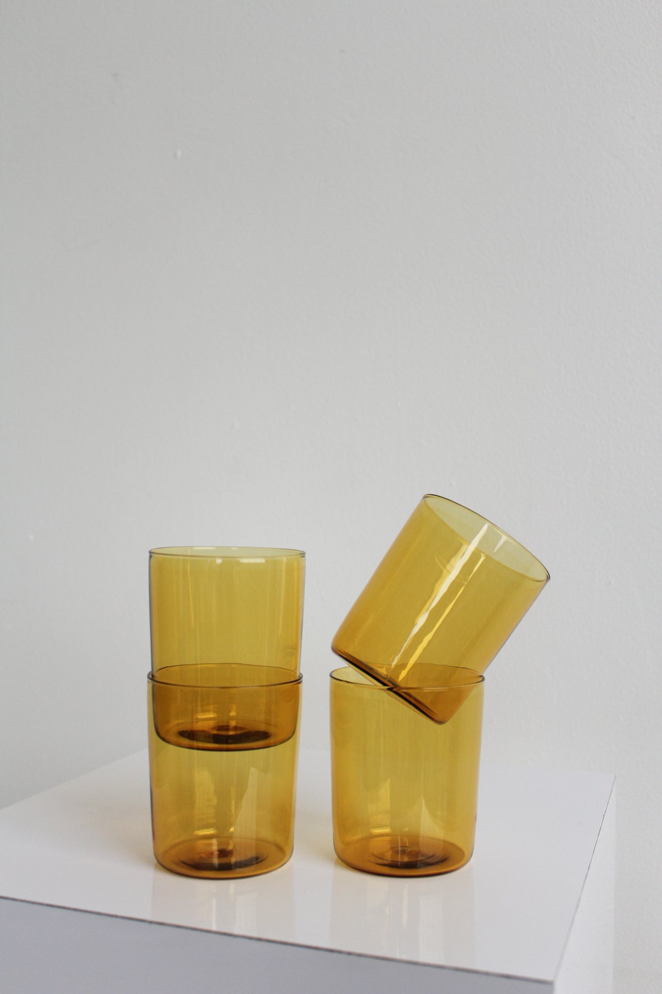 Ensemble de quatre gobelets en verre miel de Maison Balzac.