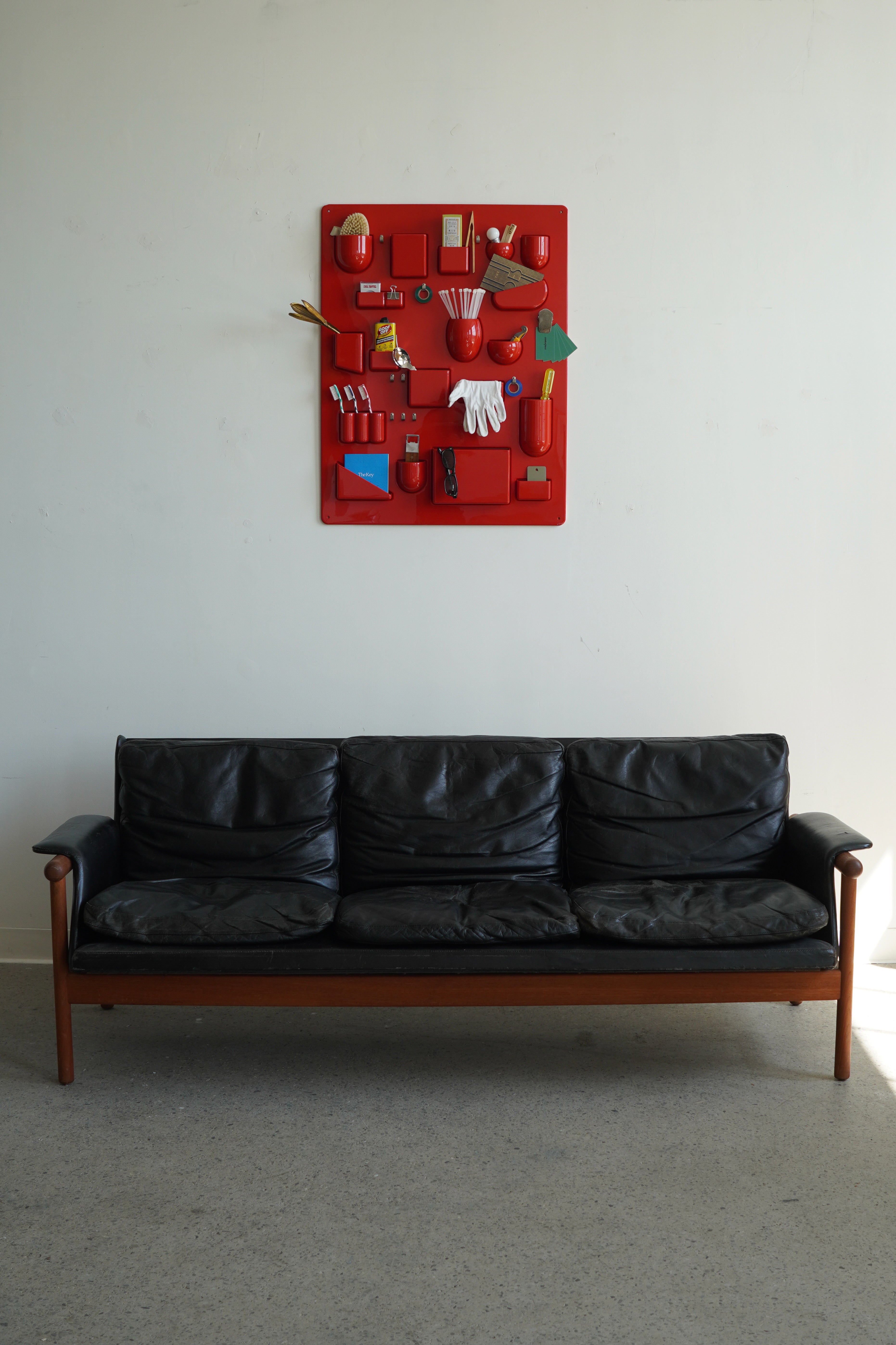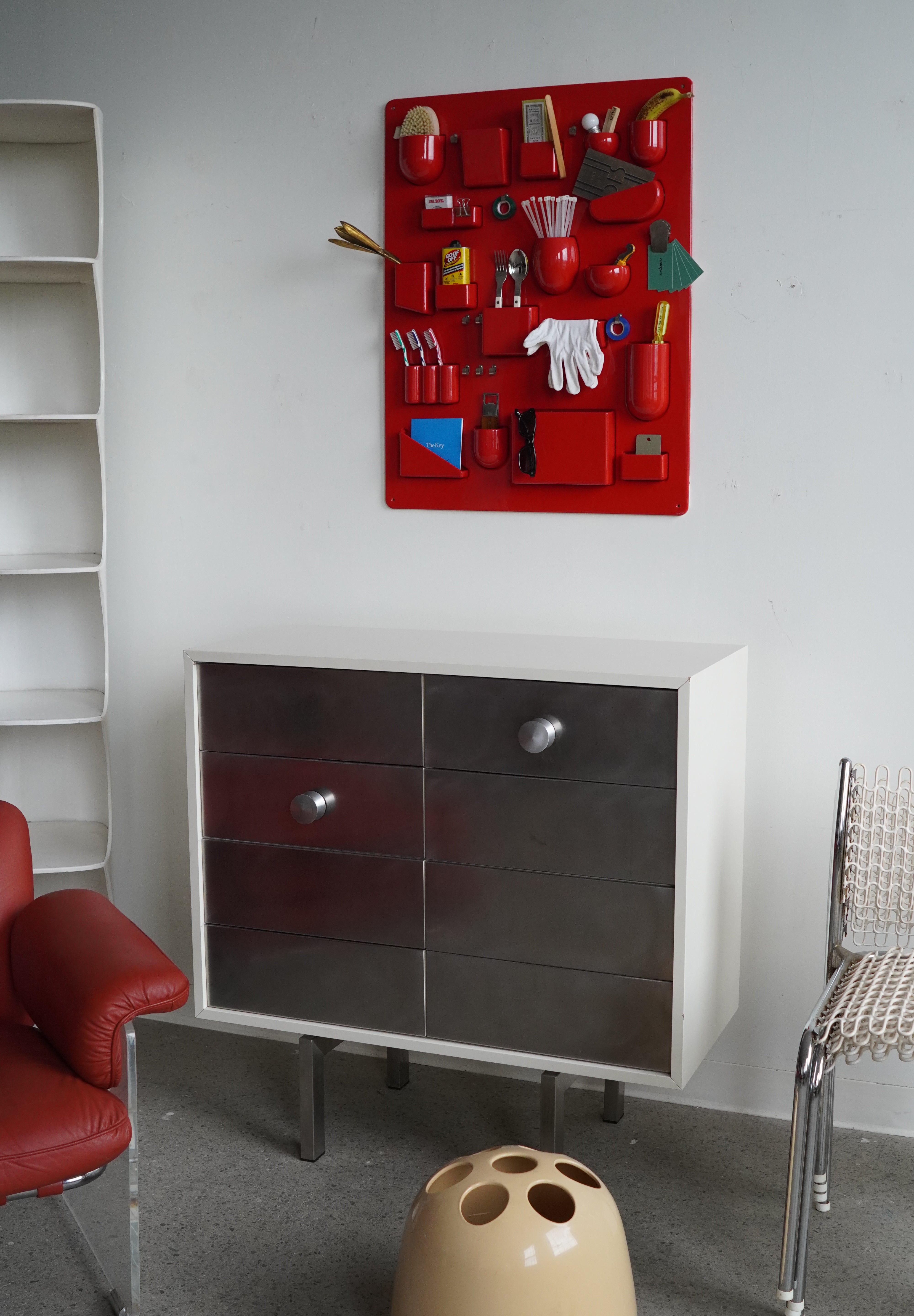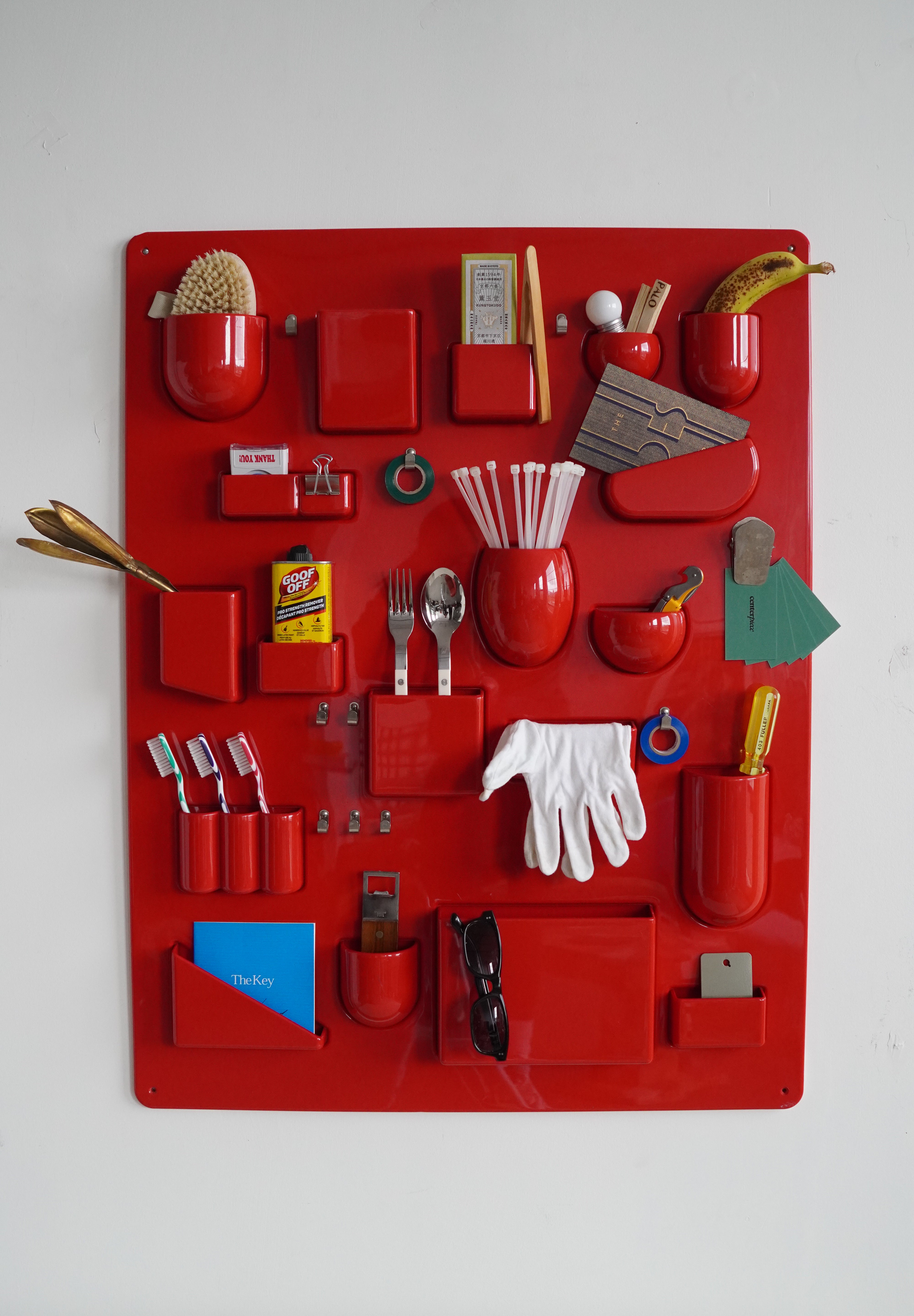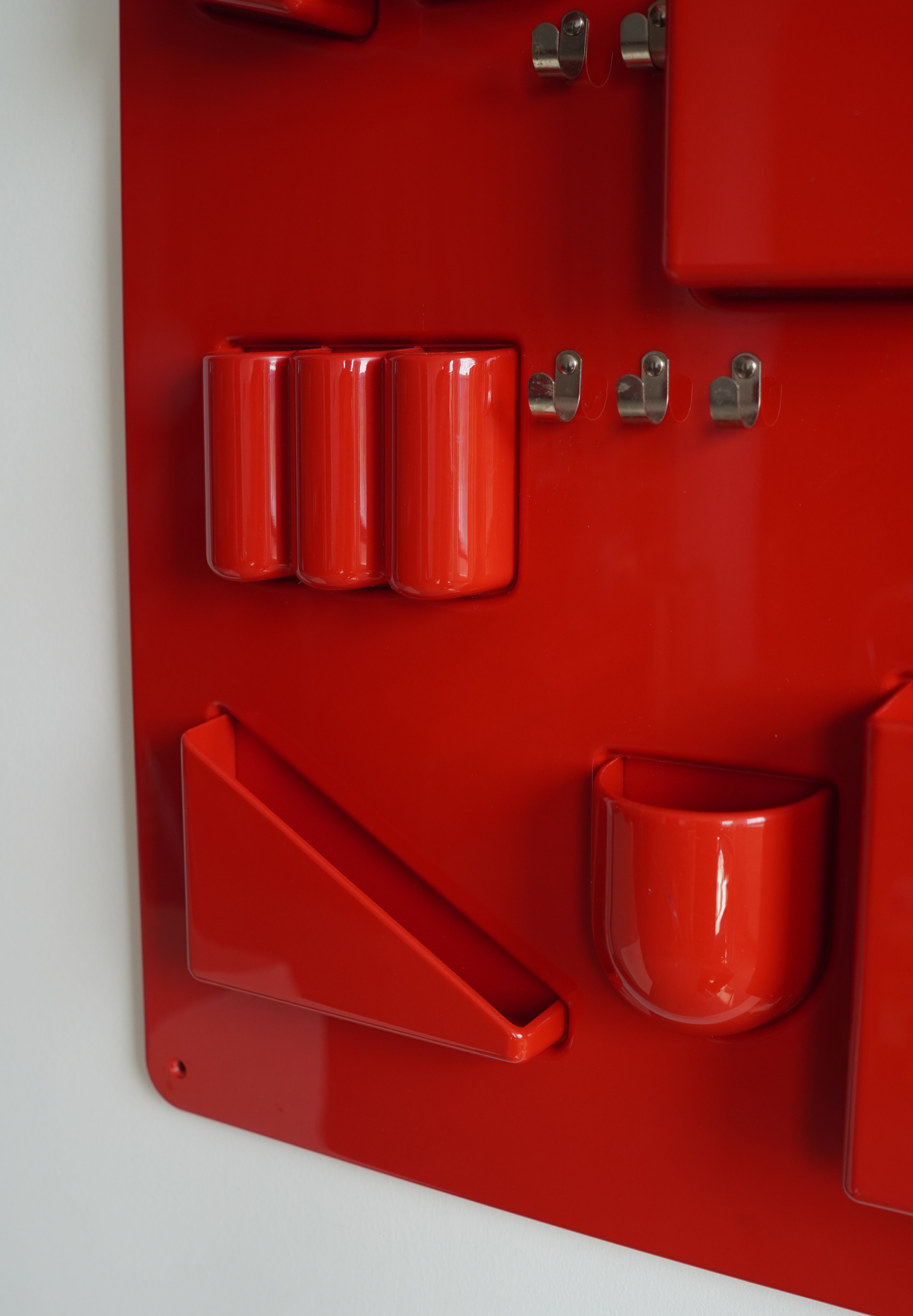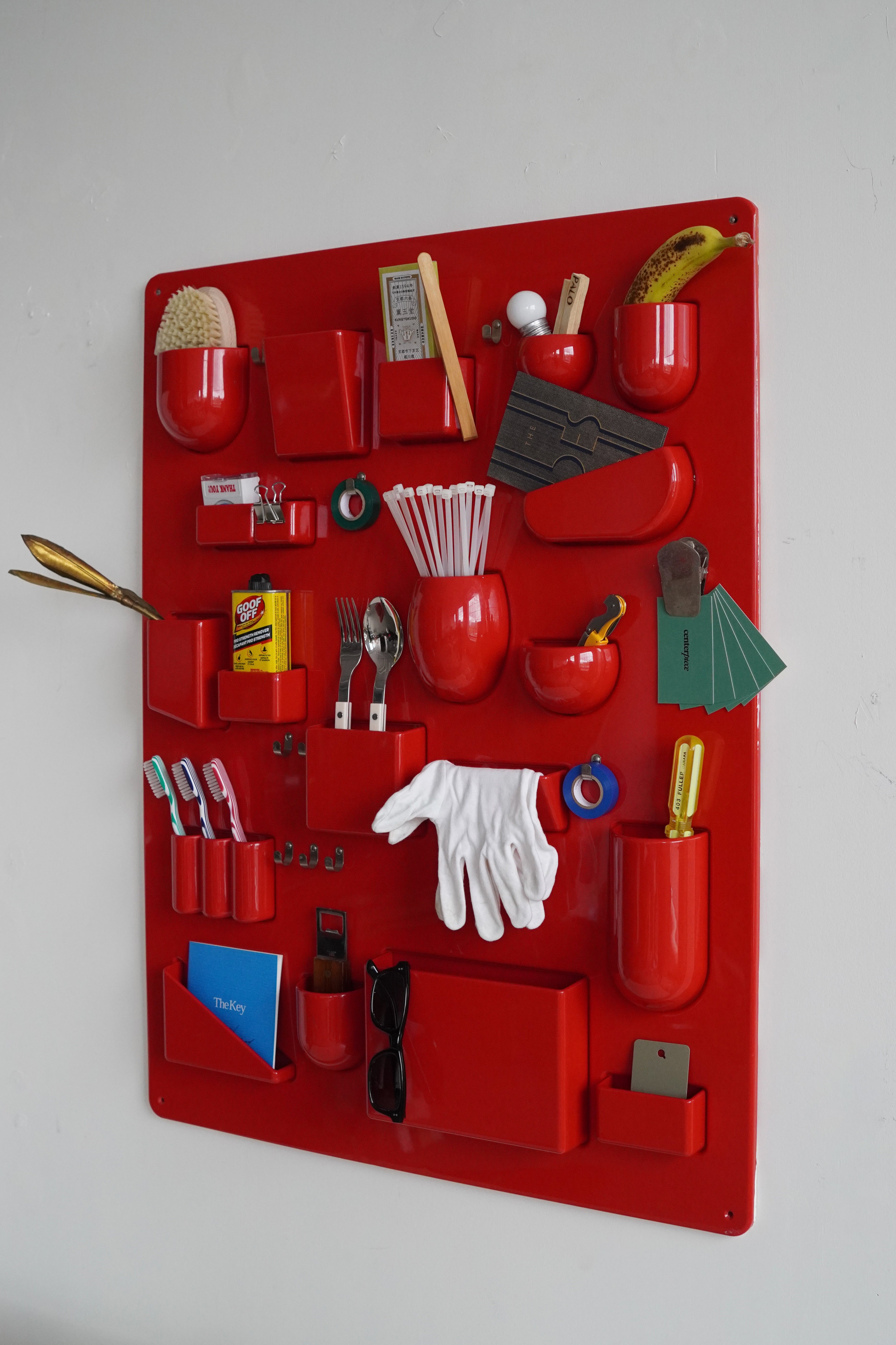 Grand organisateur mural Uten.Silo par Dorothee Maurer-Becker pour Design M, fabriqué en Allemagne, années 1970. Moulé en ABS rouge avec crochets en métal nickelé. Cet organisateur aux nombreux compartiments et crochets est à la fois fonctionnel et une pièce de design inventive.