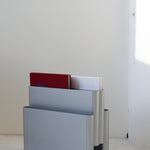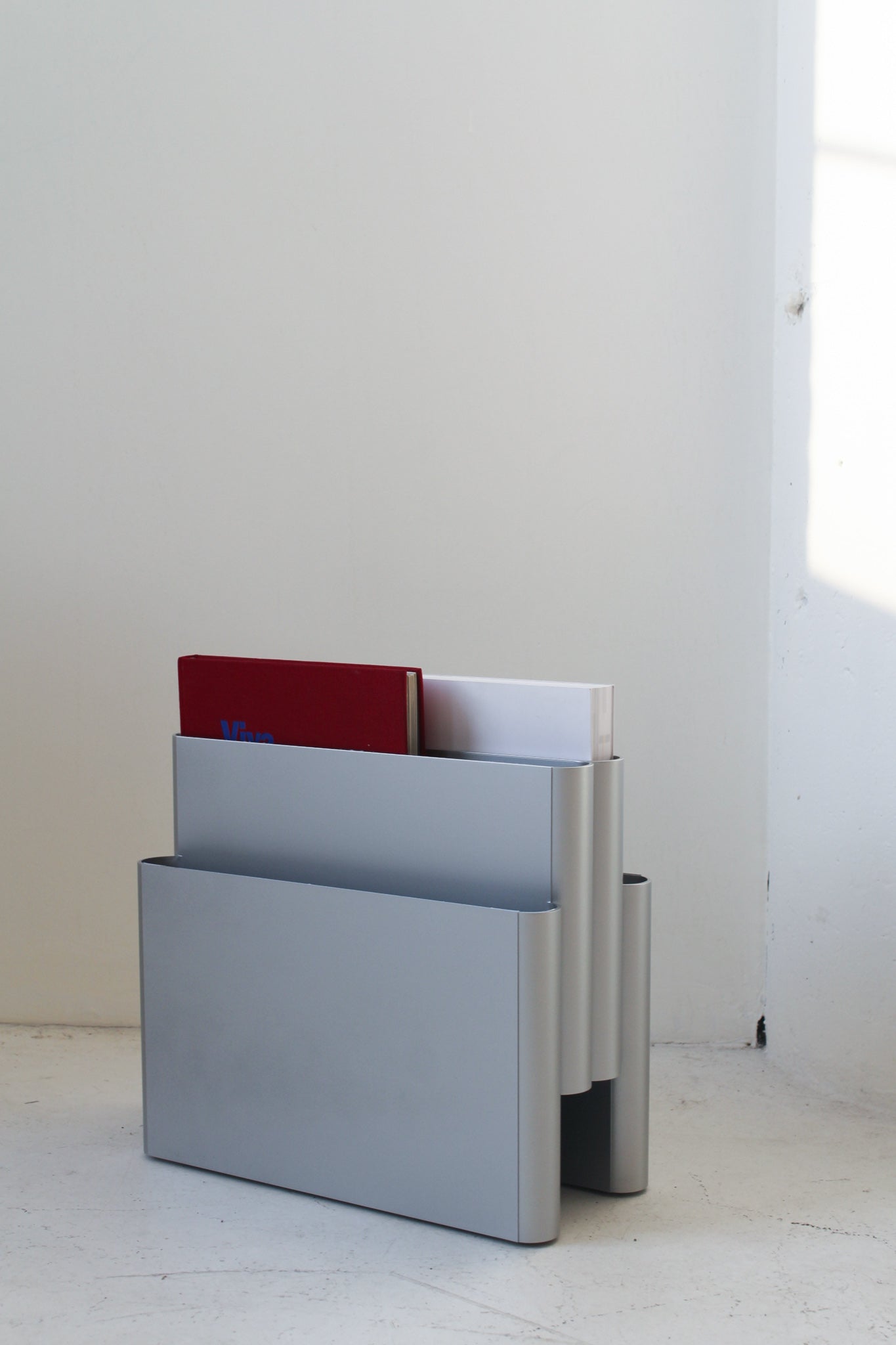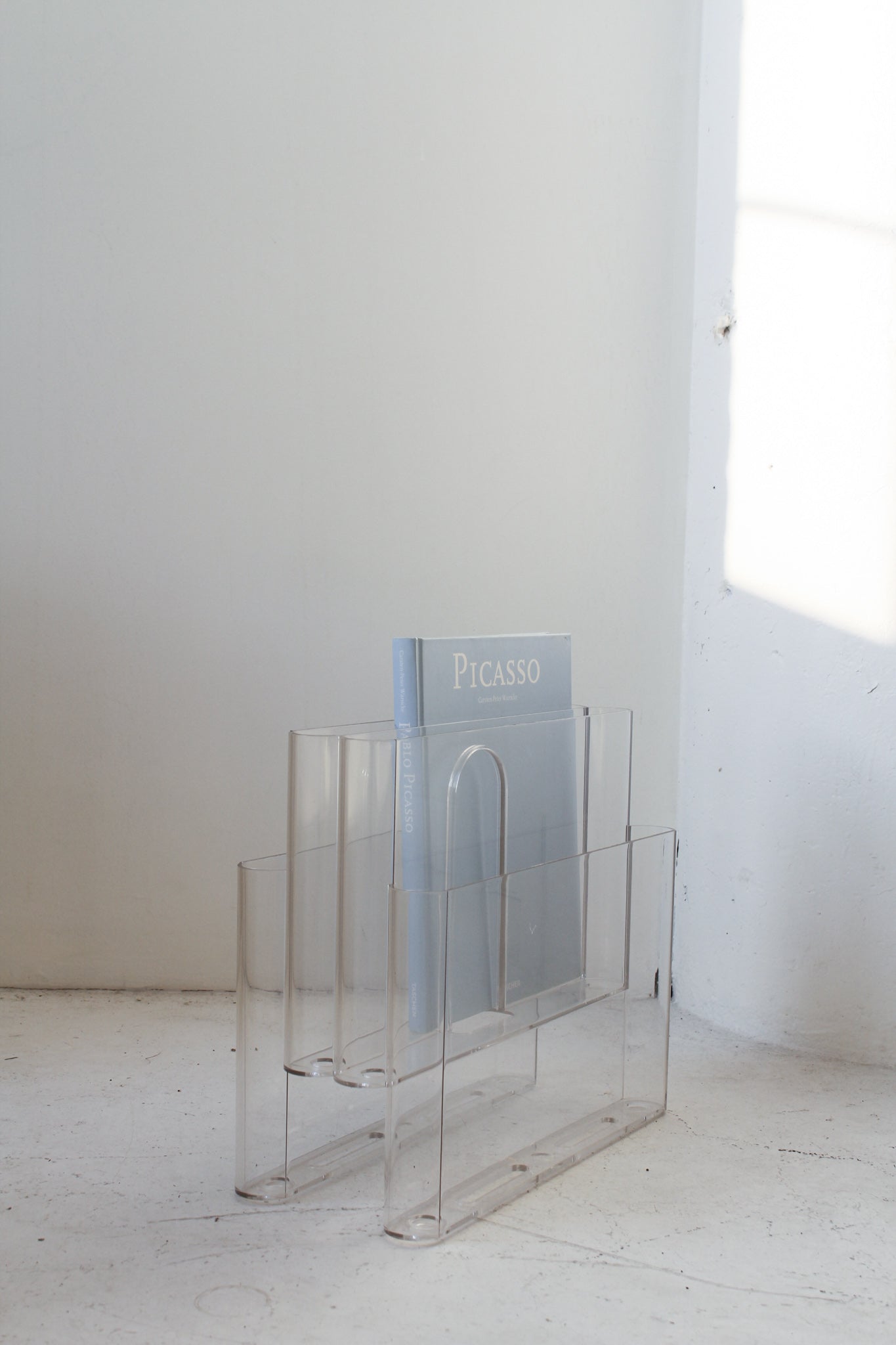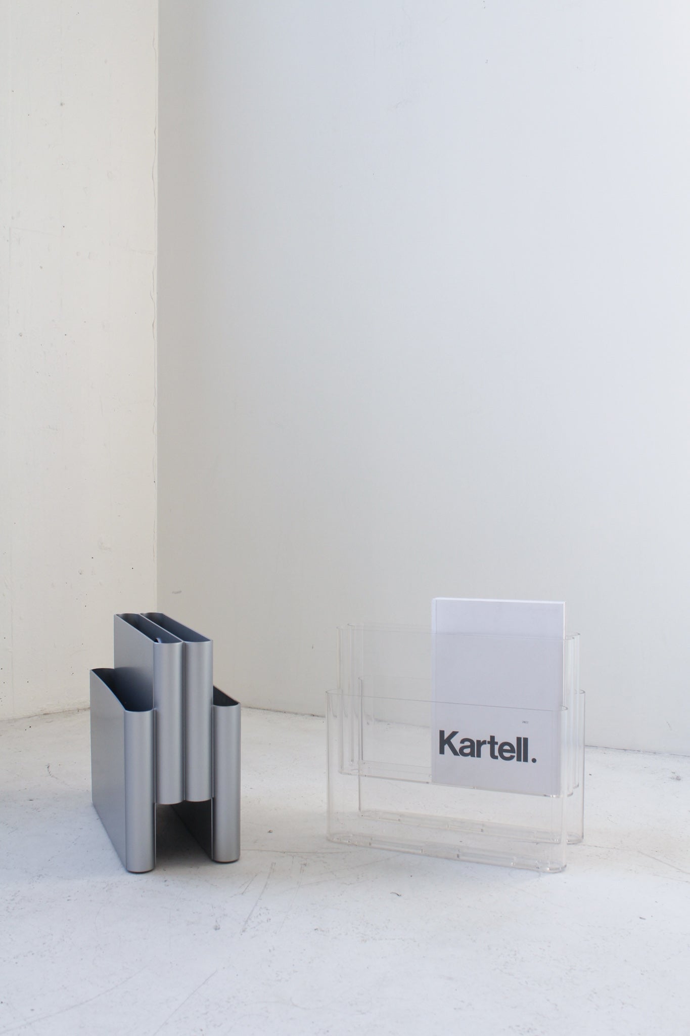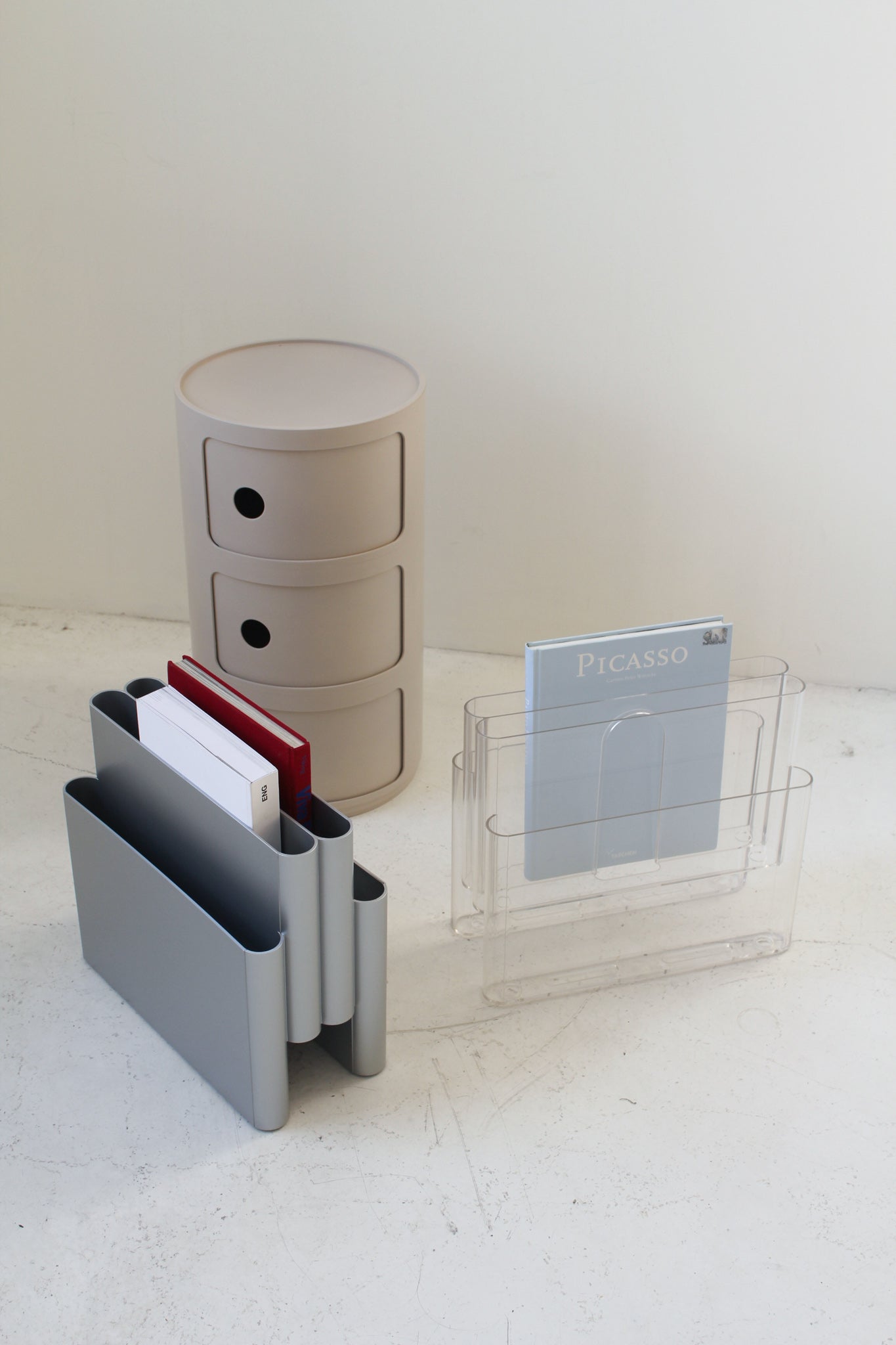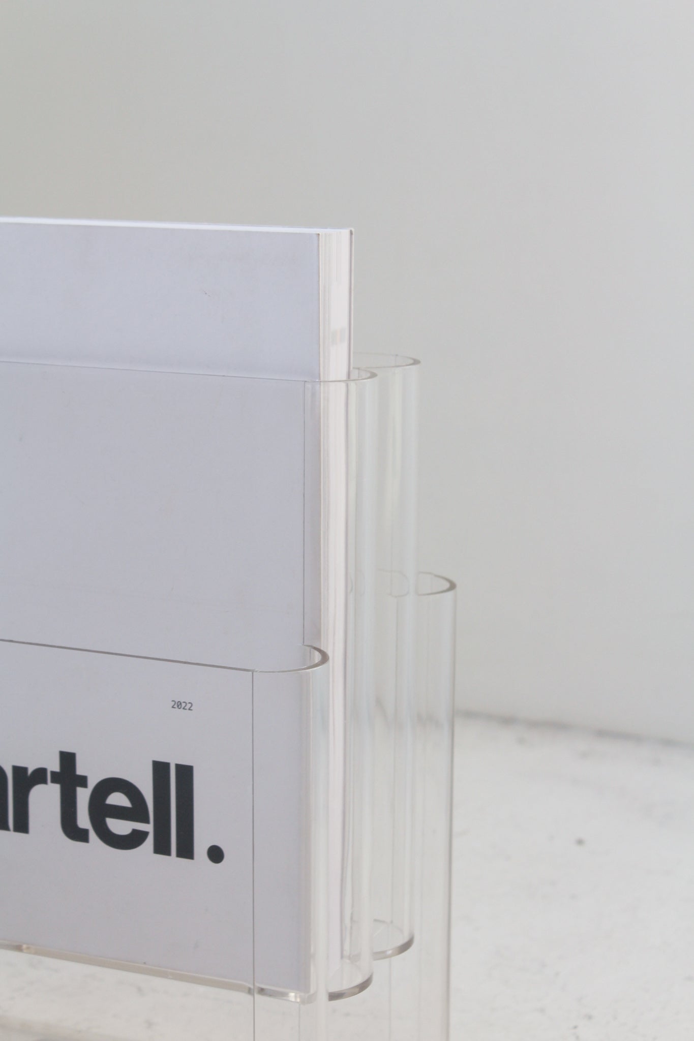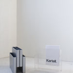 Porte-revues par Giotto Stoppino pour Kartell, 2022. Conçu à l'origine dans les années 1960, ce porte-revues est l'un des classiques les plus emblématiques de Kartell. Il présente 4 compartiments et une poignée centrale pour un transport facile.