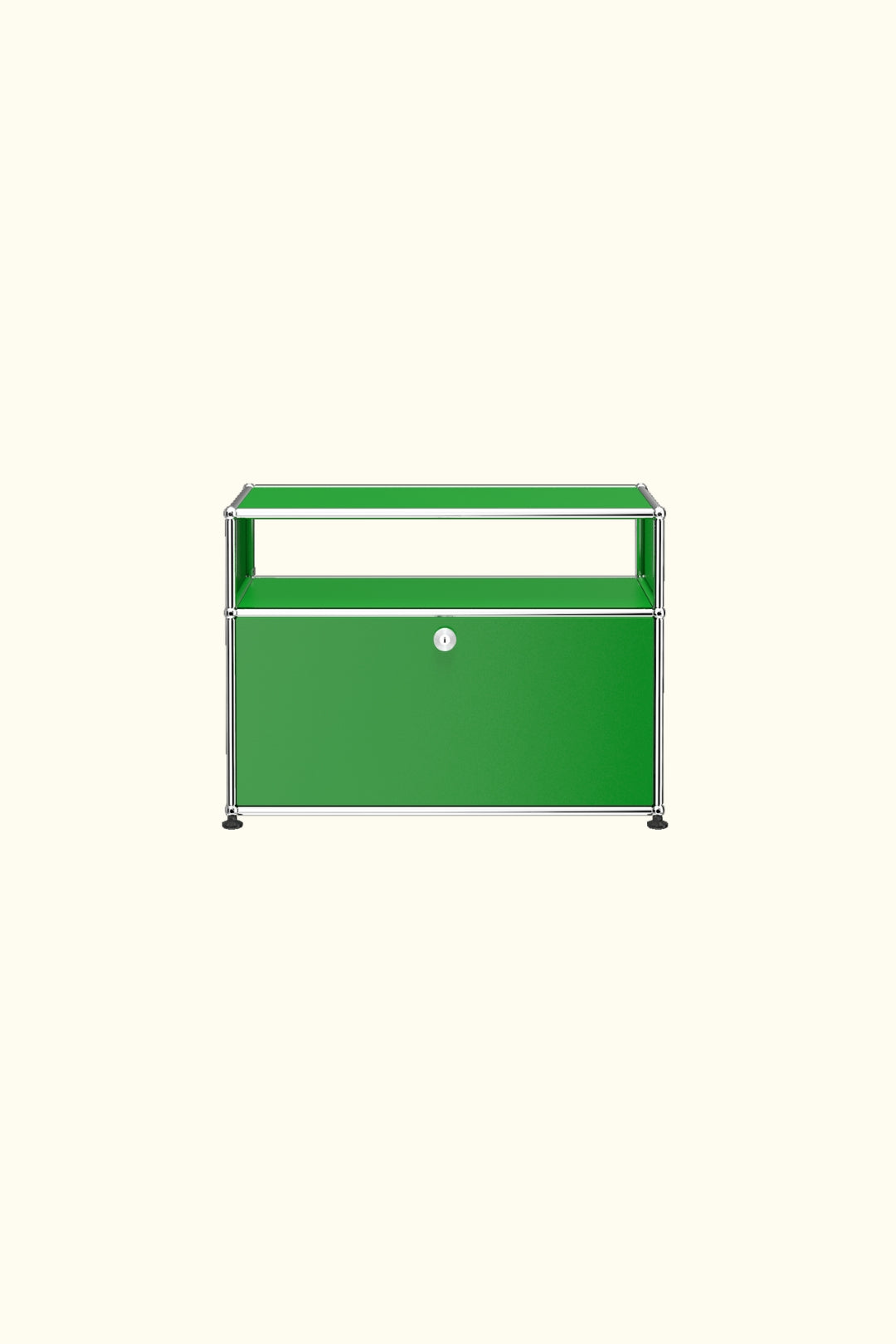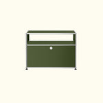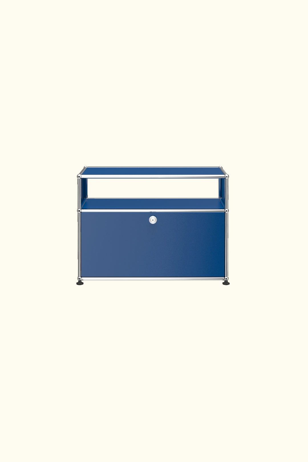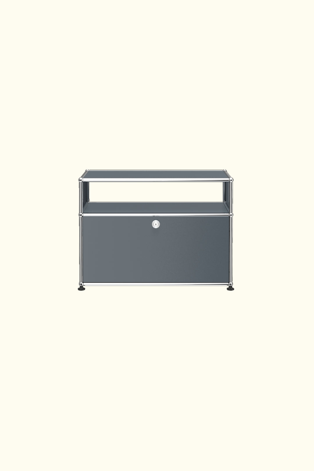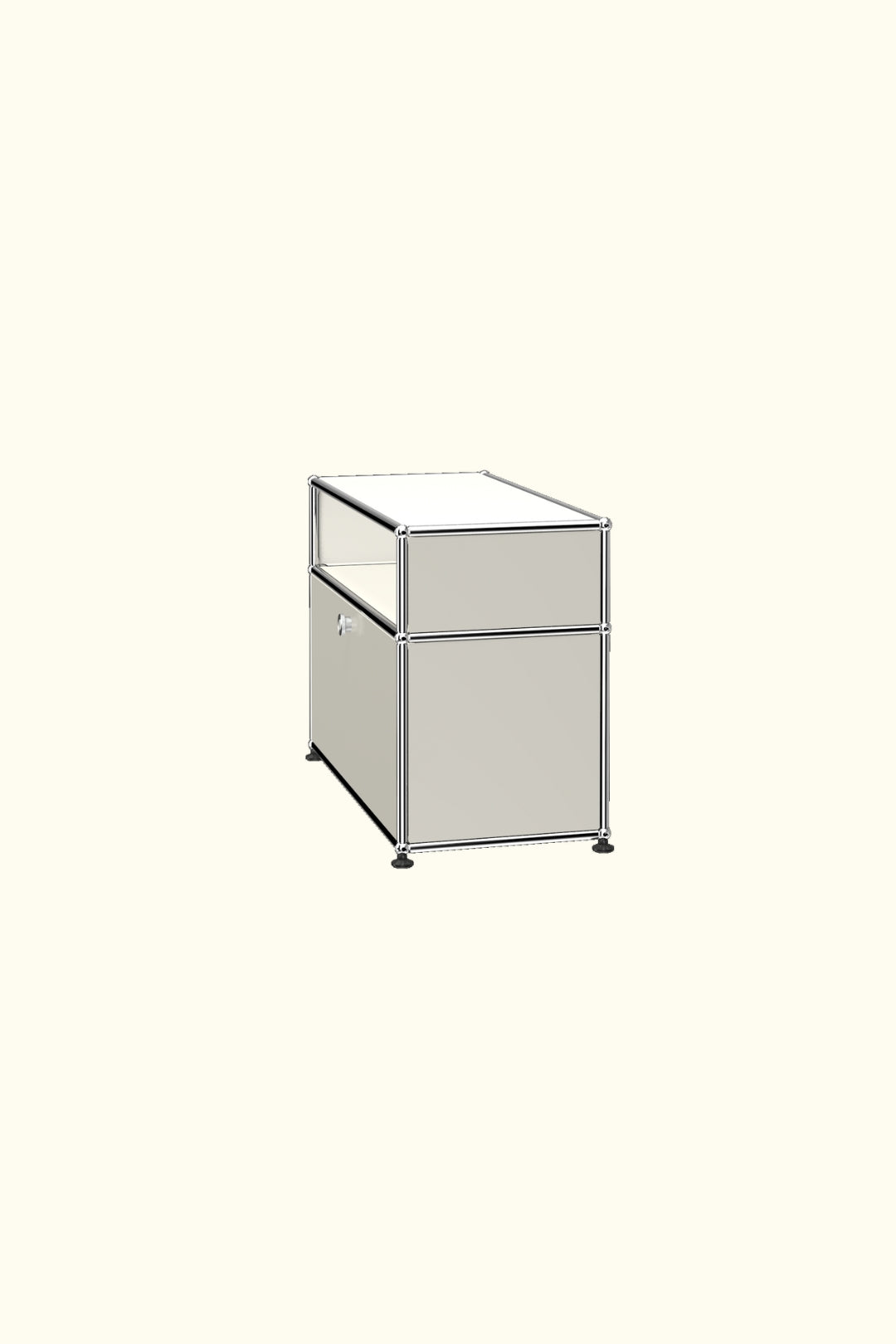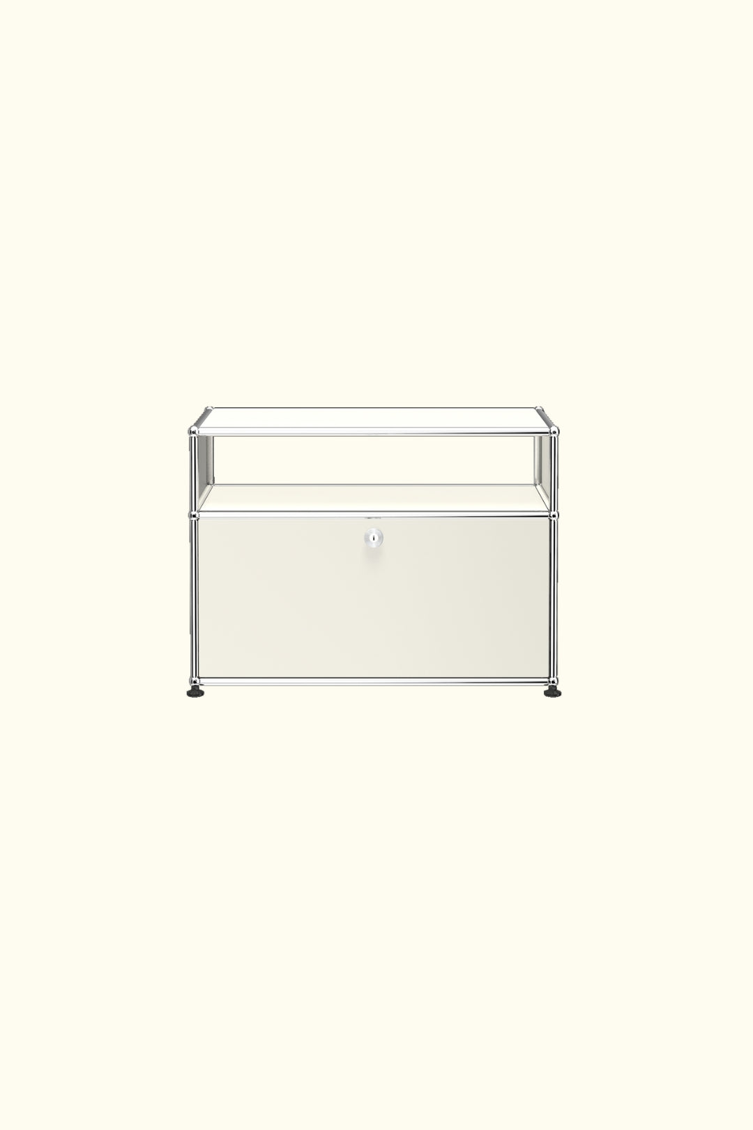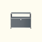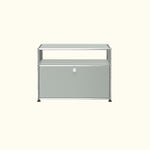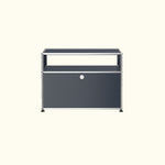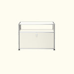 Crédence de rangement polyvalente avec une porte abattante verrouillable à l’aide d’une pièce de monnaie. Disponible en 14 couleurs standard. Le système USM Haller est composé de panneaux en acier thermolaqué et d’une structure en acier chromé. Certifié GREENGUARD et Cradle to Cradle®.