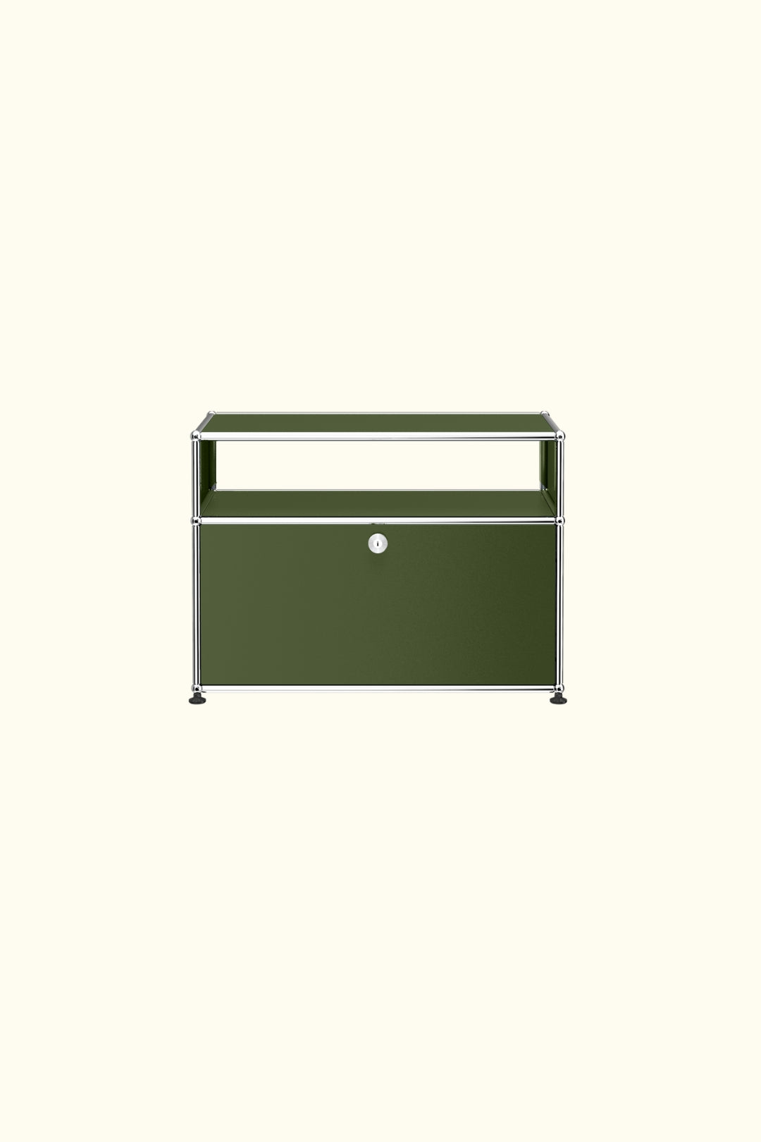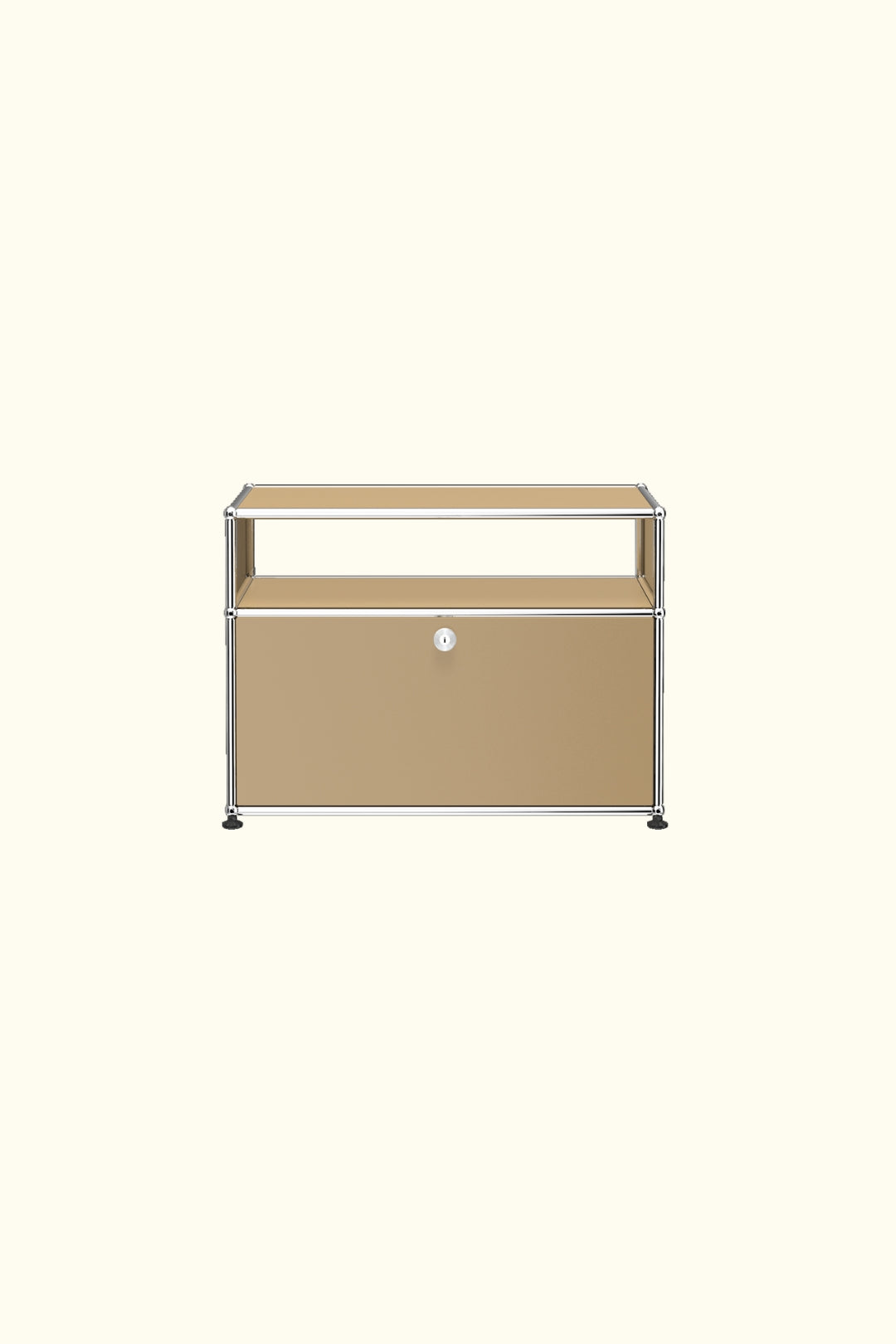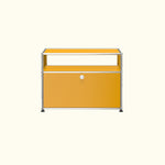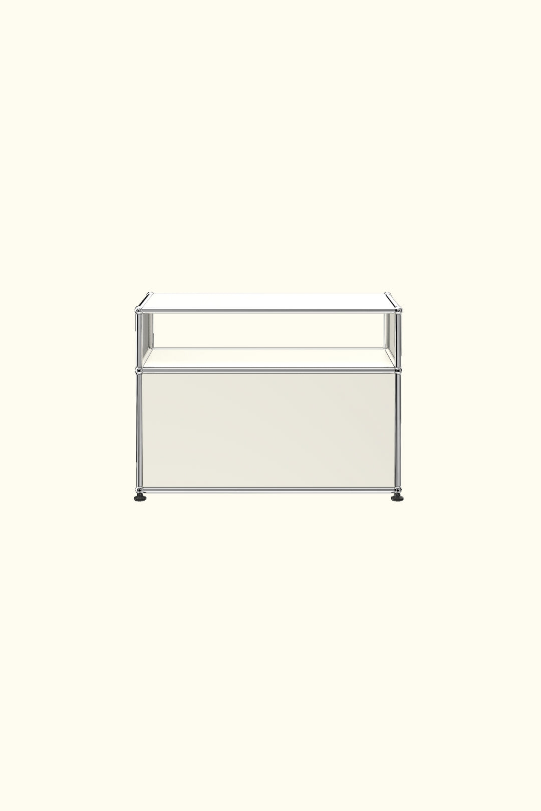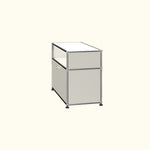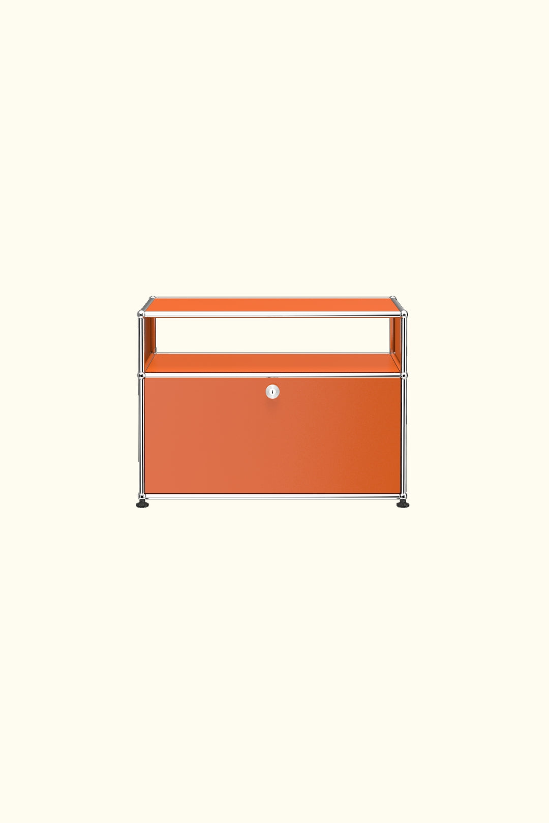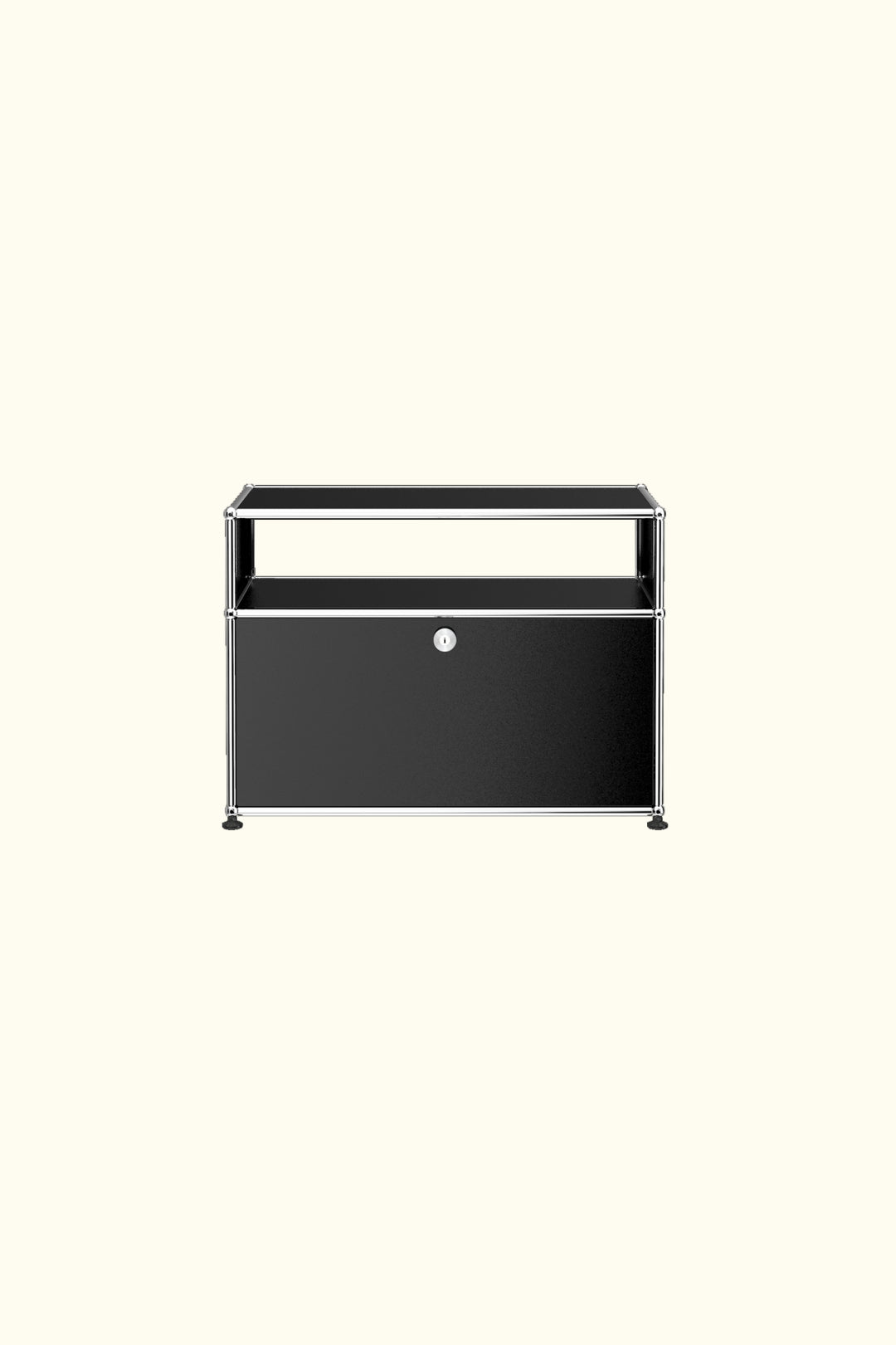 Crédence de rangement polyvalente avec une porte abattante verrouillable à l’aide d’une pièce de monnaie. Disponible en 14 couleurs standard. Le système USM Haller est composé de panneaux en acier thermolaqué et d’une structure en acier chromé. Certifié GREENGUARD et Cradle to Cradle®.