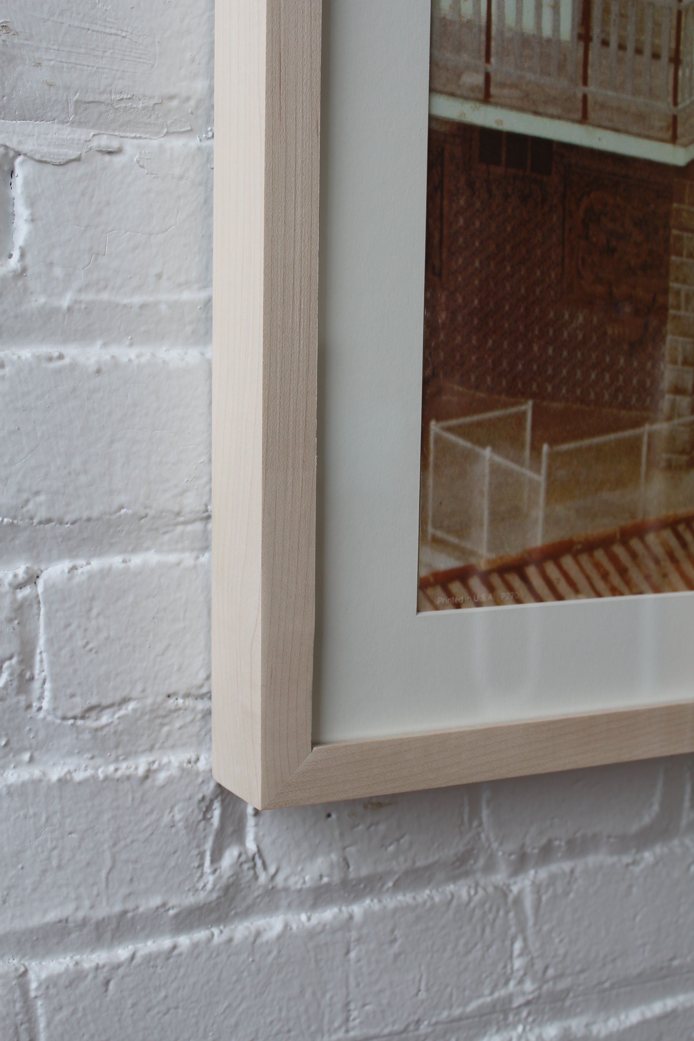 Impression vintage montée dans un nouveau cadre en chêne brut. Encadrée par Encadrex.