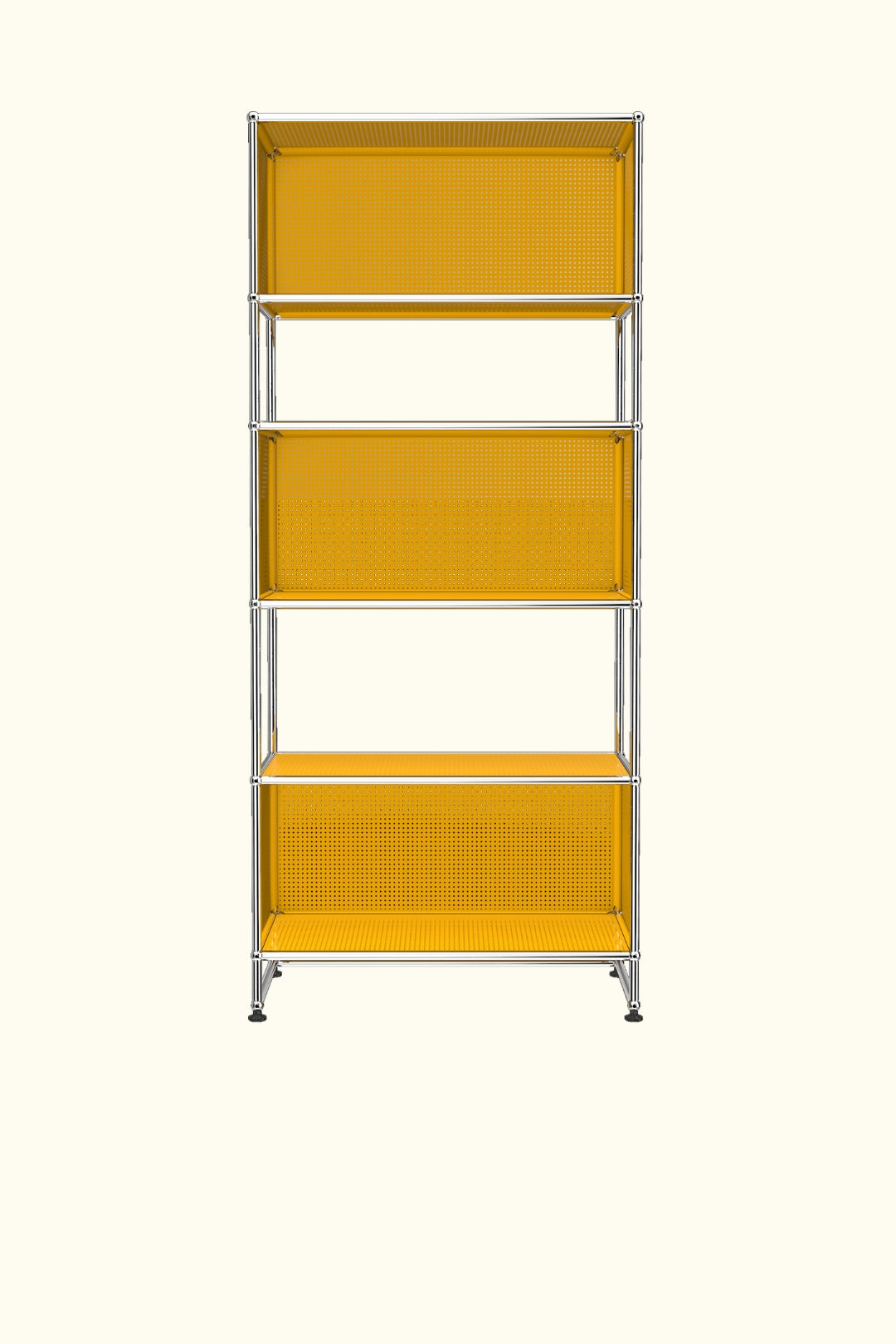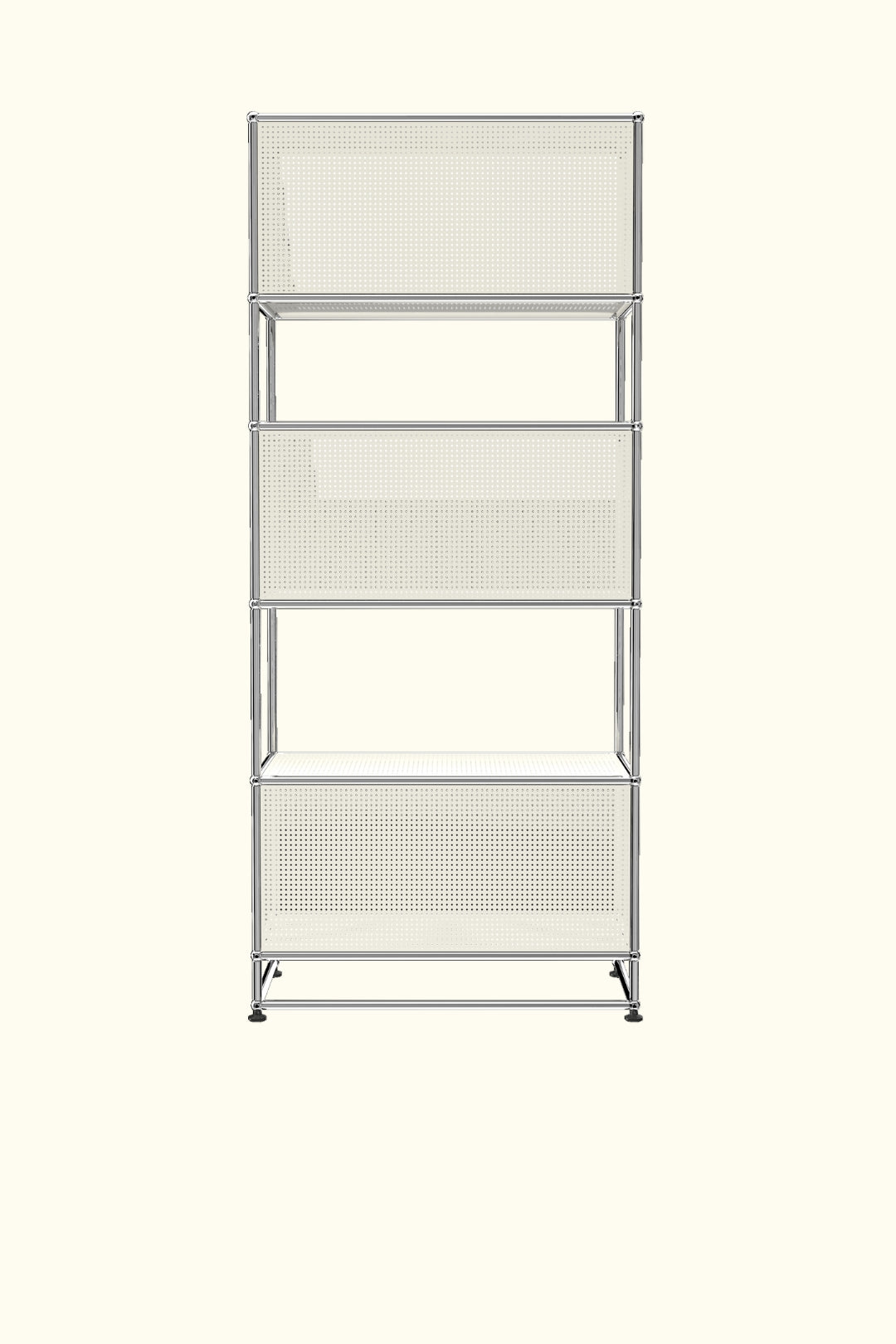 A multi-purpose storage unit with four 14"H drop-down doors that lock with the twist of a coin. The USM Haller system is made of powder-coated steel panels and chromed steel frame. GREENGUARD and Cradle to Cradle Certified®.